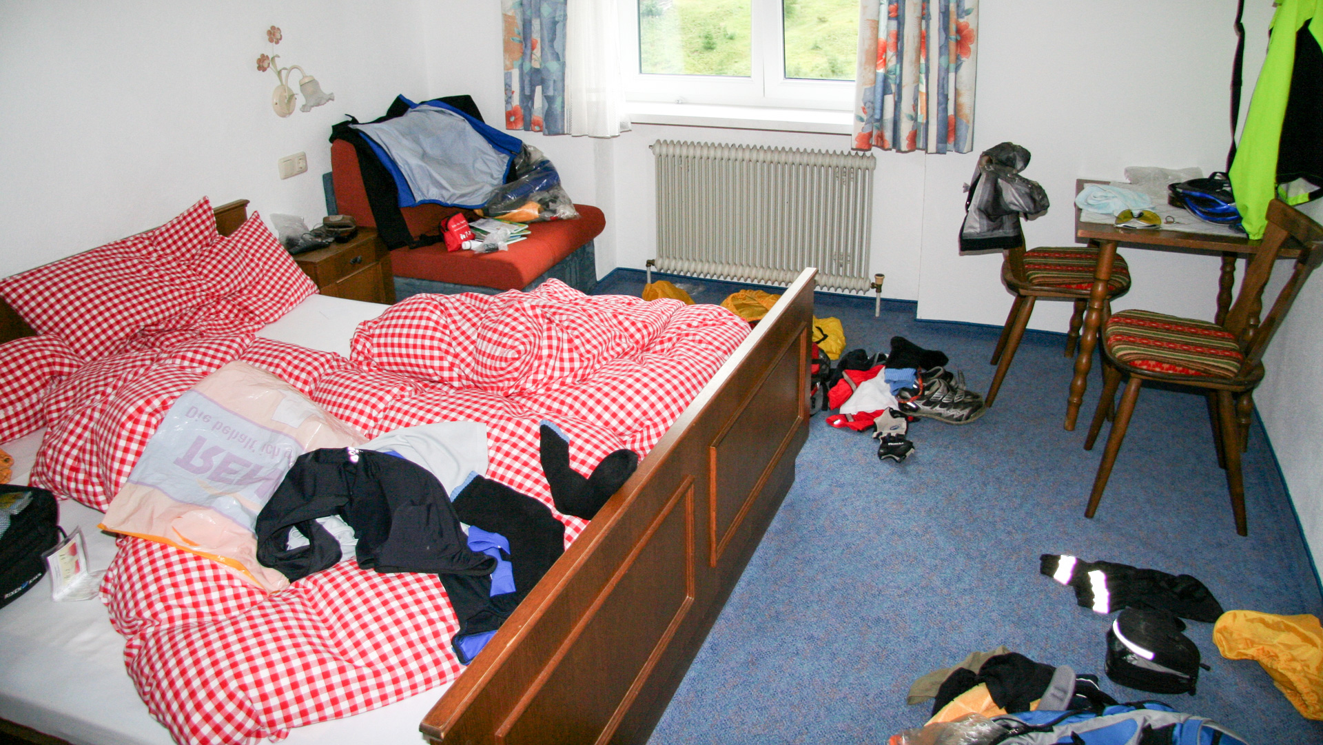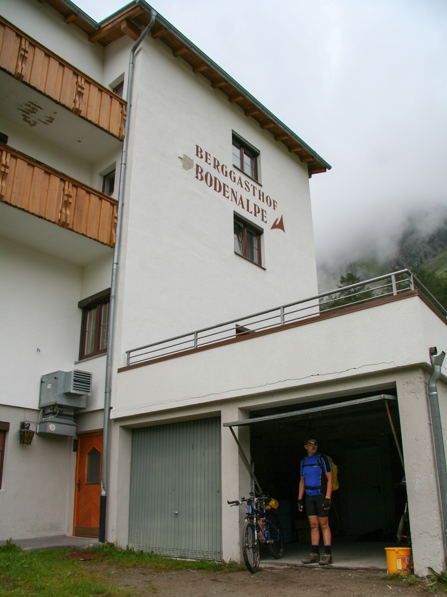Das Frühstück ist einfach, aber gut. Brötchen, Kaffee – der letzte Rest Müdigkeit ist im Nu verflogen. Für die Bodenalpe kann man sagen: Preis-Leistung top! Um 7:00 Uhr der Blick aus dem Fenster: Nebel und leichter Nieselregen. Über Nacht hat es ordentlich geschüttet, Wiesen und Wege sind aufgeweicht. Also runter zu den Bikes, die in der verschlossenen Garage übernachtet haben. Ein kurzer Check, ein bisschen Kettenfett hier, etwas Schmierung dort – auch sie verdienen Pflege. Los geht’s zum nächsten Abenteuer.