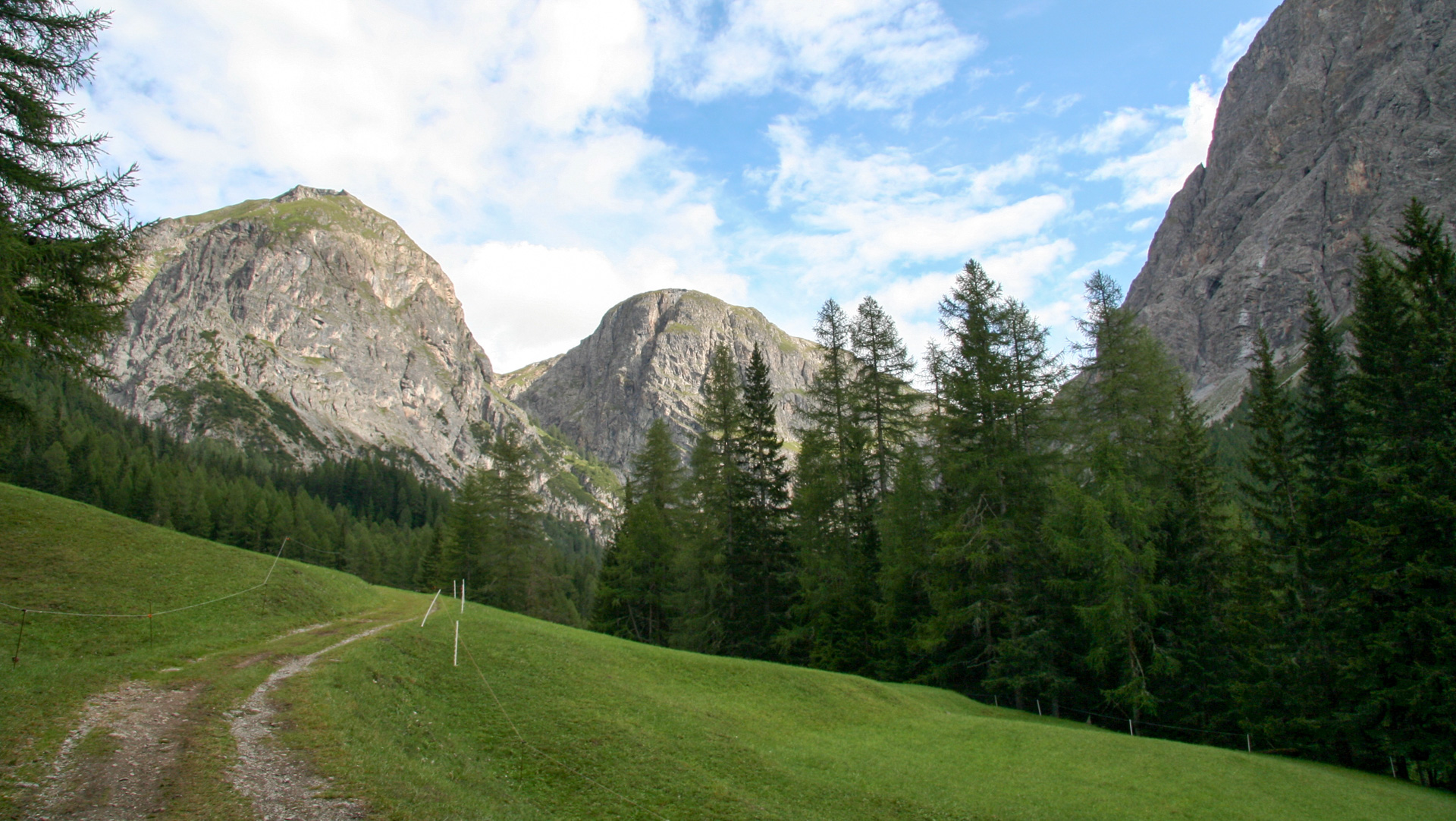 Sur En – ein winziges Dorf: Campingplatz, ein paar Häuser. Unser Hotel, der Landgasthof VAL D’UINA, steht urig am Waldrand. Ruhe pur, abgeschieden – perfekt für diesen Engadiner Fleck.