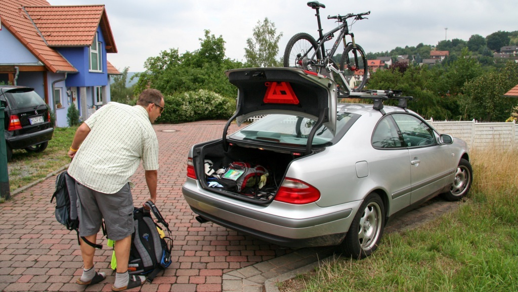 Zwei Stunden später ist es soweit: Rucksäcke im Kofferraum, Bikes verzurrt, ein letzter Kuss für unsere Frauen – so versüßt man sich den Abschied. Der Blick in den Rückspiegel zeigt zwei winkende Gestalten – und ich weiß, unsere Gedanken sind längst auf der Autobahn Richtung Süden.