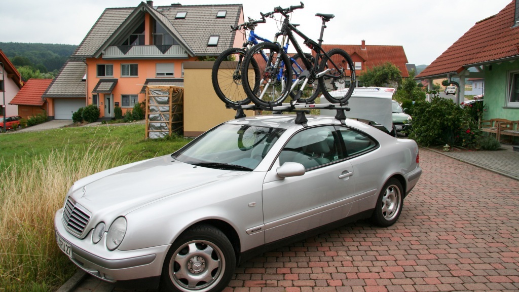 Ein kurzer Ruck, und das Bike steht sicher auf dem Dachgepäckträger. Haltestange festgezogen, Riemen angespannt – alles sitzt. Ab geht’s die zehn Kilometer zu Jürgen nach Hofstetten. Dort wartet schon das Frühstück.