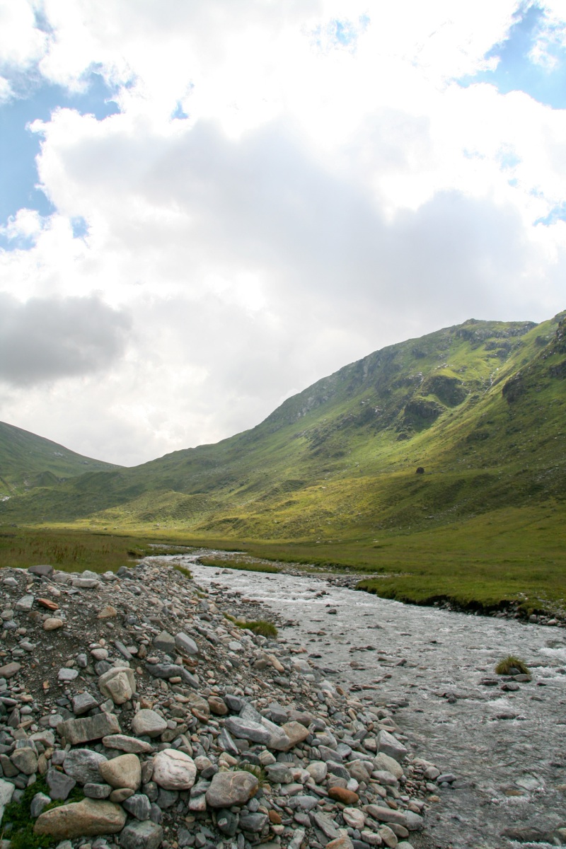 Der Stausee, gebaut 1962–1969, wird künstlich gespeist: mehrere Bäche umgeleitet, Tunnel von Silvretta-Stausee über Vermuntsee, Kraftwerke brauchen Wasser – beeindruckend. Wir folgen einem Trail entlang des Flusses Trisanna Richtung Galtür, vorbei an riesigen Fangmauern – Erinnerung an die Lawinenkatastrophe 1999, bei der 38 Menschen starben. An meinem Geburtstag, unvergesslich.