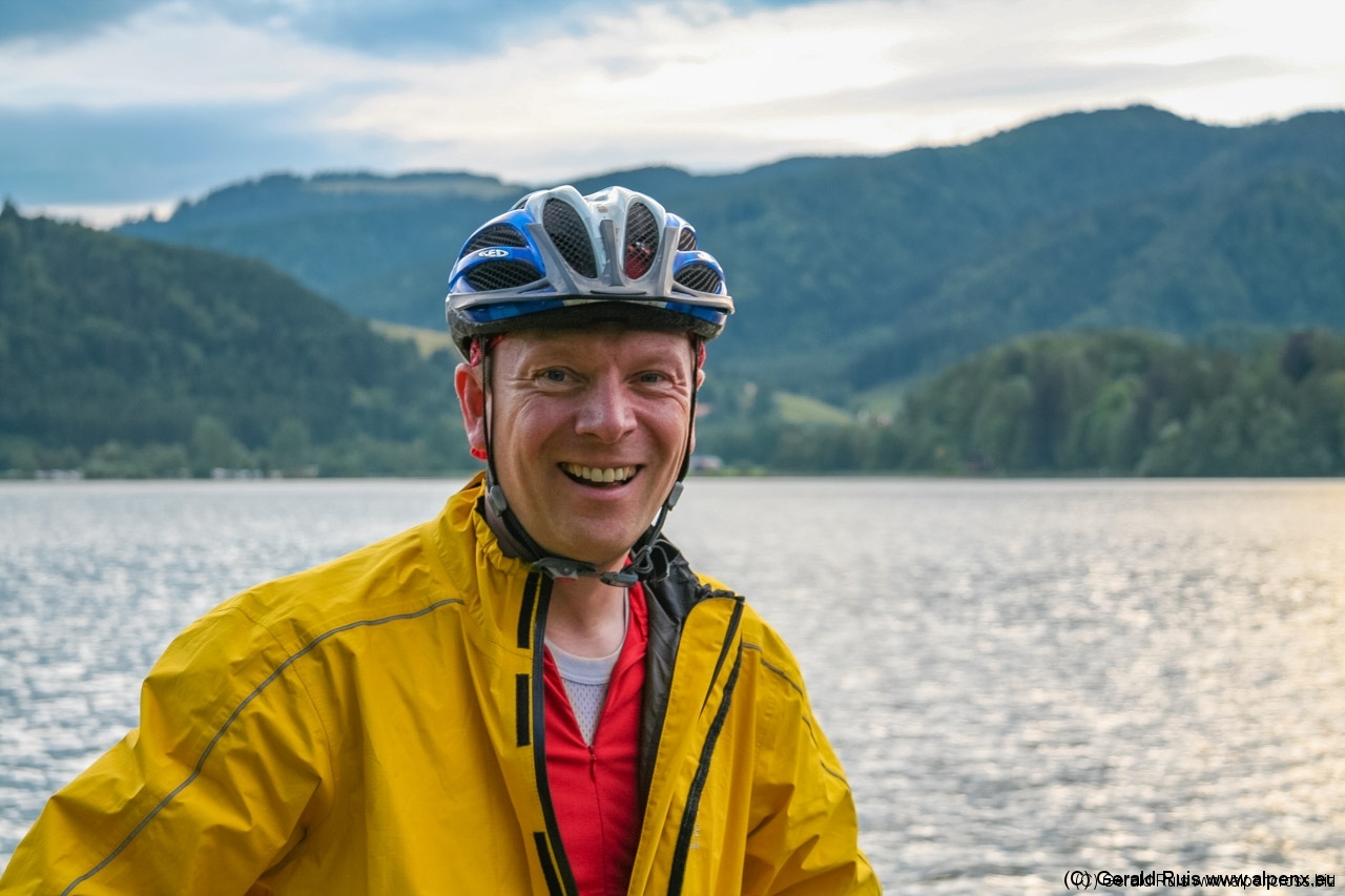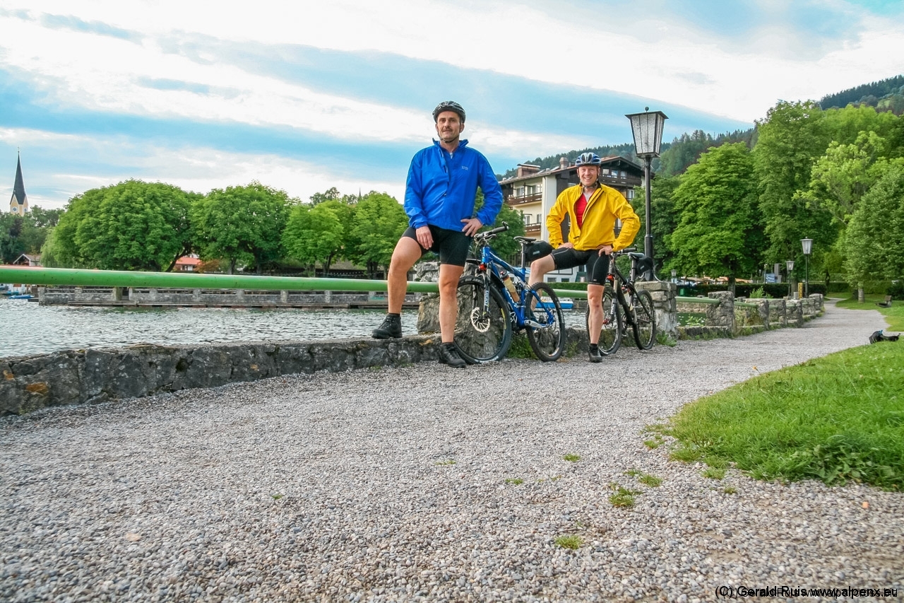 Es ist erst 18:30 Uhr und unsere vom vielen Sitzen müde gewordene Glieder sollen noch ein wenig Arbeit leisten. Deshalb entschließen wir uns, eine kleine Runde um den Schliersee zu drehen – mit den Bikes natürlich. Die circa 10 Kilometer gemütliche Strecke macht Spaß und wir freuen uns tierisch auf den morgigen Beginn unserer Tour. Allerdings machen uns die immer mehr aufkommenden Wolken schon ein wenig Sorgen, aber egal, das wird schon! Kaum hatten wir die Runde fertig, treffen wir auf das «Schlierseer Wiesenfest».