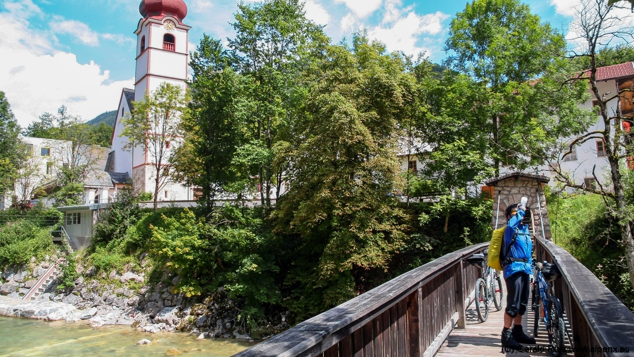 Kurz vor Kramsach kommt noch mal eine kleine bergtechnische Herausforderung, 1,5 km mit 15% Steigung – aber das war’s auch schon für heute in Sachen „Bergsteigen“. Es folgt eine rasante Abfahrt mit toller Aussicht, vorbei an einer kleinen engen Bachbrücke mit idyllischer Kirche. Bei Brixlegg erreichen wir den Inntal-Radweg, danach wechselt er in Stass auf einen Radweg ins Zillertal.