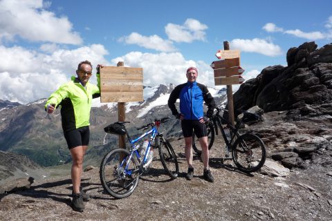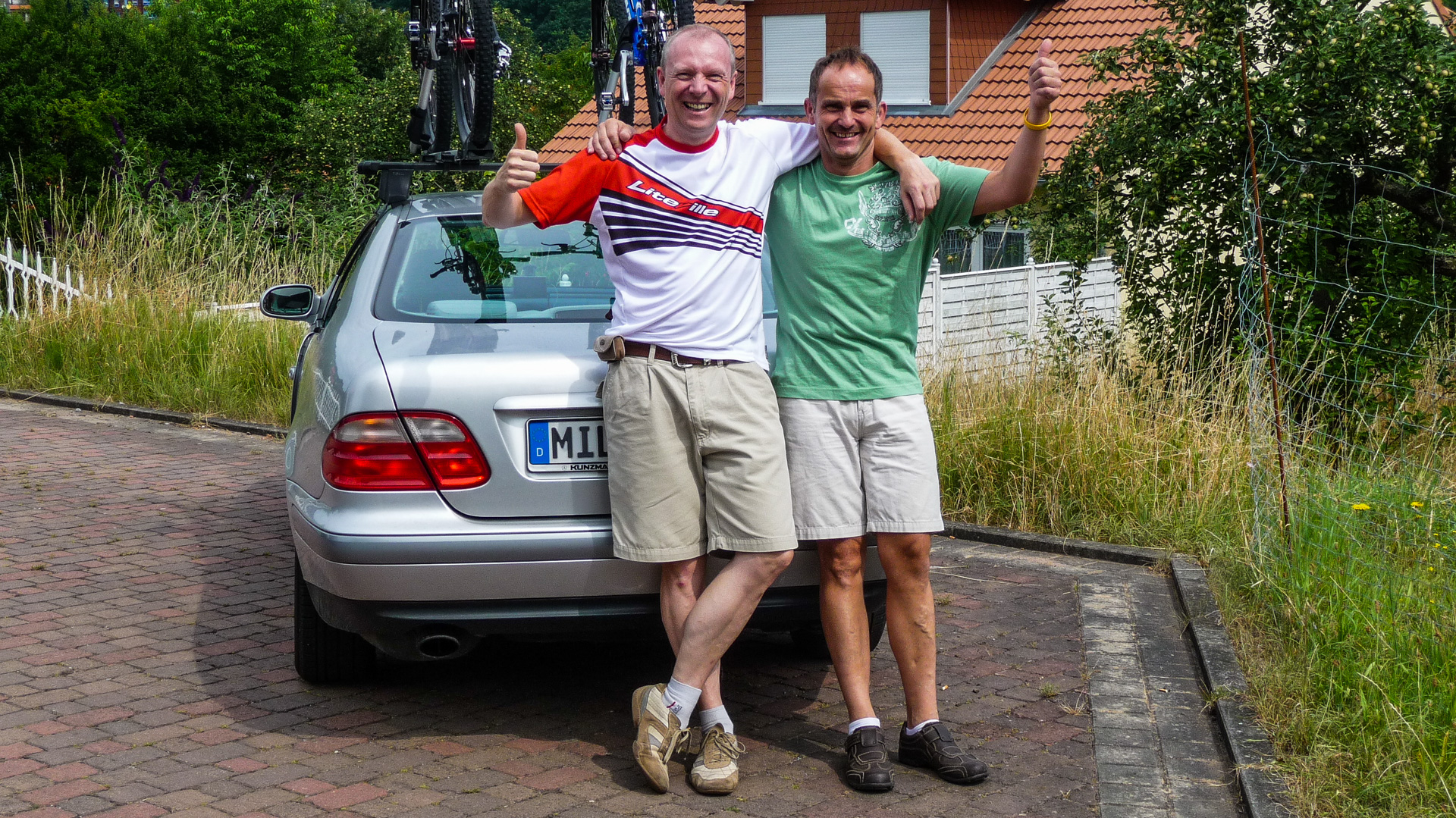 „Aufstehen!“ – „Hey aufstehen!“ – „Willst du den wirklich deine Tour verschlafen?“ meine Frau kommt ans Bett und reißt mir die Bettdecke weg. „Wieso aufstehen?“ erwidere ich. „Ich bin doch schon lange wach“ flüster ich ihr zu, zwinkere mit dem rechten Auge und gebe ihr einen dicken Kuss auf die Stirn. Schlafen kann ich ein anderes Mal, denn heute geht es los: Der Alpencross 2008 – eine «Ortler-Umrundung» steht an. Auch dieses Jahr wieder mit meinem Freund Jürgen. Ich hüpfe aus dem Bett, gehe ins Badezimmer und mache mich frisch. Der Rucksack ist schon gepackt, das hab ich gestern Abend alles bereits erledigt. Wie jedes Jahr verabschieden wir uns von unseren Familien mit einem ausgiebigen Frühstück. Dieses Jahr sind wir wieder bei Flachs. Gegen 11:00 Uhr machen wir uns fertig und fahren, diesmal mit dem Auto, Richtung Italien. Wir wollten eigentlich wieder mit der Bahn fahren, doch die Zugverbindungen nach Mals, unserem Start- und Zielpunkt, sind katastrophal. Teilweise hätten wir 2 Stunden mit dem Bus fahren müssen und ob der unsere Bikes auch mitgenommen hätte ist fraglich.