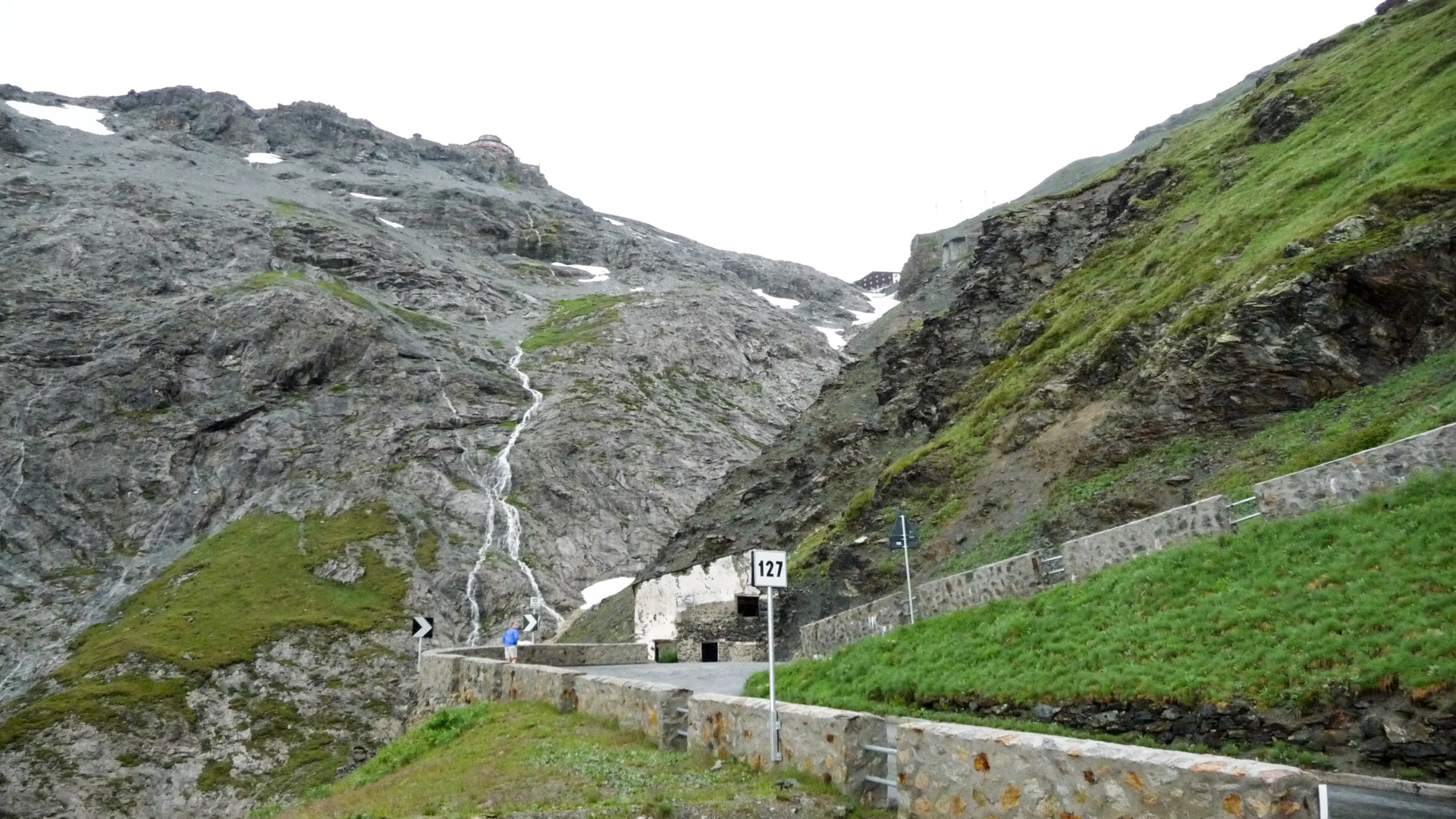 Wir haben viel Zeit und besuchen das Messner Mountain Museum Ortles. In diesem Museum erzählt Reinhold Messner von den Schrecken des Eises und der Finsternis, von Schneemenschen und Schneelöwen, vom White Out und dem dritten Pol. Der Ortler steht symbolisch im Zentrum der Ausstellung. Der Standort – der Bauernhof mit den Yaks, der Ortler als höchster Gipfel Südtirols unmittelbar darüber, das Gletschereis zum Greifen nah – ist ideal. Nur eines ist halt dumm: Das Museum hat zu! Wenn wir schon mal in der Nähe sind, denn fahren wir rauf auf den höchsten Gebirgspass in Italien und der zweithöchste asphaltierte Gebirgsstraße der Alpen. Das Stilfser Joch (ital. Passo dello Stelvio) auf 2.757 Meter.