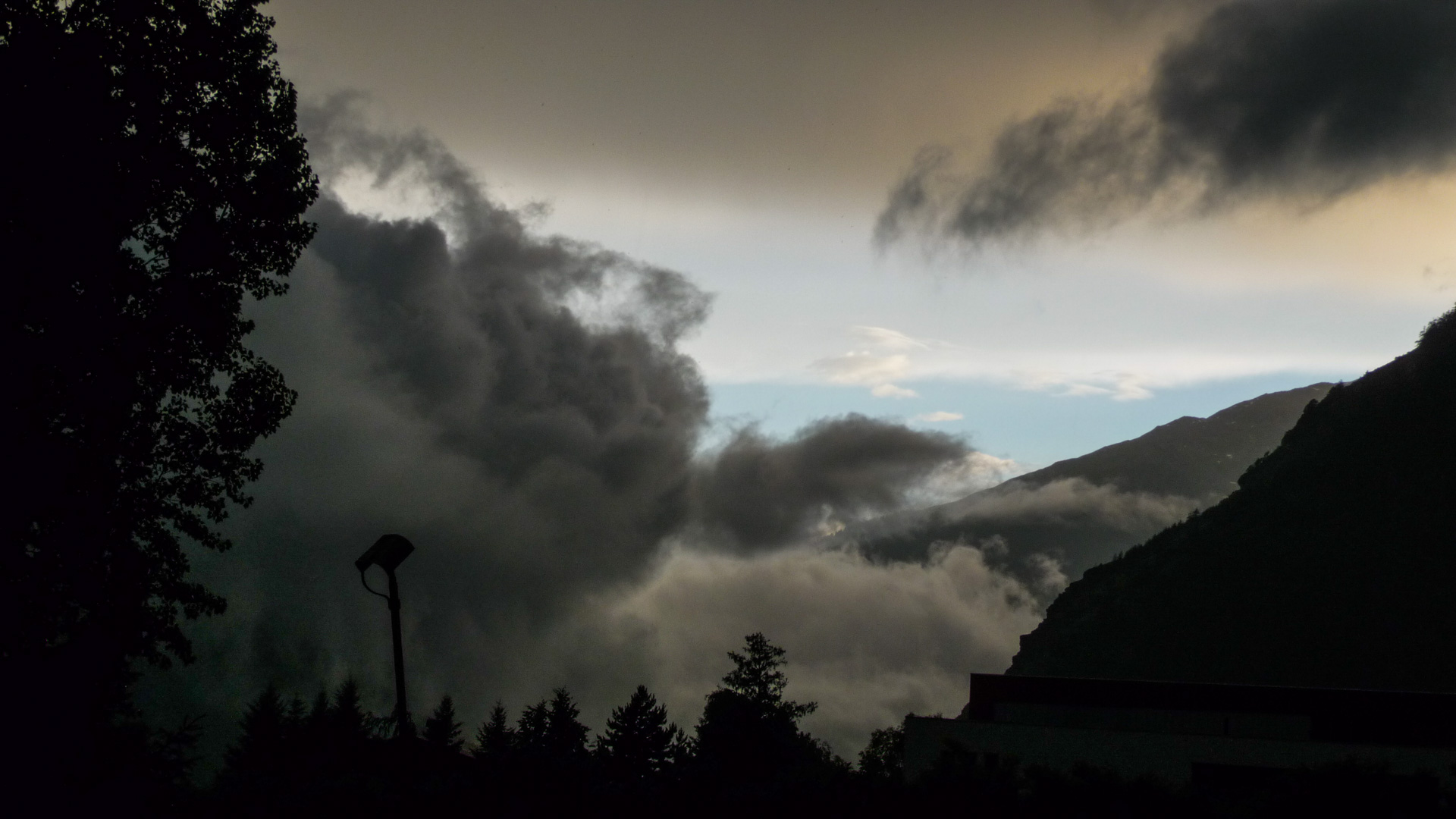 Gegen 17:30 Uhr stehen Jürgen und ich auf dem Balkon und genießen die Aussicht. Der aufsteigende Nebel aus dem Tal und die durchblitzenden Sonnenstrahlen ergeben ein tolles Bild, also schnell ein paar Fotos von diesem Naturschauspiel machen. Ich habe dieses Jahr zum ersten mal meine Spiegelreflex zu Hause gelassen und mir eine kleine Panasonic TZ5 zugelegt. Sie vereint fast alle Eigenschaften, die ich mir an einer guten Reisekamera vorstelle. Ich gebe sie Jürgen und er macht auch ein paar Bilder von mir. Dann passiert das schier unglaubliche: Bei Übergabe der Kamera lass ich doch tatsächlich irgendwie und nicht nachvollziehbar diese fallen!