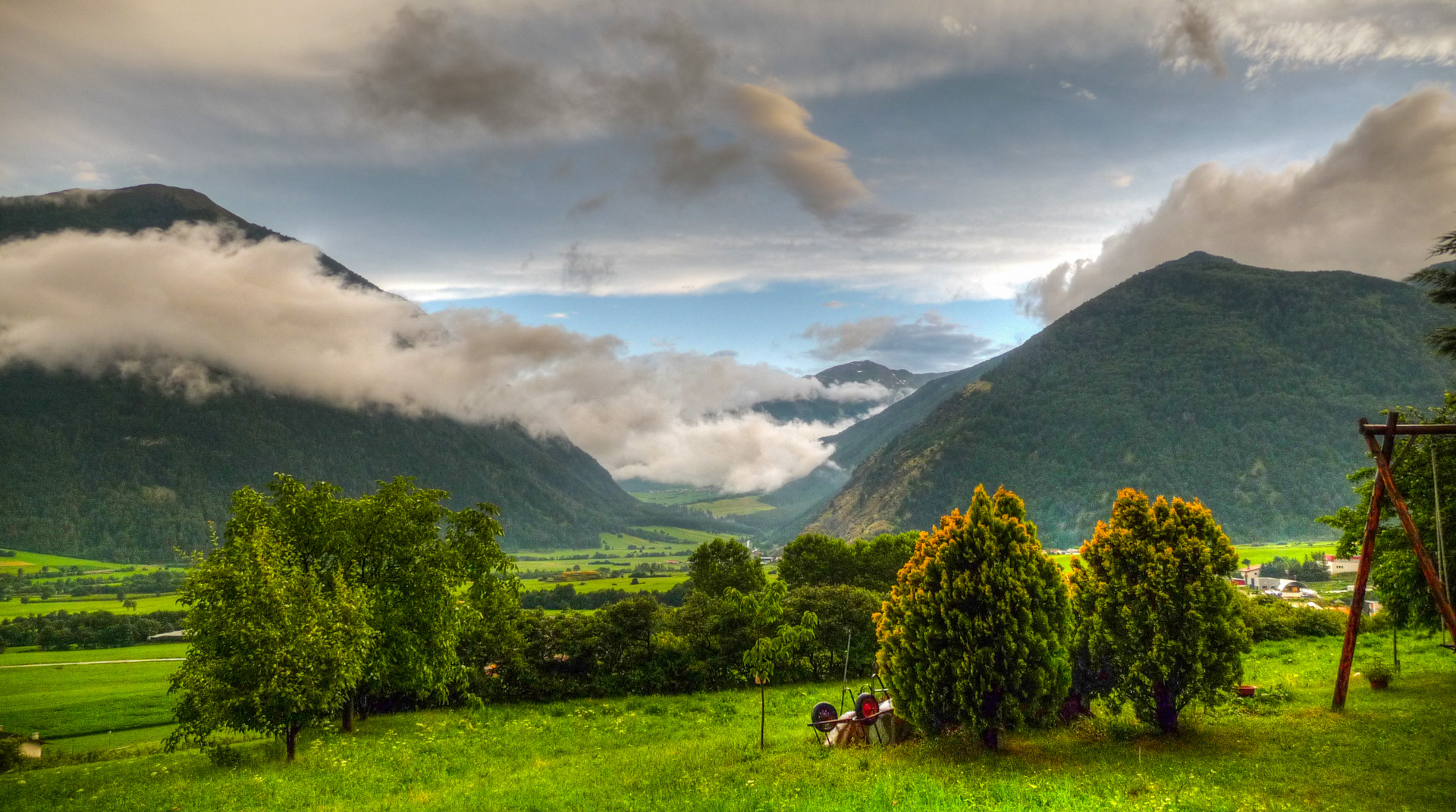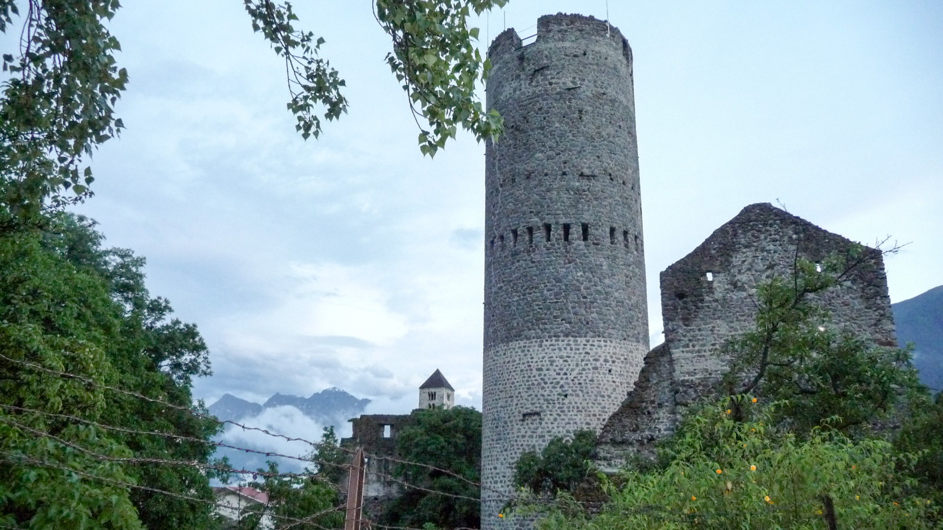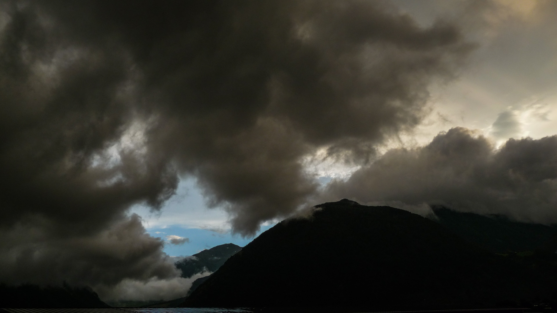 Gegen 14:00 Uhr scheint der Wettergott Pause zu machen, denn es lockerte ein wenig auf. Jürgen und ich schauen uns an, sind uns ohne viel Worte einig: Rauf auf die Räder und eine kleine Runde drehen. Aus der kleine Spritztour werden circa 30 Kilometer, als wir in Gluns, ein Vorort von Mals wieder in ein heftiges Gewitter geraten. Wir kommen am Dorfplatz vorbei und stellen uns, wie viele andere auch, unter einem riesigen Kastanienbaum. Unterstellen und warten, das wird uns zu langweilig. Etwas weiter erblicke ich ein Café, dort gönnen wir uns den ersten leckeren Cappuccino. Nach dem Dritten blitzt die Sonne aus den Wolken, es hört auf zu regnen und wir kommen noch trocken im Hotel an. Sollte es morgen nicht besser werden, was dann?