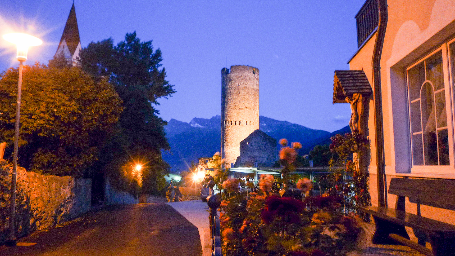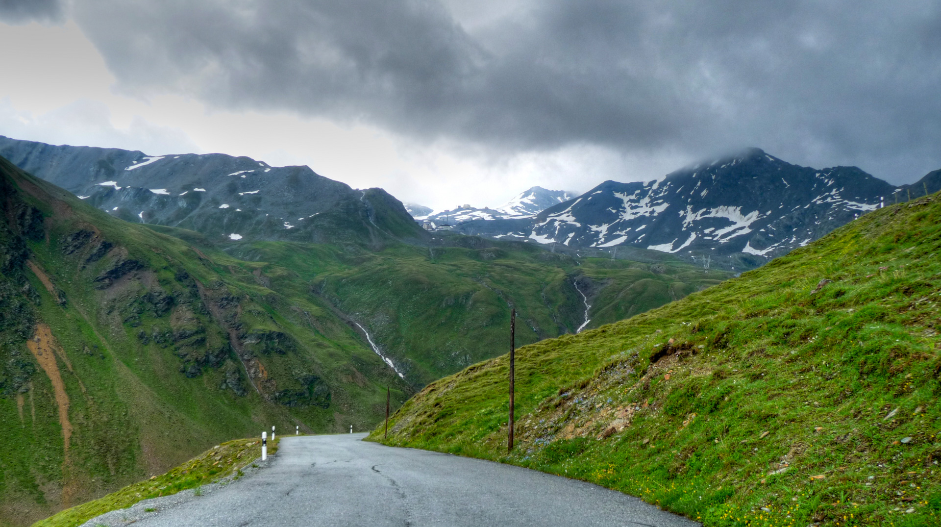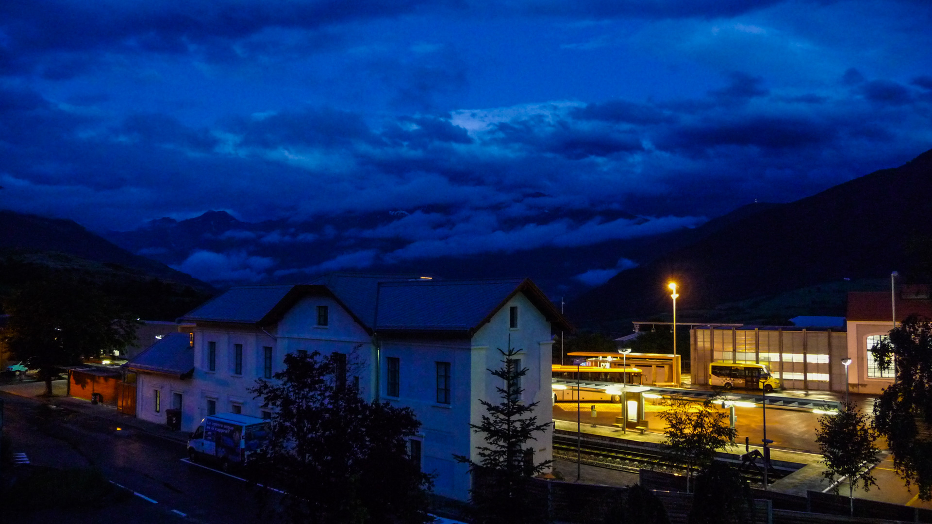 Gegen 14:00 Uhr scheint der Wettergott Pause zu machen, denn es lockerte ein wenig auf. Jürgen und ich schauen uns an, sind uns ohne viel Worte einig: Rauf auf die Räder und eine kleine Runde drehen. Aus der kleine Spritztour werden circa 30 Kilometer, als wir in Gluns, ein Vorort von Mals wieder in ein heftiges Gewitter geraten. Wir kommen am Dorfplatz vorbei und stellen uns, wie viele andere auch, unter einem riesigen Kastanienbaum. Unterstellen und warten, das wird uns zu langweilig. Etwas weiter erblicke ich ein Café, dort gönnen wir uns den ersten leckeren Cappuccino. Nach dem Dritten blitzt die Sonne aus den Wolken, es hört auf zu regnen und wir kommen noch trocken im Hotel an. Sollte es morgen nicht besser werden, was dann?