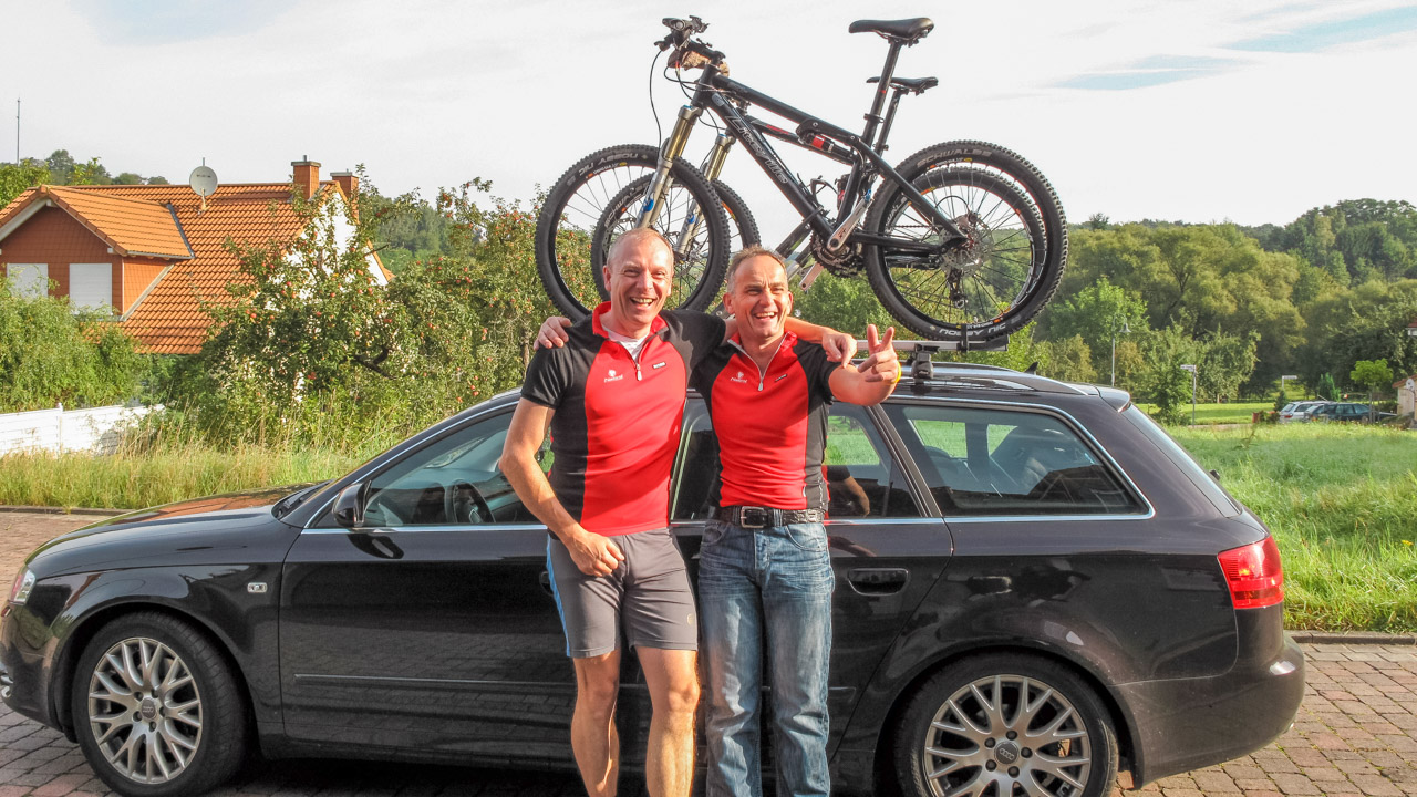 Es ist Sonntag morgen und nach einem ausgiebigen Frühstück fahren wir mit meinem Auto nach Mittenwald und suchen einen Parkplatz, auf dem wir den PKW für 8 Tage stehen lassen können. Unsere Frauen wollen eine Woche später mit dem Zug nach Mittenwald fahren um von dort mit dem Auto zum Gardasee zu gelangen. Direkt hinter dem Friedhof (gegenüber der Polizeistation) werden wir fündig und unser Abenteuer 2010 kann beginnen.