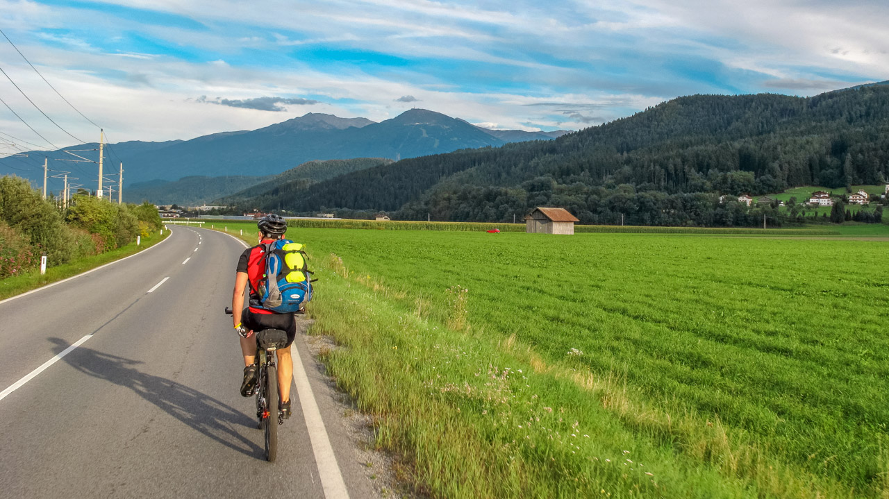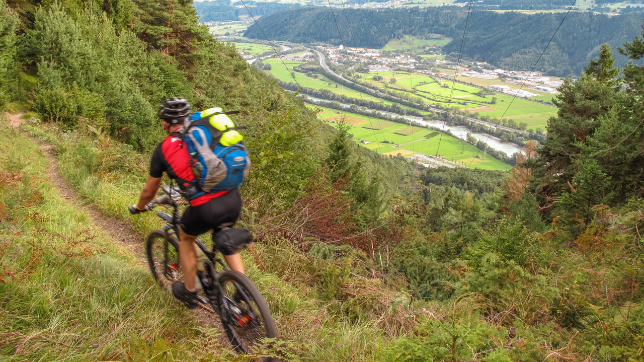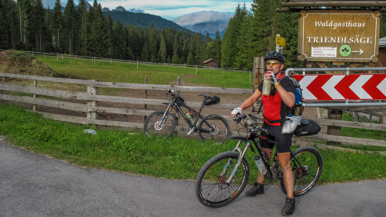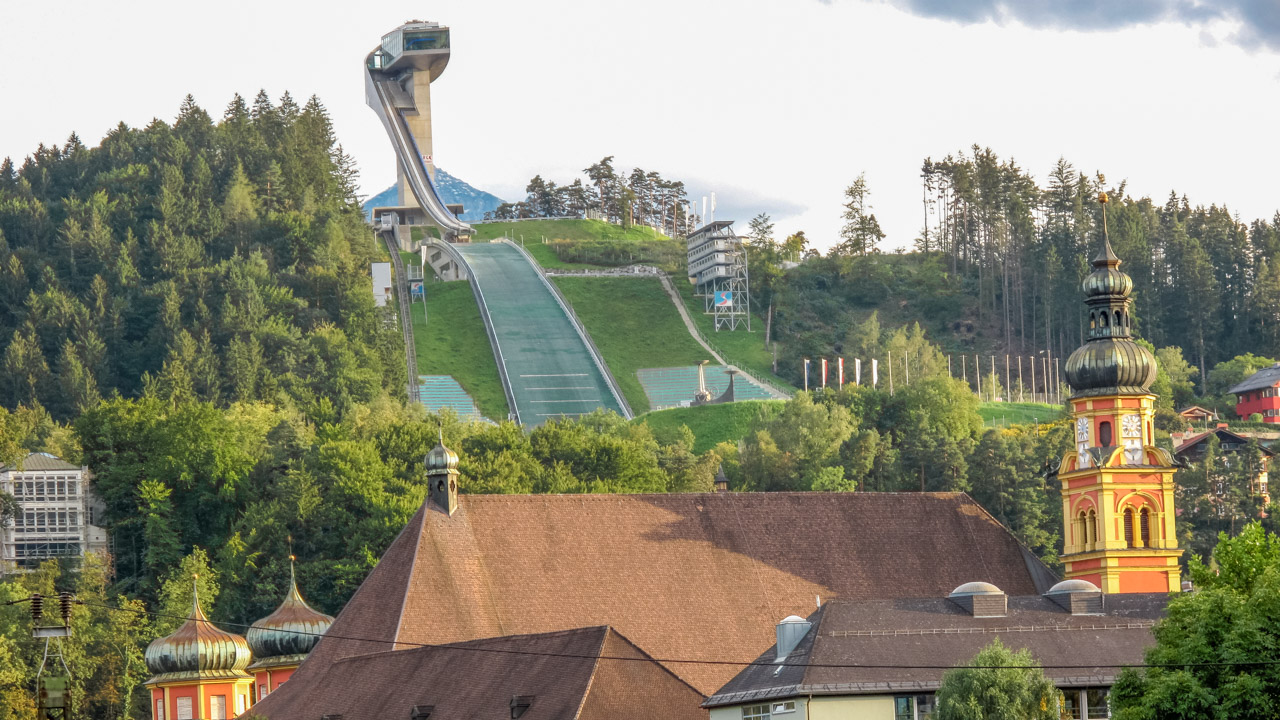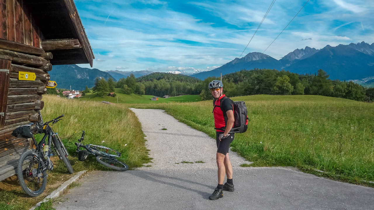 Gemütlich entlang kleiner Schotterstraße, die Sonne genießend zieht die Landschaft an uns vorbei. Erste tolle Trails warten auf uns, es macht Spaß und stimmt uns so richtig ein in den Alpencross 2010. Wir erreichten Innsbruck, erblicken die Sprungschanze, seit den Vierschanzen Tournee 2002 das Wahrzeichen der Stadt. Es geht eine kleine Straße stets bergauf Richtung Igls. Nichts tragisches, wir gewinnen an Höhe und genießen dabei die Aussicht. Im Hotel Guberhof beziehen wir unser heutiges Quartier, duschen und lassen uns das Abendessen schmecken. Wenn es morgen so mit dem Wetter weiter geht, dann sind wir zufrieden. Im September kann es aber bekanntlich Weise ganz schnell einen Wetterumschwung geben …