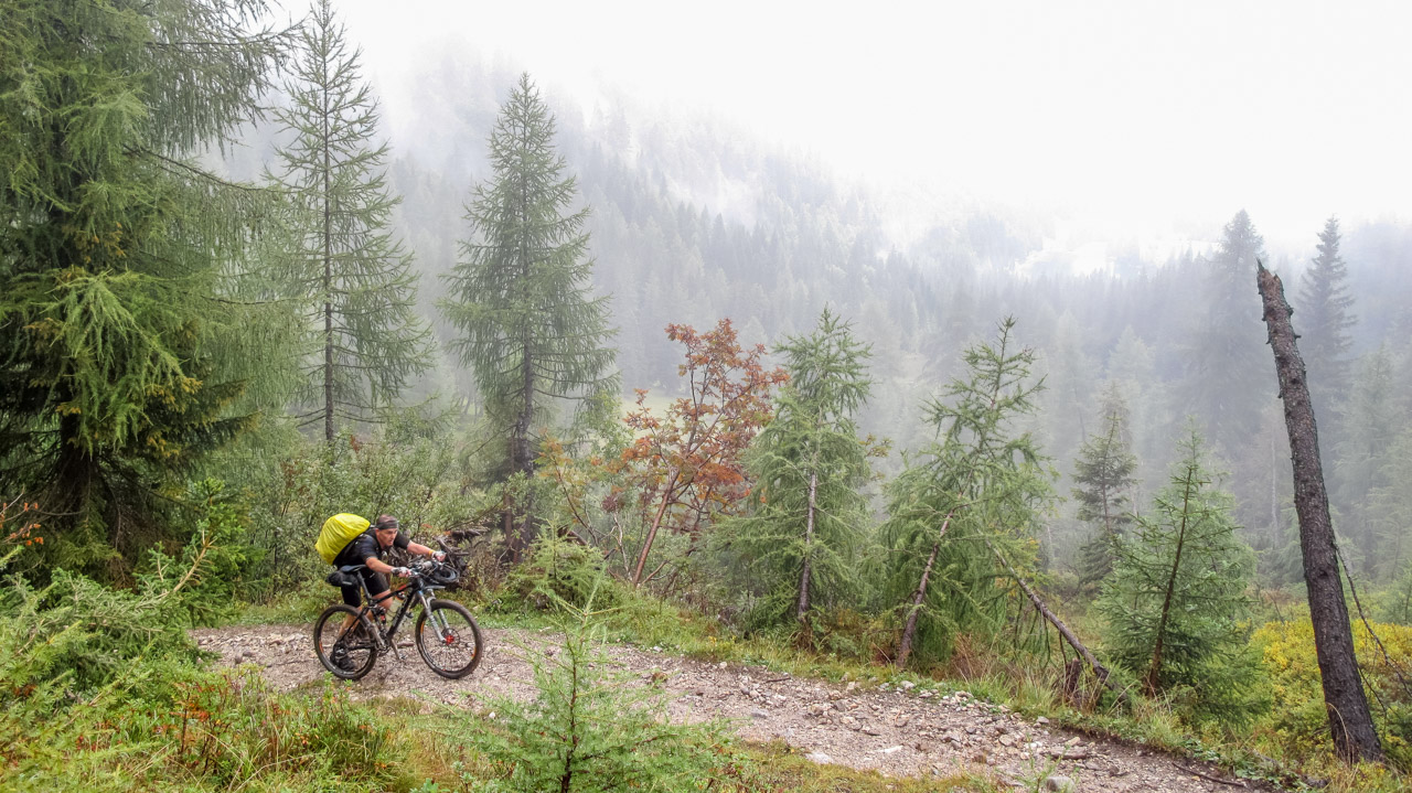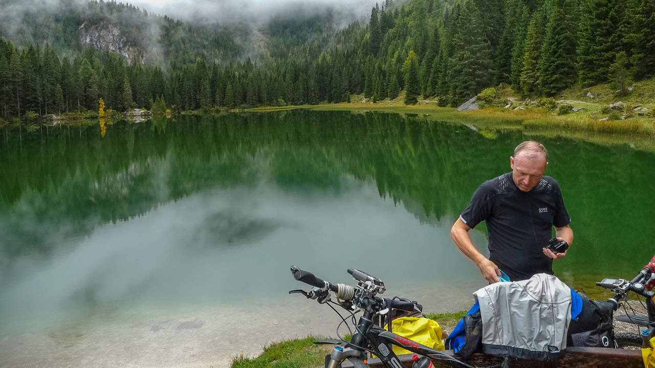 Durchnässt von innen durchs Schwitzen und von außen durch den Regen kommen wir zum Lago