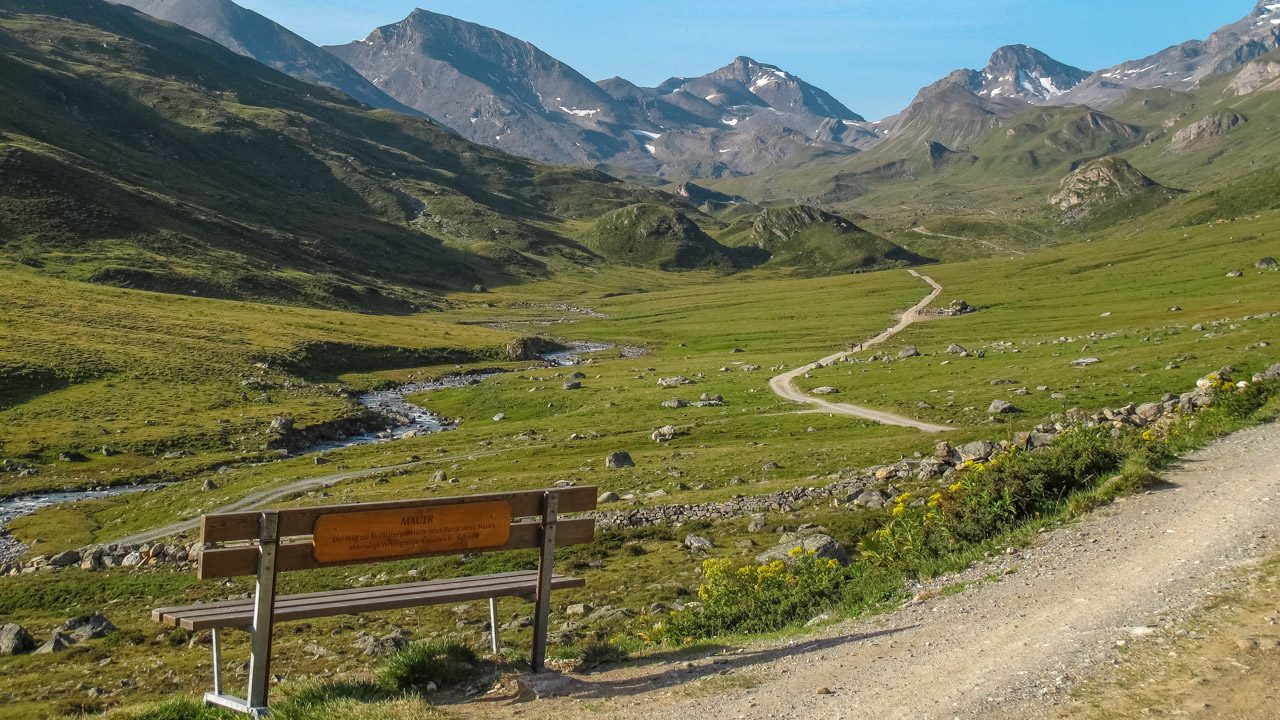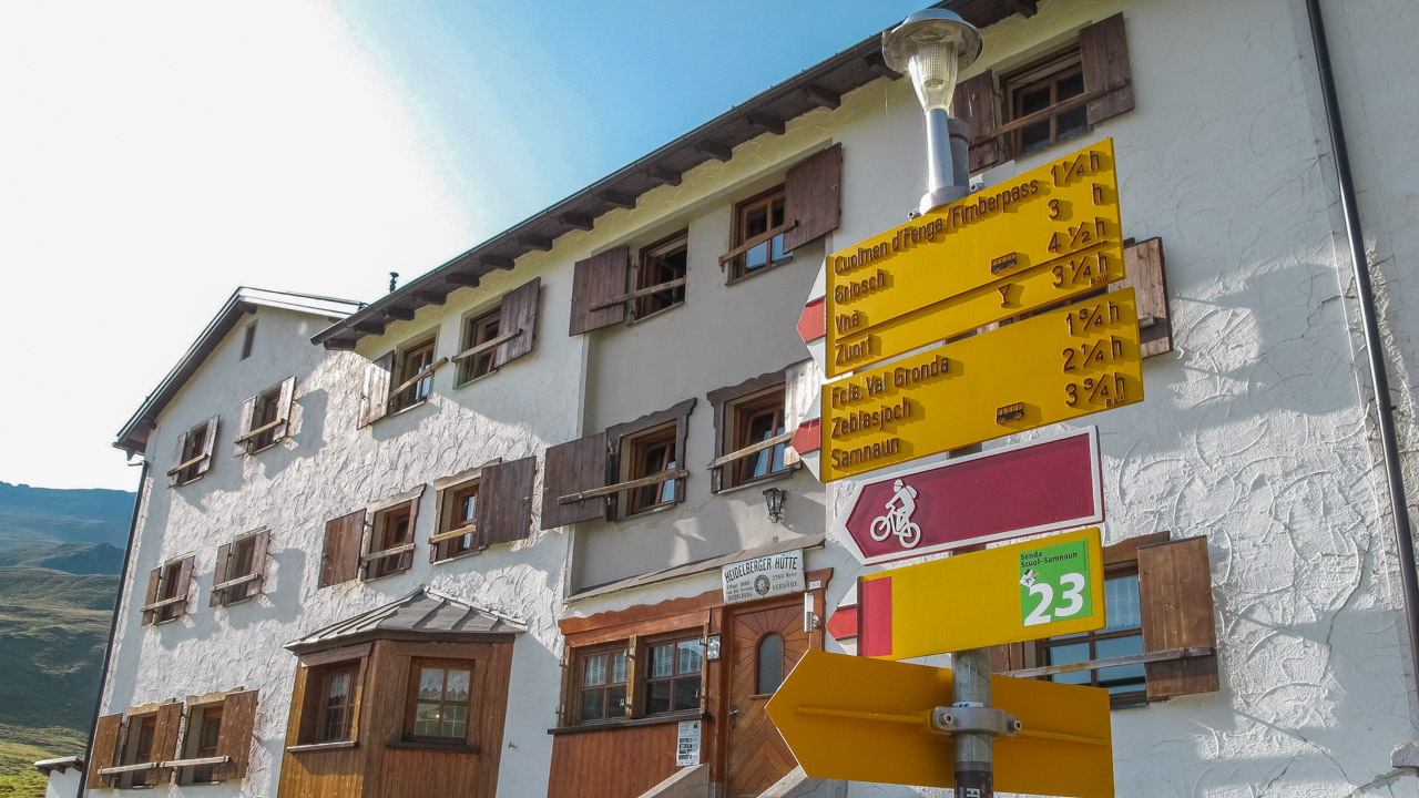 Es ist gemütlich warm und man muss aufpassen, nicht zu träge zu werden. Nachdem wir die Gläser geleert haben, müssen wir wieder los, also verabschieden wir uns – jetzt beginnt der Aufstieg zum Fimberpass.