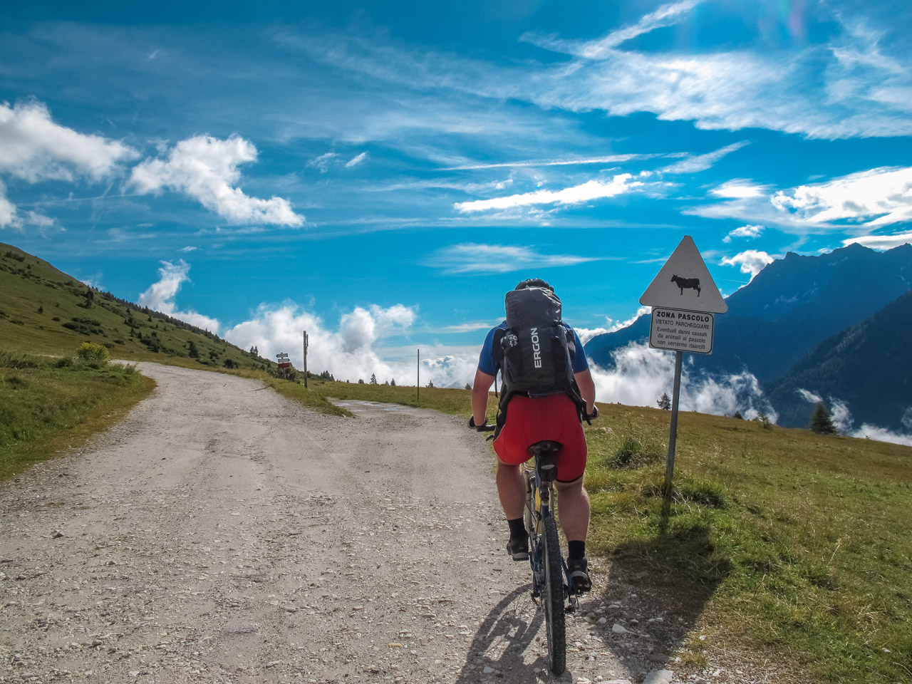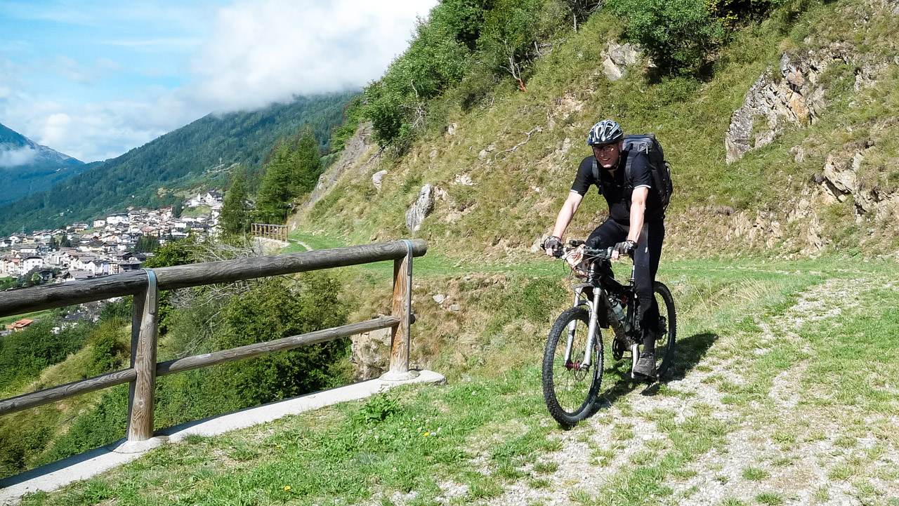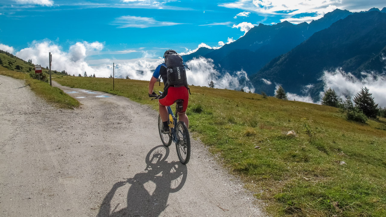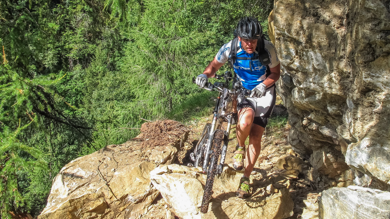 Oben angekommen geht es aber dennoch erst einmal bergauf weiter, dann durch sehr unsagbares Gelände, teilweise wie im Urwald durch Hölzer und Schlamm. Das zerrt an unserer Kondition und der Weg zieht sich dadurch. Aber auch das haben wir geschafft, fahren durch Trail & Waldwegen hinunter nach Mandonna, beziehen unser Hotel und lassen den Abend durch einen Spaziergang im Dorf ausklingen. Für mich beginnt eine unruhige Nacht …