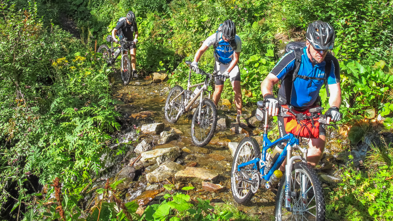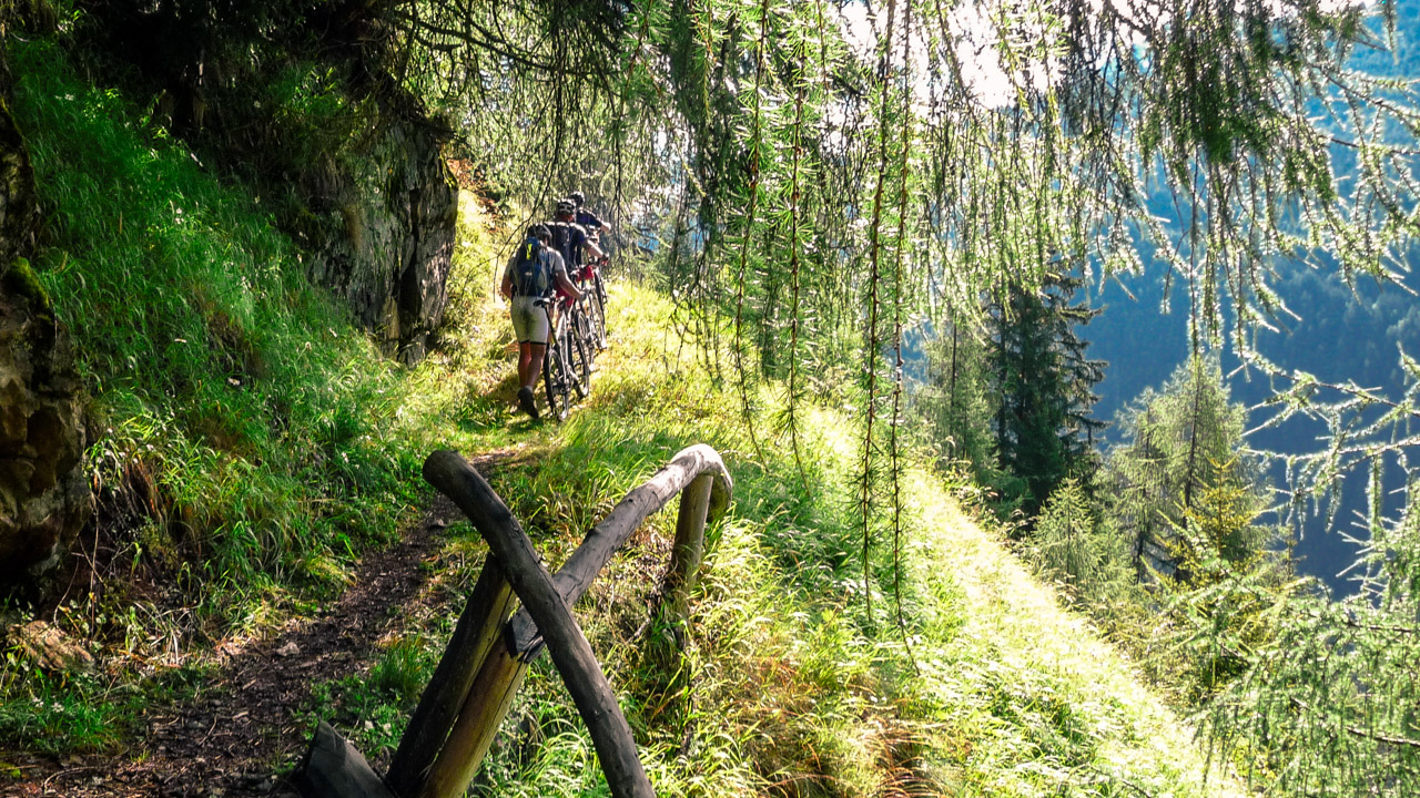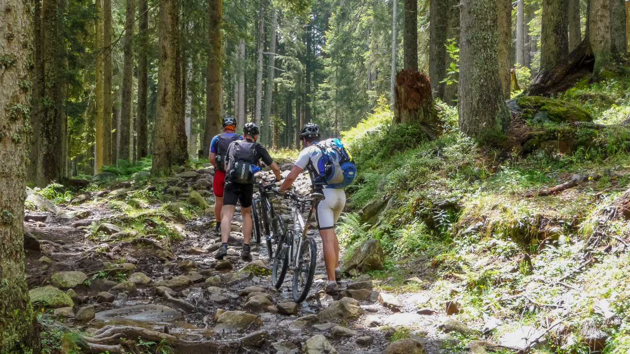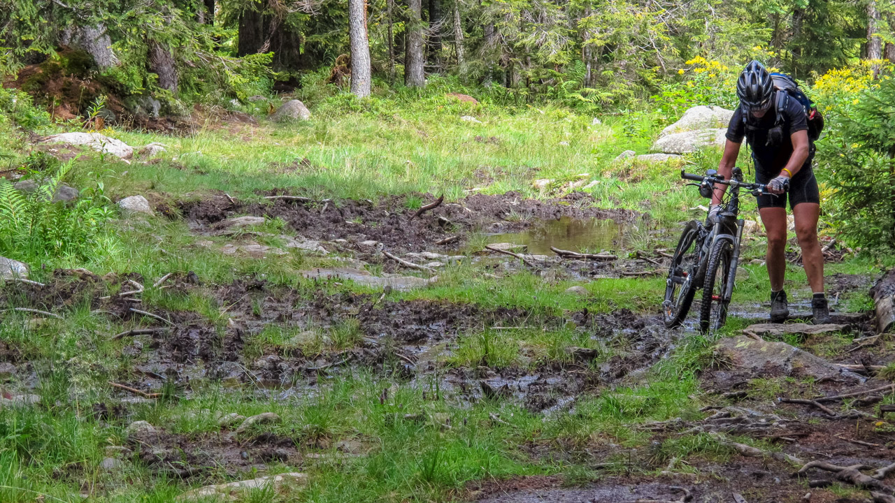 Oben angekommen geht es aber dennoch erst einmal bergauf weiter, dann durch sehr unsagbares Gelände, teilweise wie im Urwald durch Hölzer und Schlamm. Das zerrt an unserer Kondition und der Weg zieht sich dadurch. Aber auch das haben wir geschafft, fahren durch Trail & Waldwegen hinunter nach Mandonna, beziehen unser Hotel und lassen den Abend durch einen Spaziergang im Dorf ausklingen. Für mich beginnt eine unruhige Nacht …