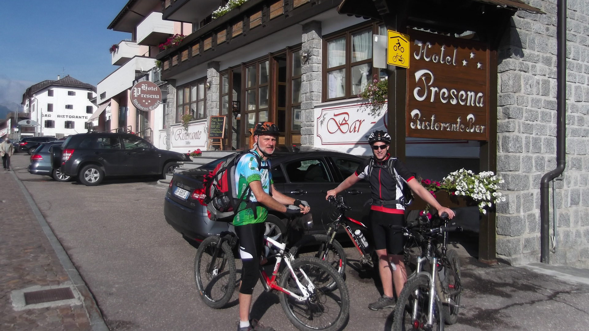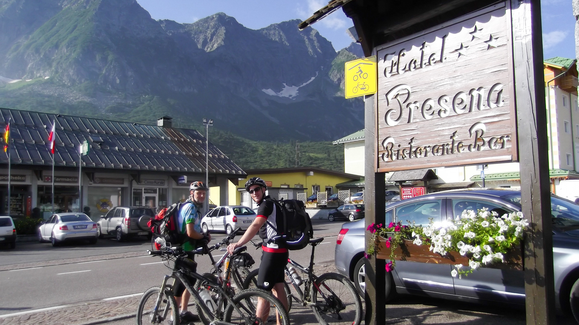 In Campo Caro Magno ist der Spuk vorbei, an eine Holztränke befreien wir uns und unsere Bikes von Matsch & Dreck. Nach Madonna di Campiglio ist es nicht mehr so spektakulär, wir sind aber dennoch froh im Hotel Hotel Italo anzukommen. Das Hotel kenne ich schon von meiner Rennradtour aus 2013. Tolles Essen, klasse Service.