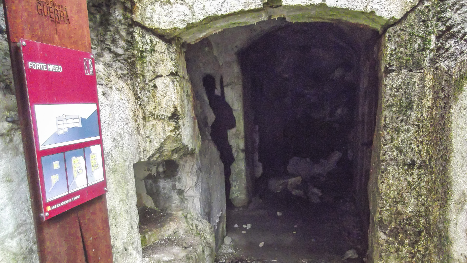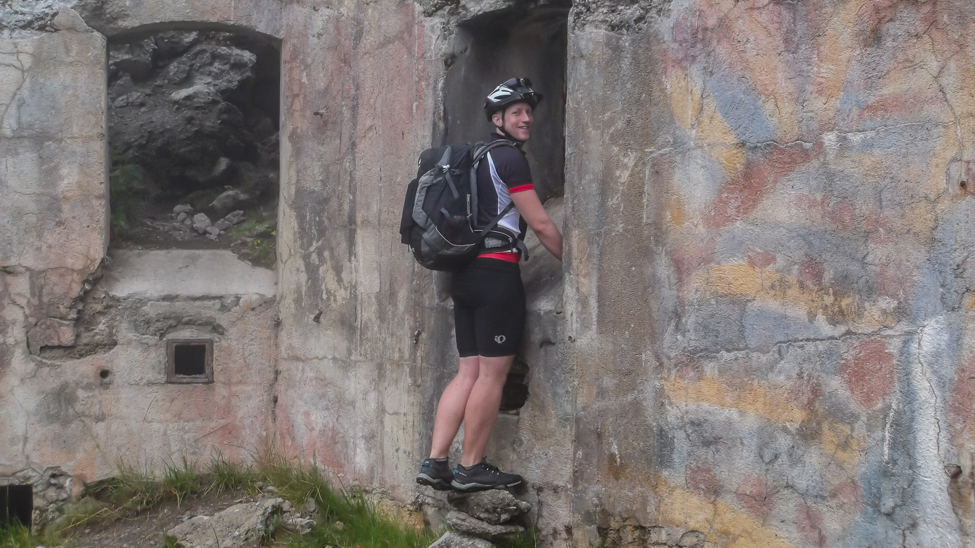 Es geht dann auf einem alten Militärpfad hinunter nach Fucine. Der Weg ist echt klasse, manchmal etwas ausgesetzt, auf der rechten Seite schaust du in die Tiefe. Die Sonne scheint, aber auf der Anderen Seite kommen erste dunkle Wolken auf – nur nicht irritieren lassen und weiter die Abfahrt genießen.