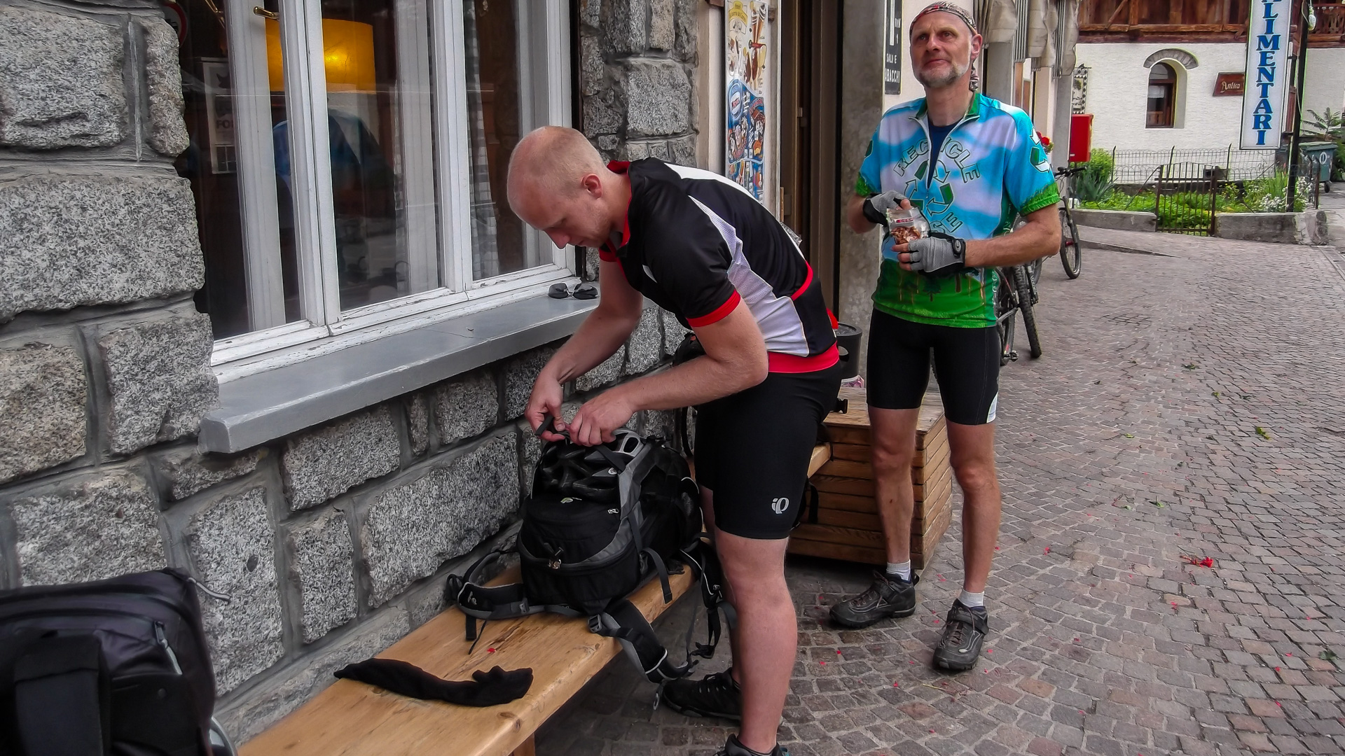 In Ossana gönnen wir uns in einer kleinen Bar einen frisch zubereiteten Espresso – lecker! Der gehört in Italien zum Grundnahrungsmittel und ist dafür sehr günstig. An der Tresen ohne Bedienung haben wir den immer für 80 Cent getrunken. heute wollen wir mal nicht den Klassiker Dimaro – Madonna fahren, sondern haben uns wieder an der Transalp orientiert. Das hat ja gestern top geklappt, warum auch nicht heute.