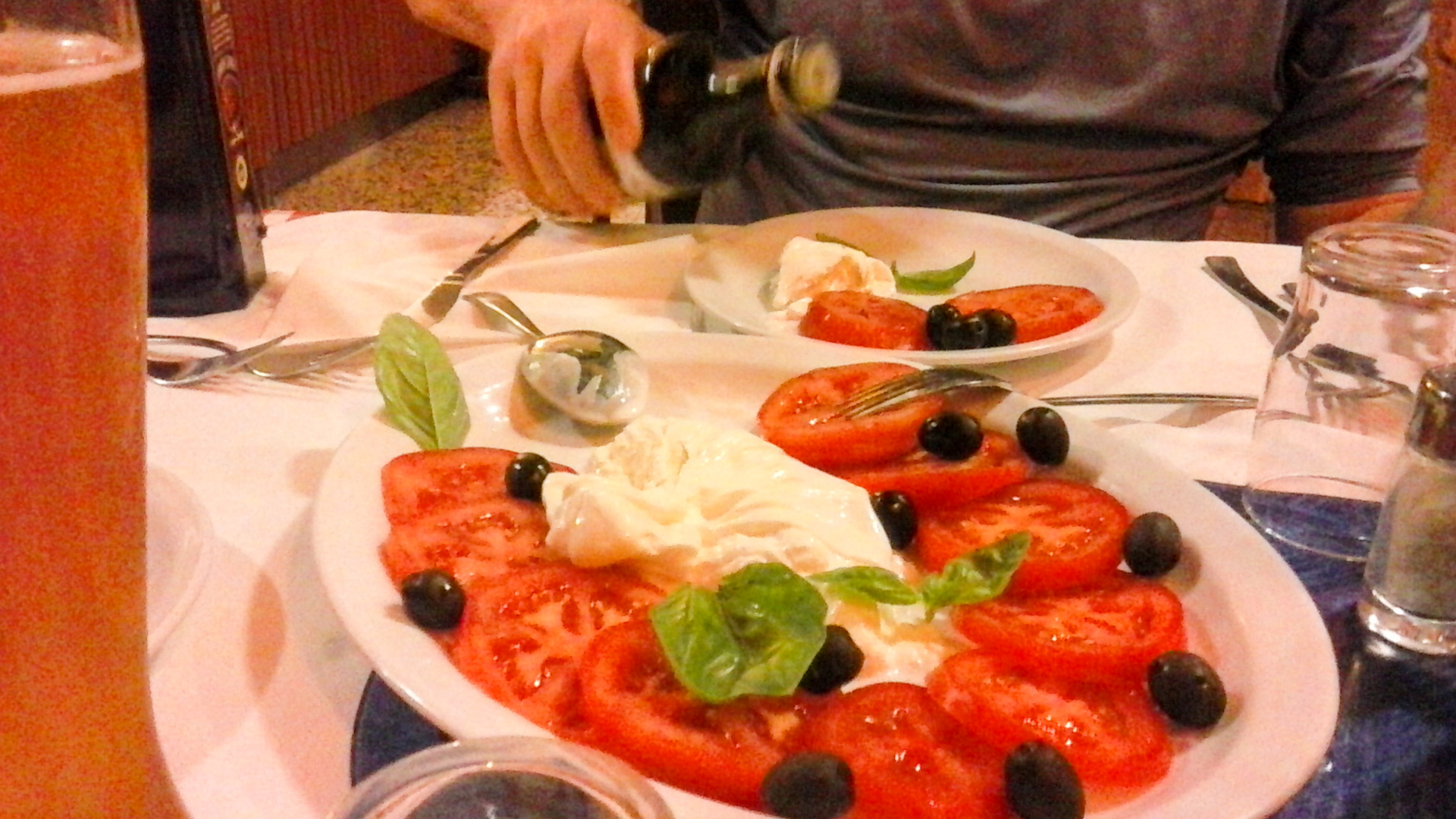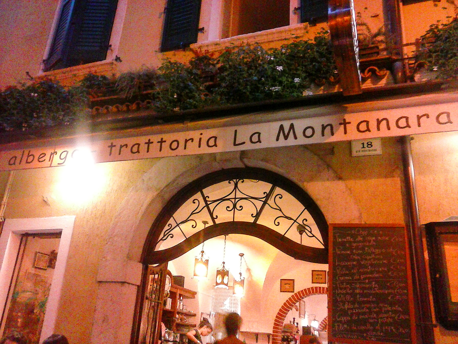 Zwischendurch auf der steilen Schotterabfahrt halten wir an und schütteln unsere Hände aus, denn das laufende Bremsen verkrampft die Finger. Wir vernichten Kilometer um Kilometer auf einer tollen Abfahrt auf feinstem Schotter bis zum Rifugio Ghedina. Eine kleine Pause tut uns gut. Kaum fünfzehn Minuten später machen wir uns auf den Weg, verlassen so langsam die hohen Berge und steuern Richtung Tal. Es wird immer wärmer, so, als würde uns jemand einen Fön vors Gesicht halten. Es ist sehr angenehm zu fahren. Wir heizen die Straße zum Ort Villa Banale hinunter, kommen an eine T-Kreuzung und vor uns steht ein kleines Hotel mit Straßenkaffee, dass ich schon aus dem Cross 2006 kenne.