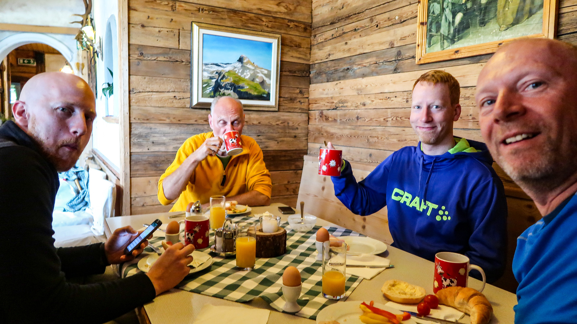 Unten in Fußendrass checken wir ins Hotel Kranebitt ein. Was für ein toller Ritt bei herrlichem Wetter heute. Beim Abendessen wird das Erlebte nochmal Revue passieren lassen, die Träume im Bett sind schon beim Pfunderer Joch ….
