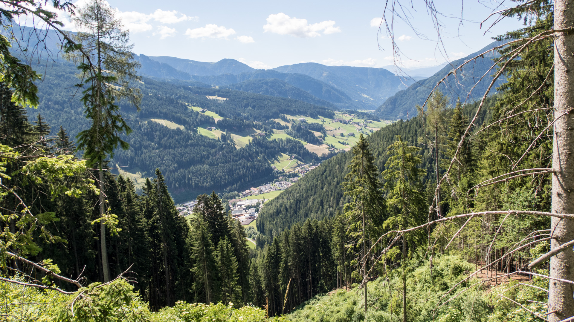 6 km und 660 hm müssen wir noch machen, die Hitze ist enorm, knappe 33 Grad im Schatten. Es bleibt uns nichts anderes übrig – los gehts auf einer kleinen Straße immer bergauf nach Sankt Aponnolia zum Ebernhof, unser heutiges Etappenziel. Genau 1:15 Stunden später erreichen wir völlig fertig das Ziel. Der Hausherr begrüßt uns und ich kann seine ersten Worte noch genau hören: „Warum habt Ihr nicht angerufen, ich hätte euch mit Traktor & Anhänger unten abgeholt….“
