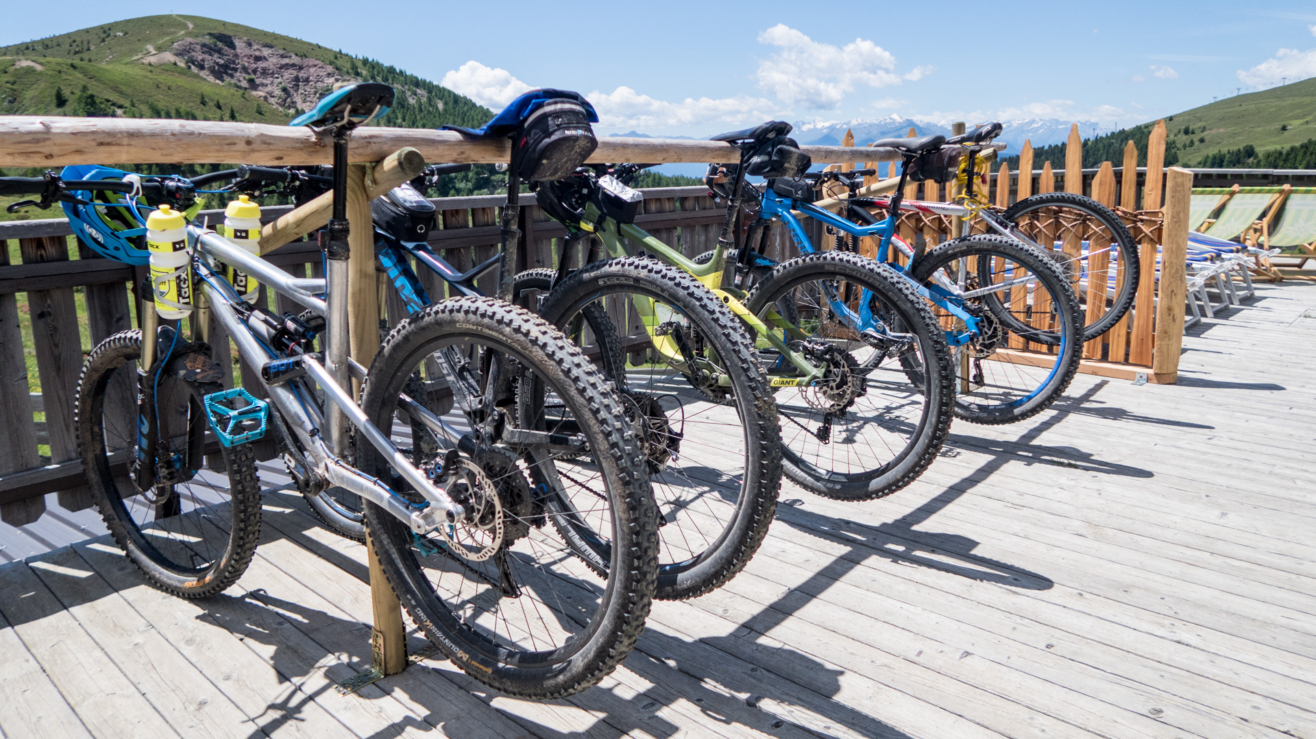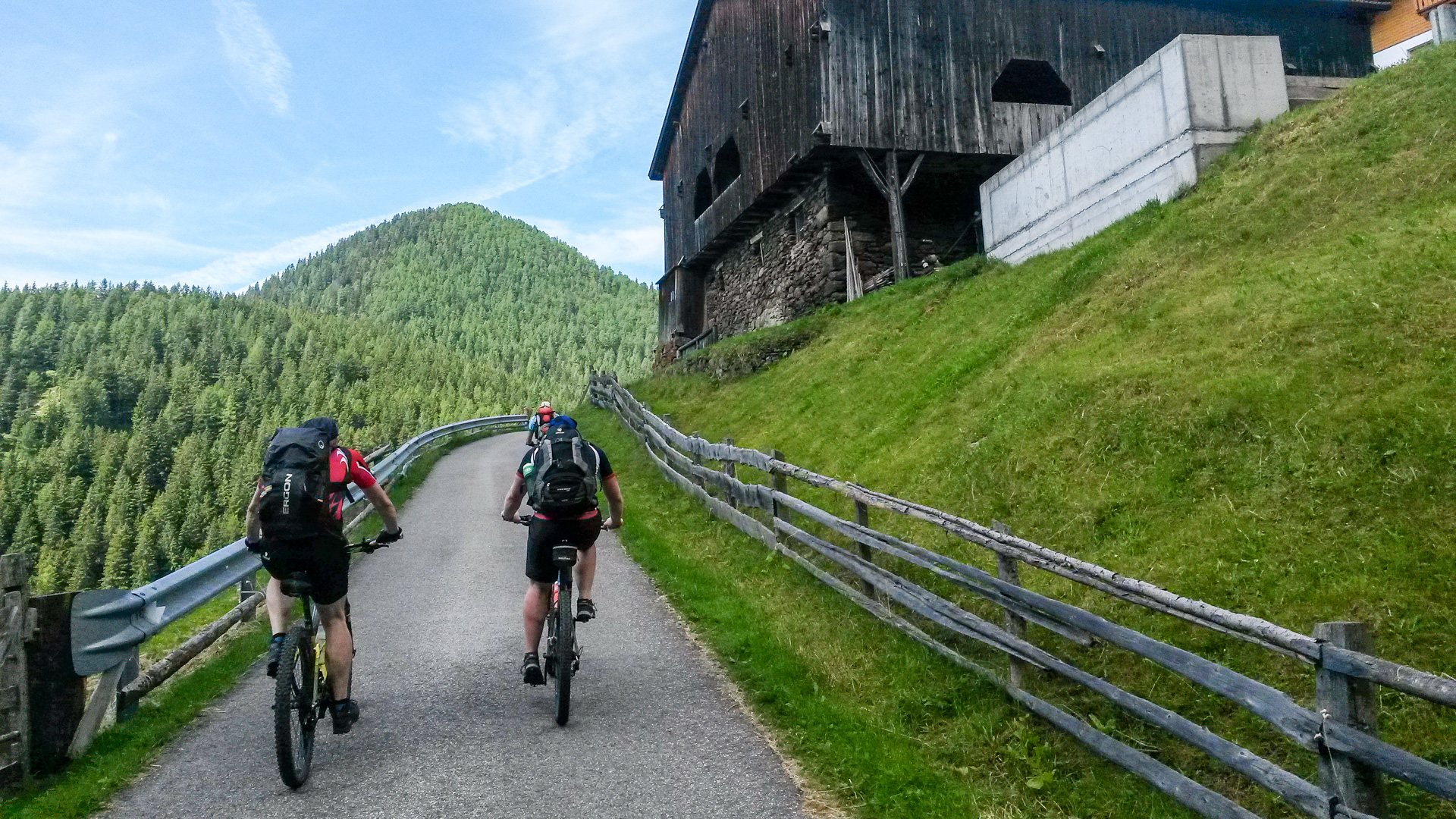 Auf 10 km knapp 1.100 Höhenmeter, so soll der Biketag heute beginnen. Von Sarntal zur Meraner Hütte. Gefrühstückt haben wir gut, die Bikes sind in einem guten Zustand und das Wetter? Strahlend Blauer Himmel und jetzt schon sehr warm.