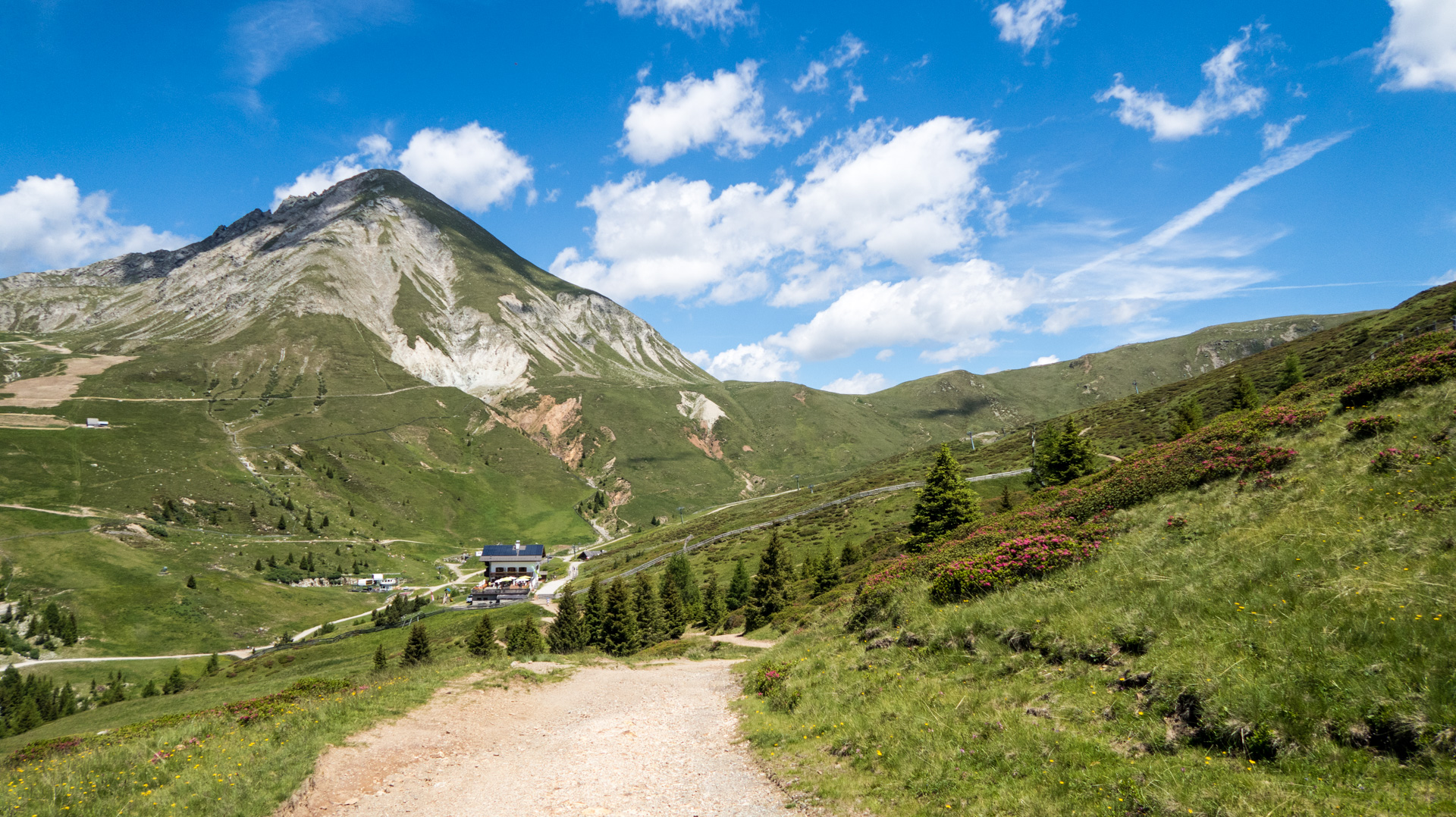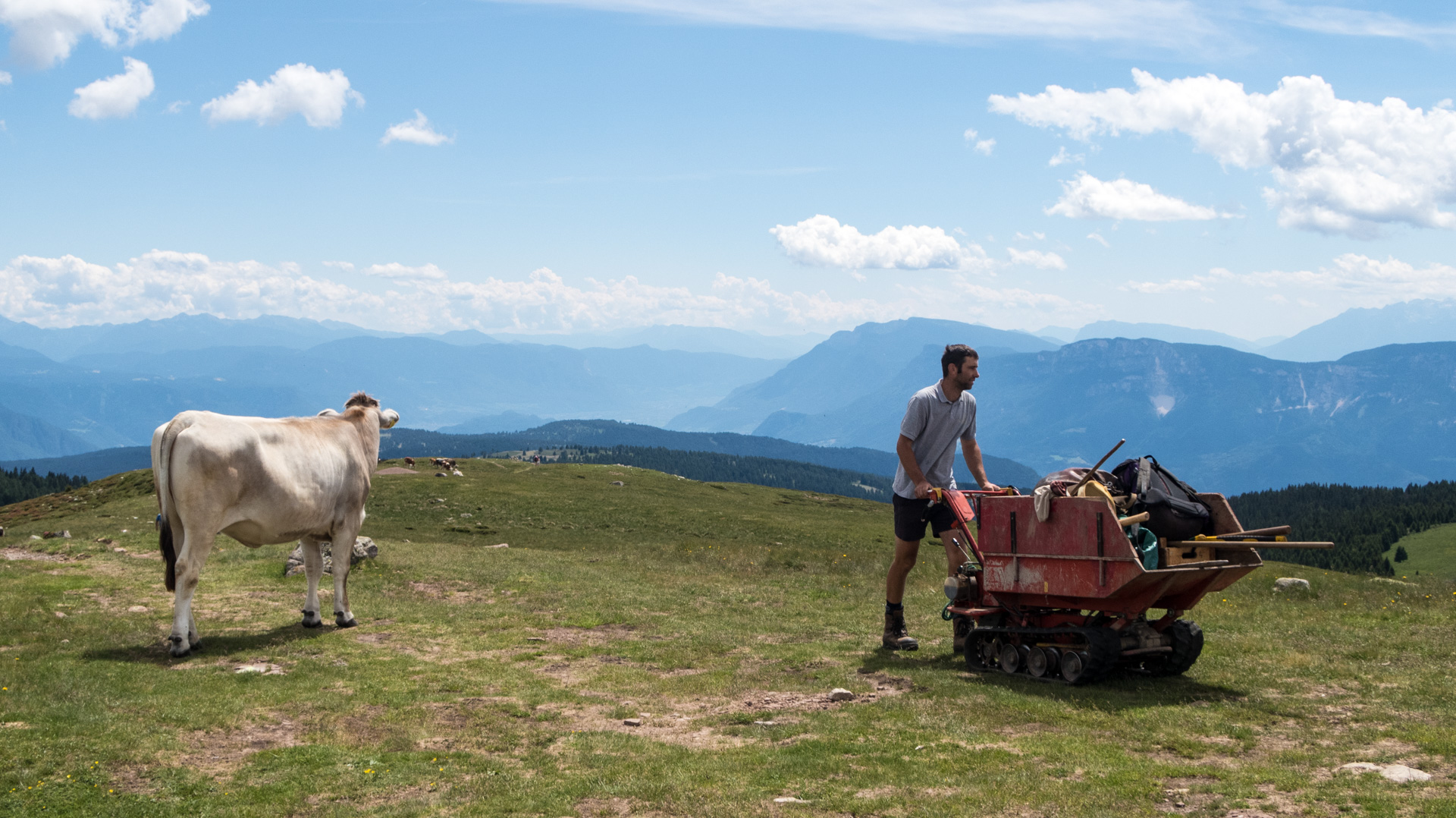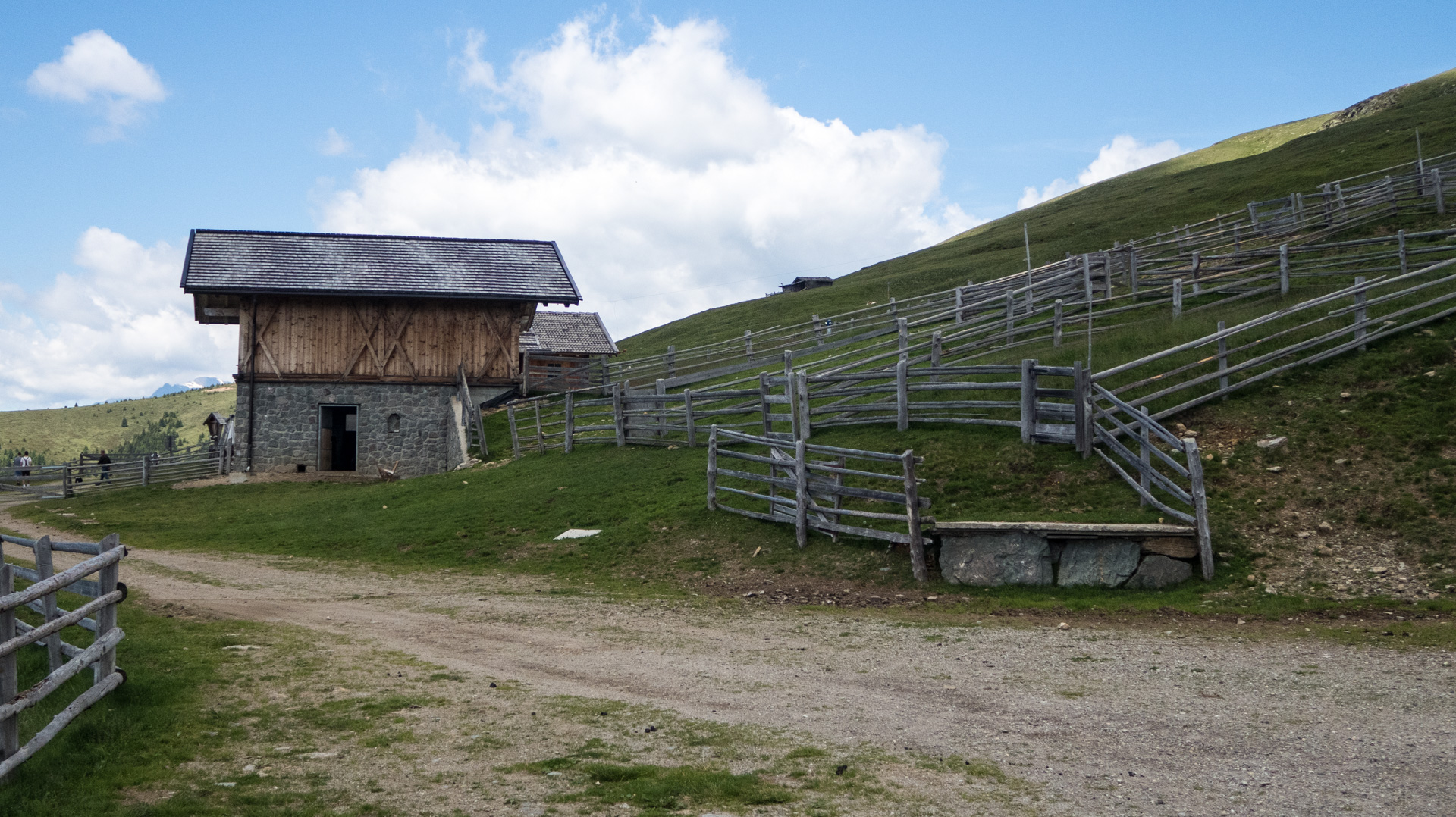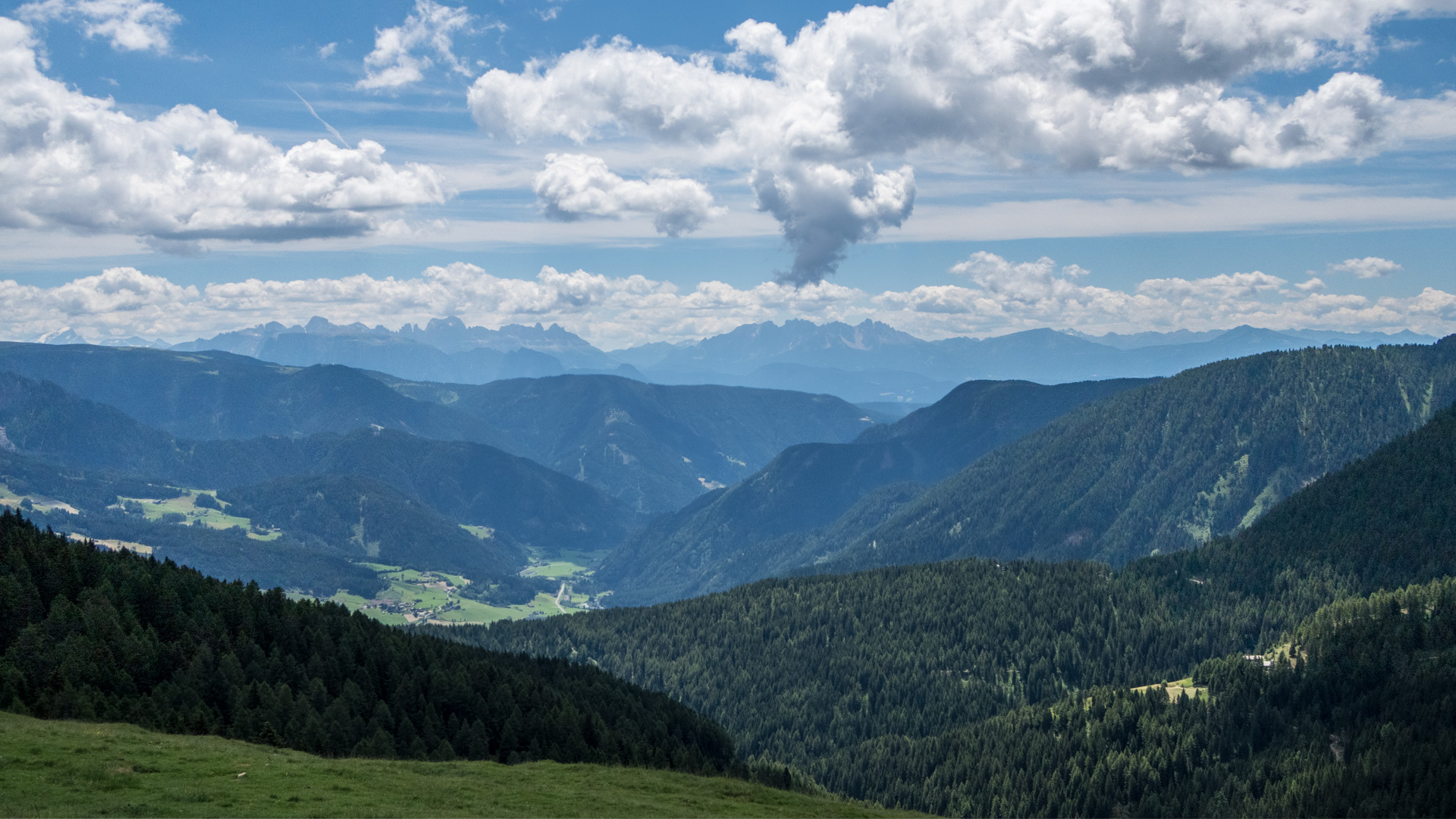 Das Auener Jöchl ist 4 km und 180 hm entfernt, das meiste müssen wir auf dem auf einem Pfad hinauf scheiben. Wow – hier oben hat man eine 360 Grad Rundumsicht. Man will gar nicht mehr weg, saugt nur noch tolle Bilder in den Kopf und in die Kamera. Es ist alles so friedlich, die Kühe sonnen sich, ein paar Wanderer genießen die Aussicht.