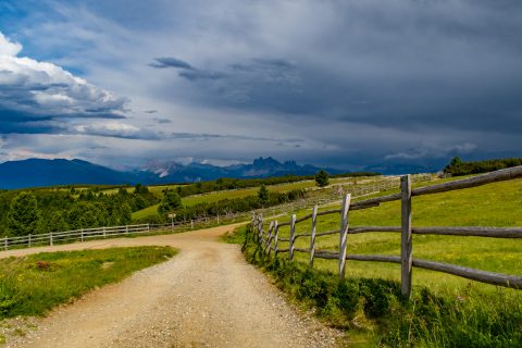 Wir klettern über einen Zaun, der Weg führt uns hoch zu den Stoanane Mandln: