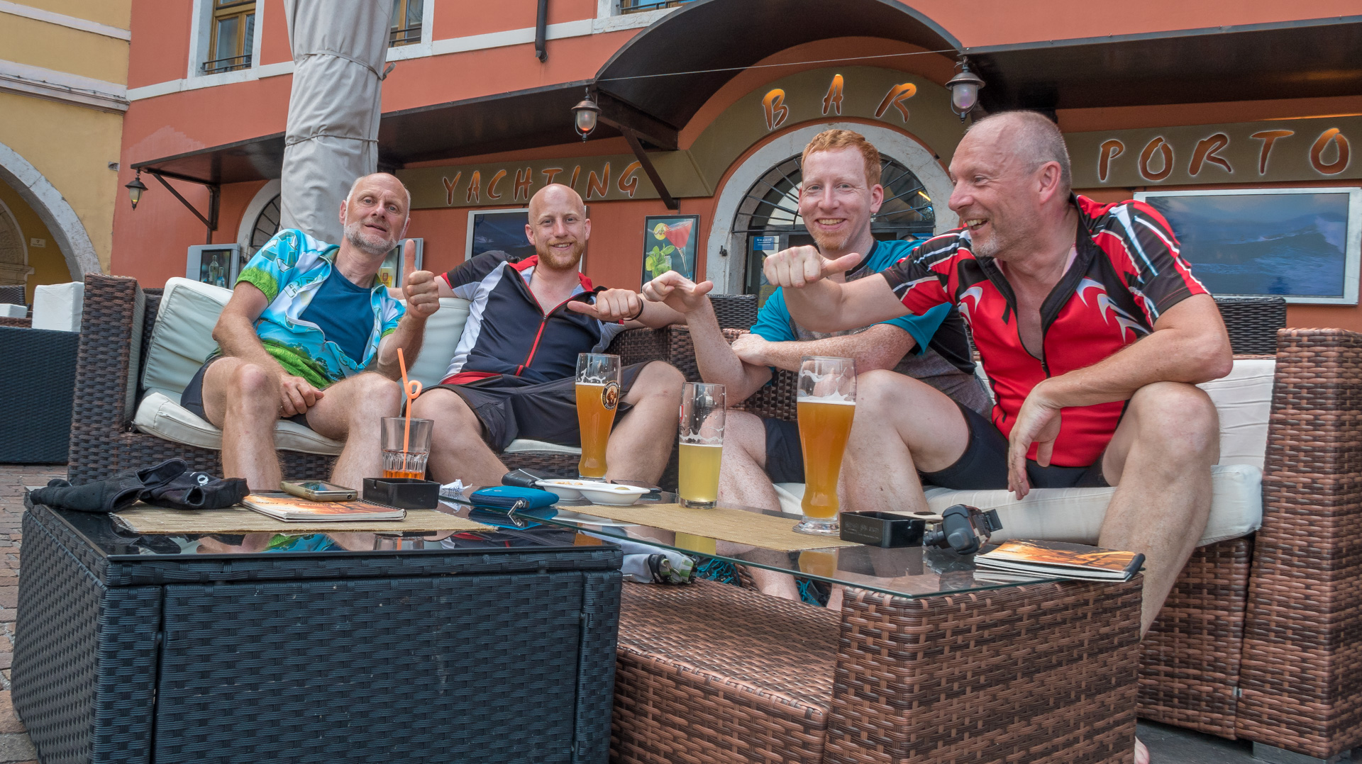 In Riva auf dem Marktplatz klatschen wir uns ab und beglückwünschen uns gegenseitig für einen wirklich gelungen Cross. 3 oder 4 Weizenbier später treffen meine Frau Simone & Thomas seine Katharina ein und feiern mit uns. Es werden nochmal tolle Tage am Gardasee, bevor wir die Heimreise antreten müssen….