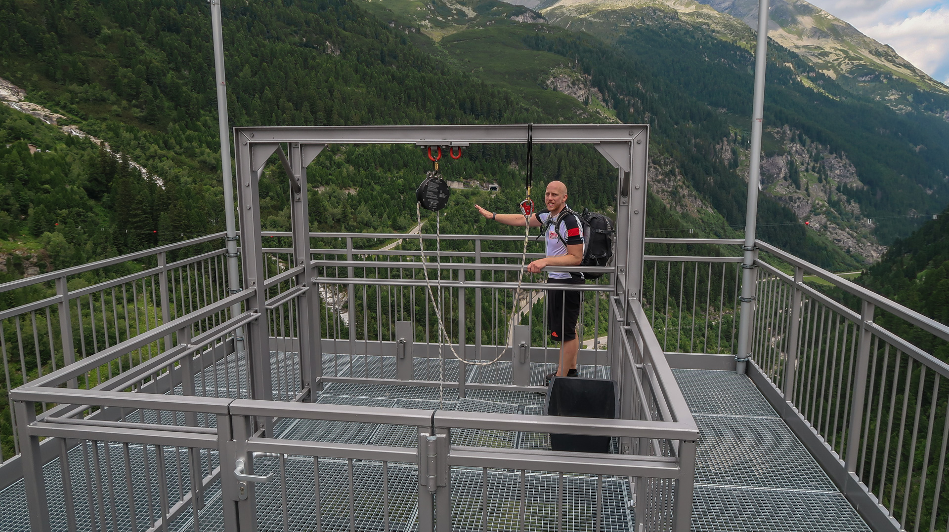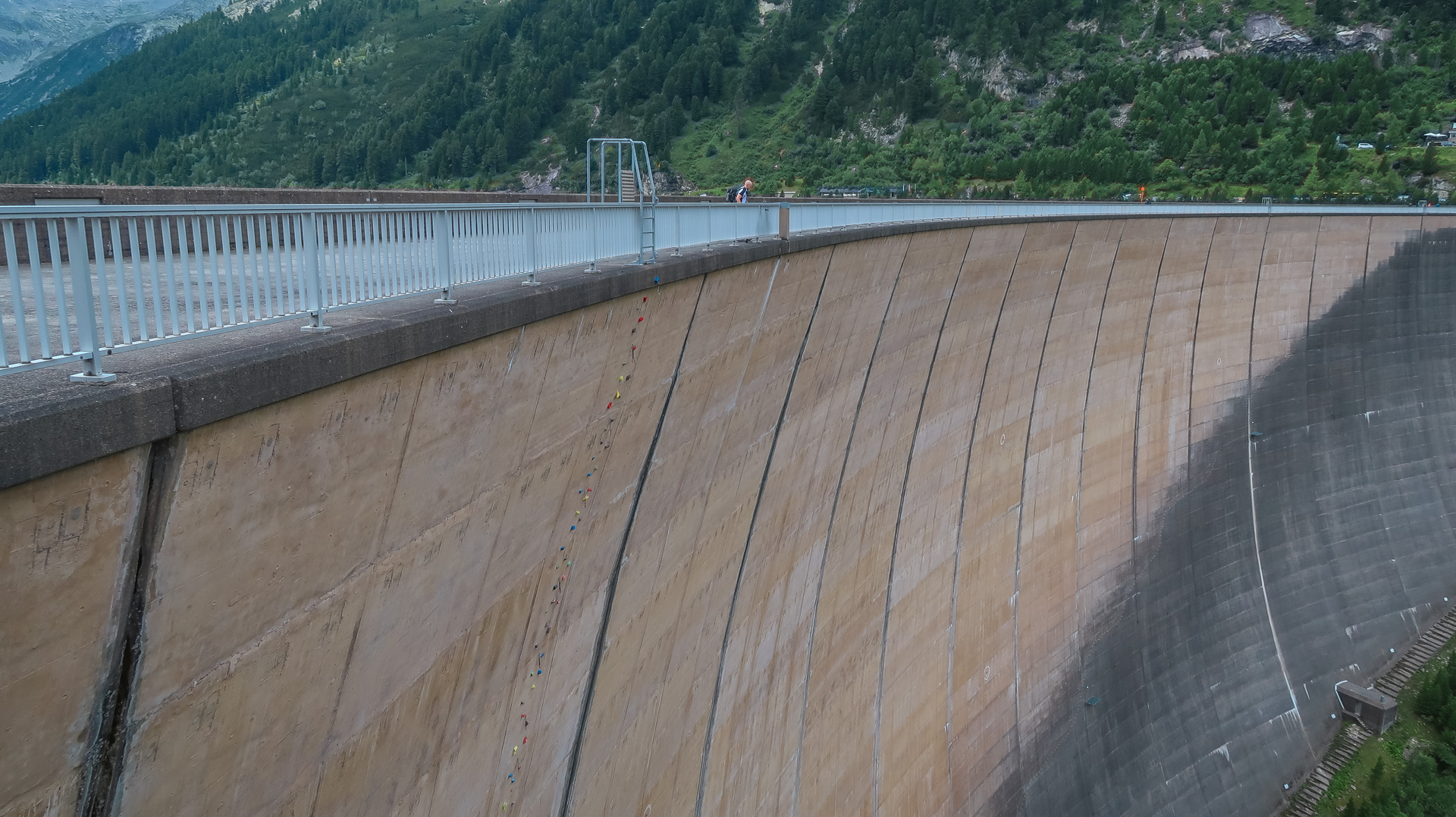 Hier hat sich auch einiges getan seit meinem letzten Besuch: Ein Kiosk, eine Klettermöglichkeit vom Fuße der Mauer bis hoch aufs Geländer, eine nach außen herausragende Besucherplattform, eine neue Möglichkeit per Seilwinde von der einen zur anderen Seite der Staumauer „zu fliegen“. Ein paar Bilder später machen wir uns weiter, wir wollen an einer kleinen Hütte eine Rast einlegen, das tut gut und wir genießen die Sonne und die kalten Getränke.