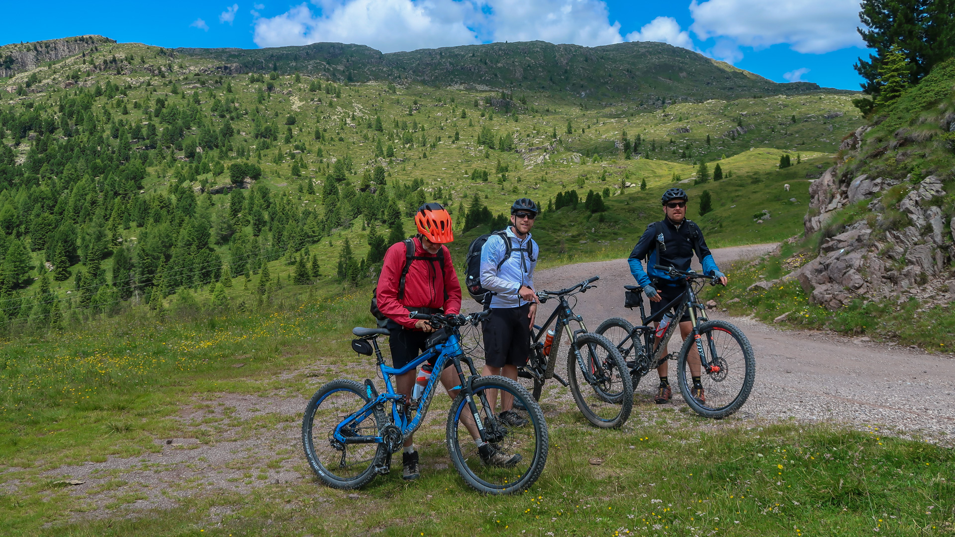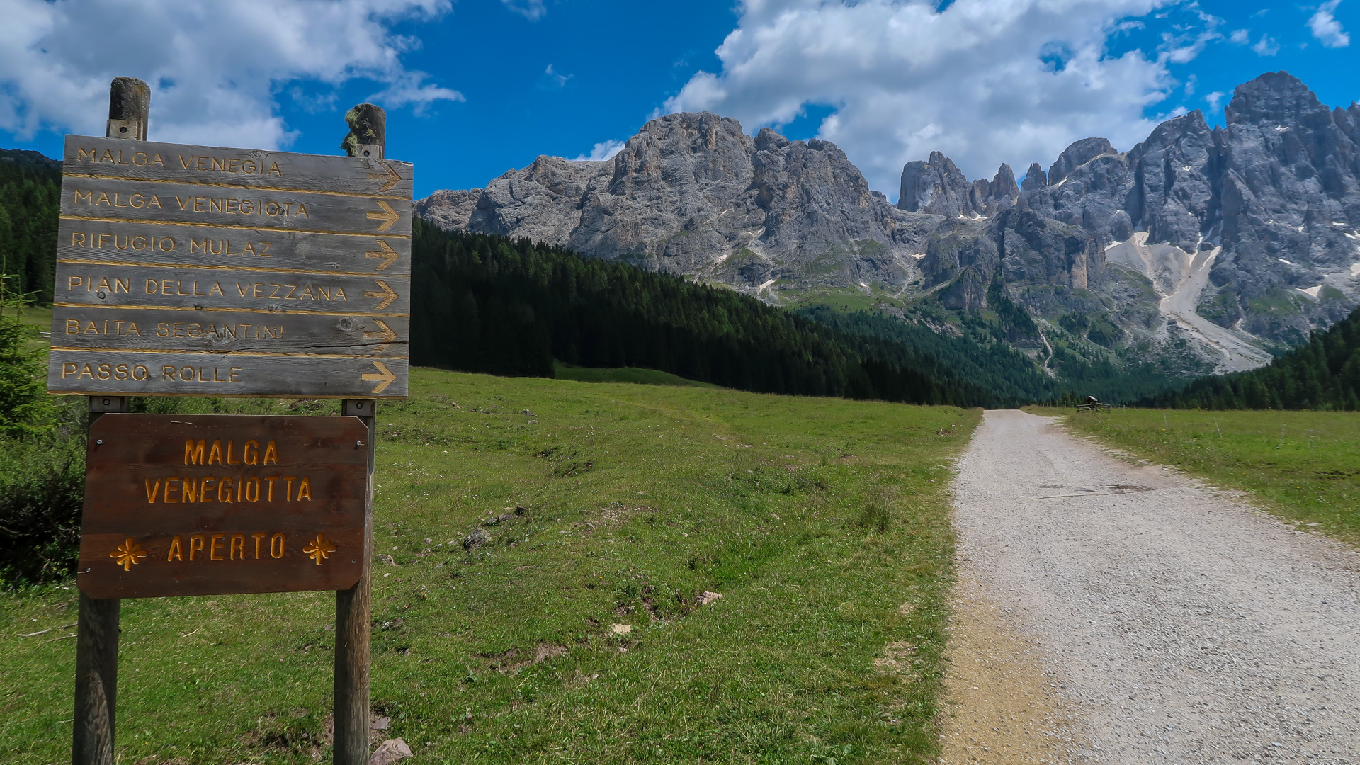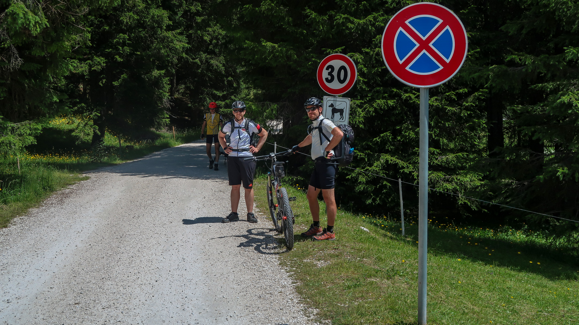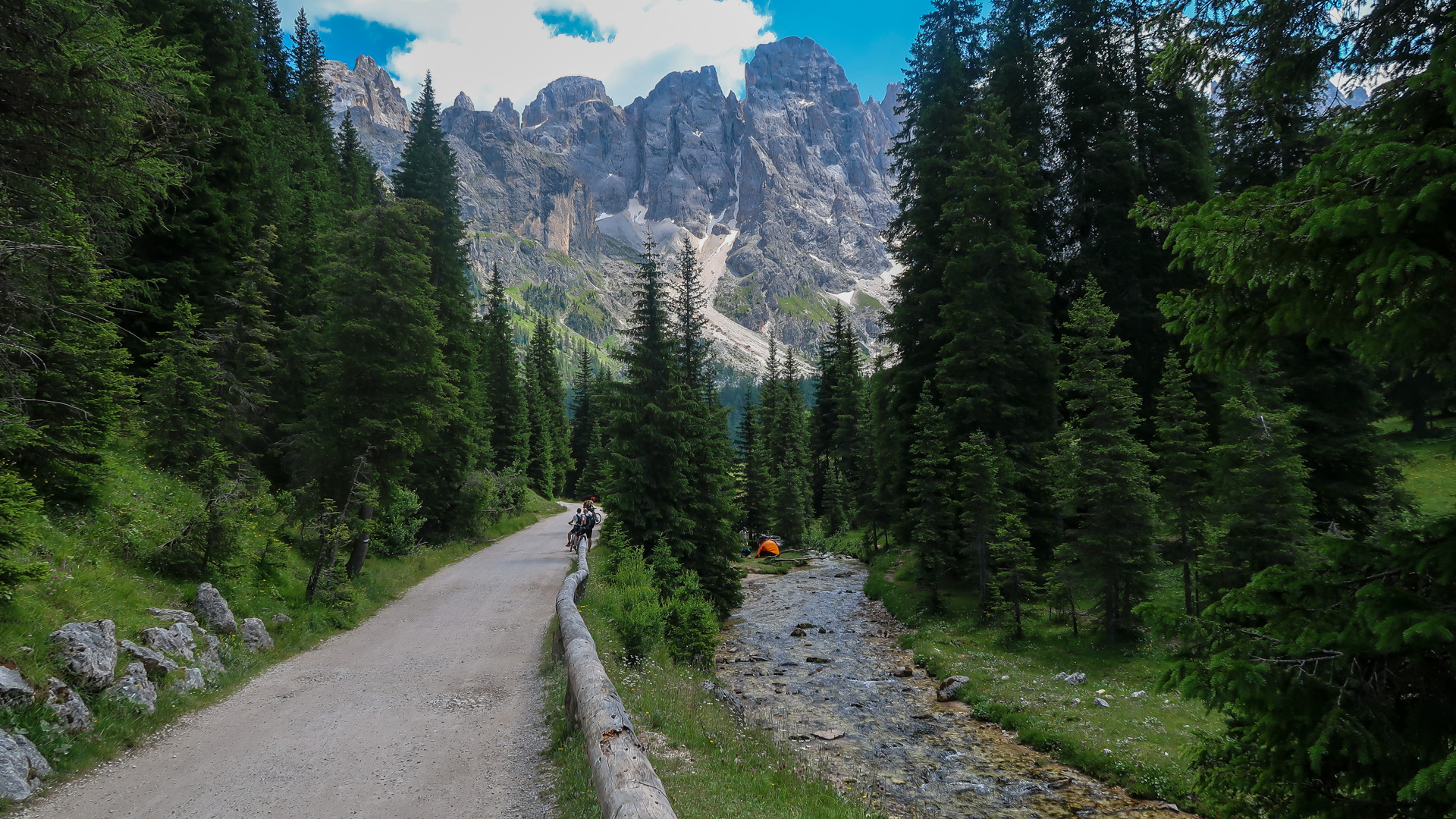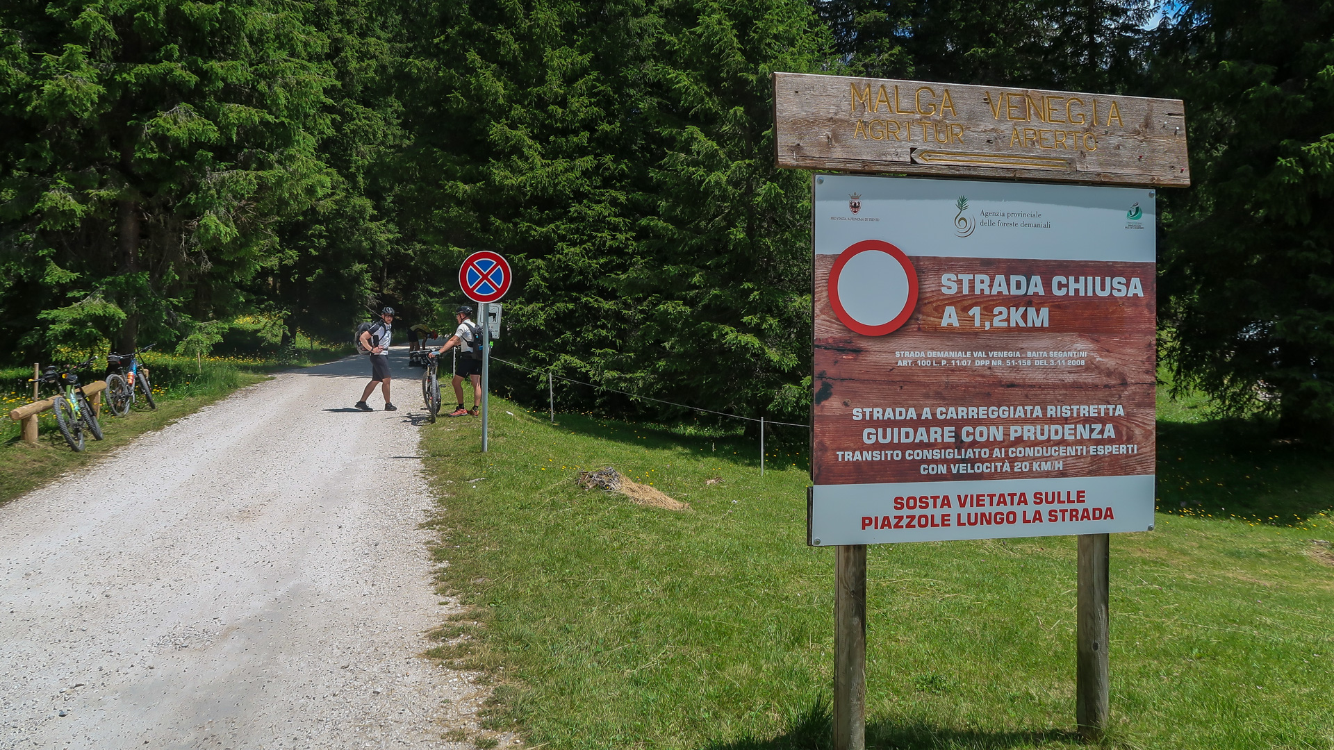 Einen Teil der heutigen Strecke kenne ich schon, das wunderschöne Val Venegia aus meinem Monte Grappa Cross von 2007. Dieses mal kommen wir nicht vom Passo Lusia, sondern kurz vor dem Passo San Pellegrino über den Col Margherita per Seilbahn, aber soweit sind wir noch lange nicht.