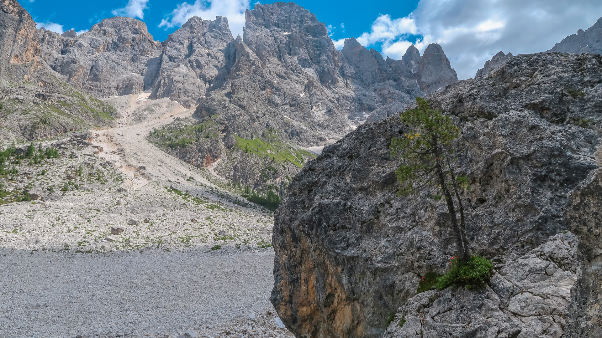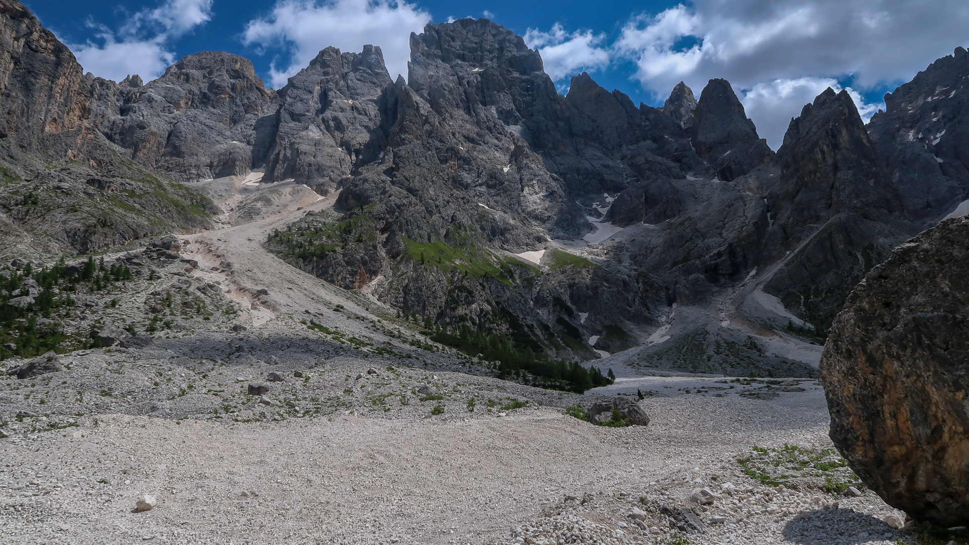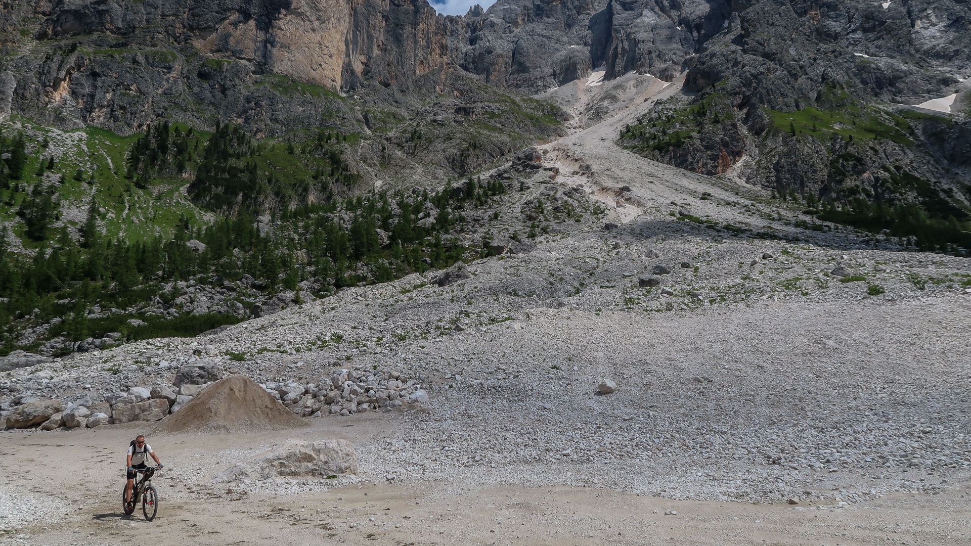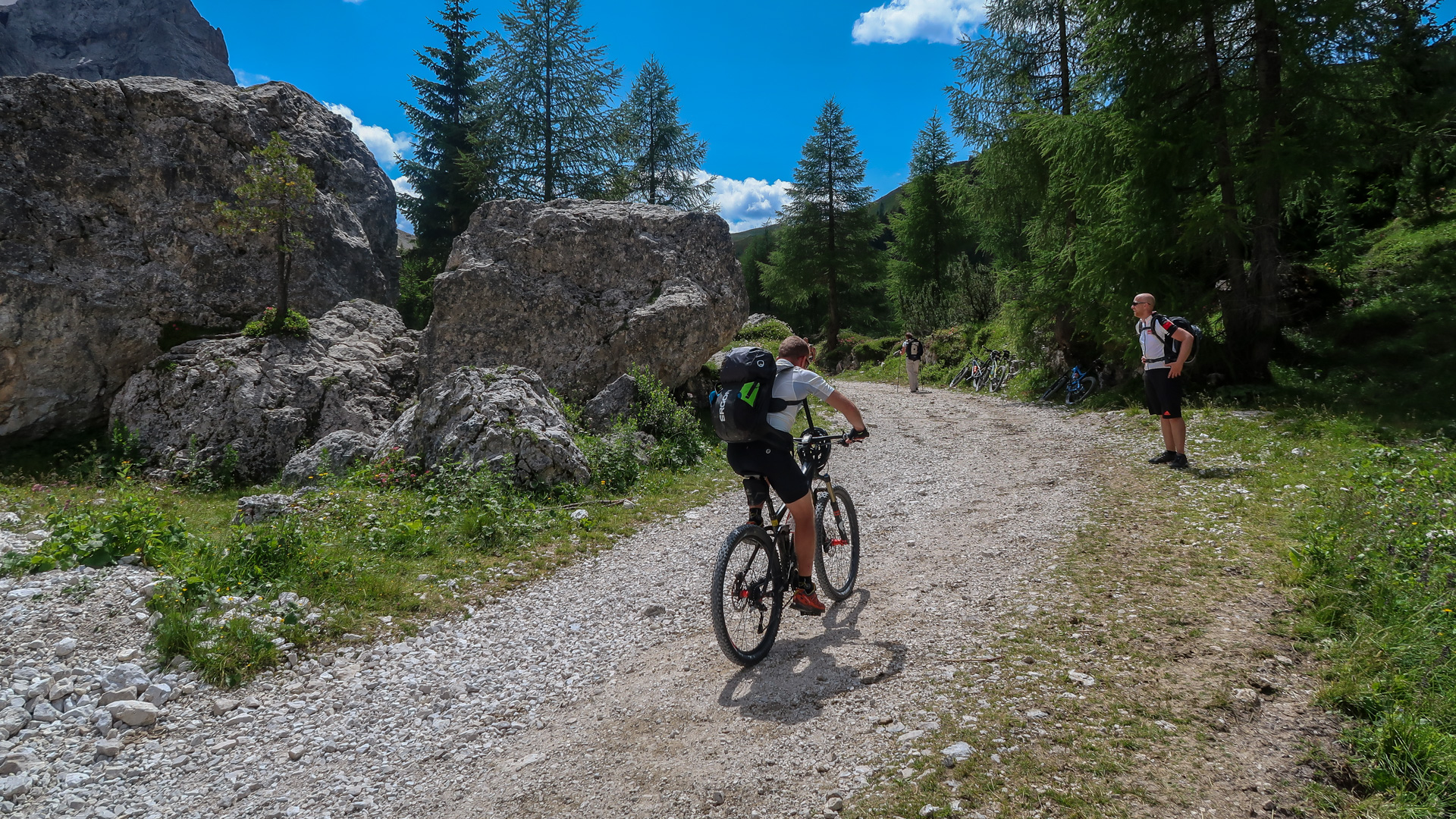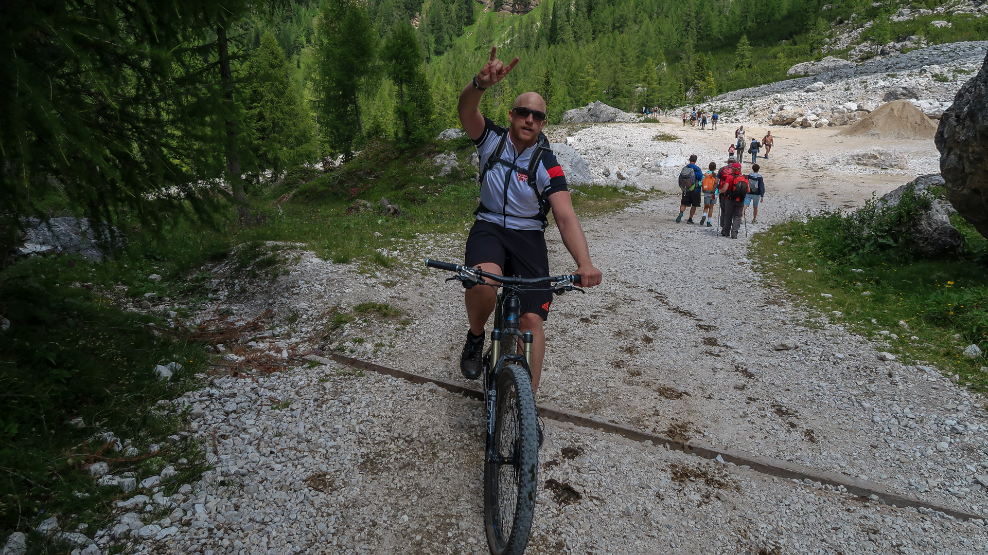 Einen Teil der heutigen Strecke kenne ich schon, das wunderschöne Val Venegia aus meinem Monte Grappa Cross von 2007. Dieses mal kommen wir nicht vom Passo Lusia, sondern kurz vor dem Passo San Pellegrino über den Col Margherita per Seilbahn, aber soweit sind wir noch lange nicht.