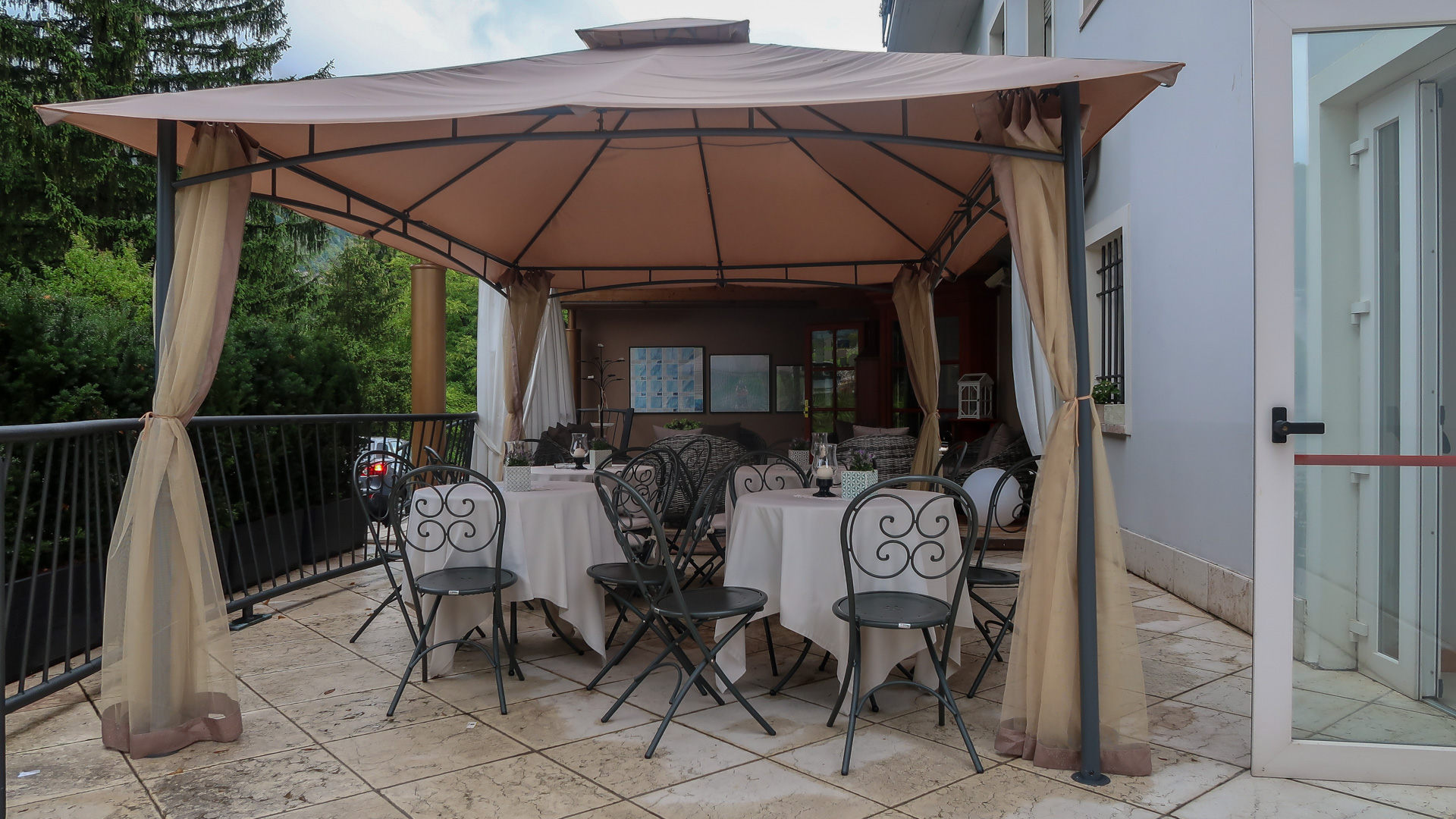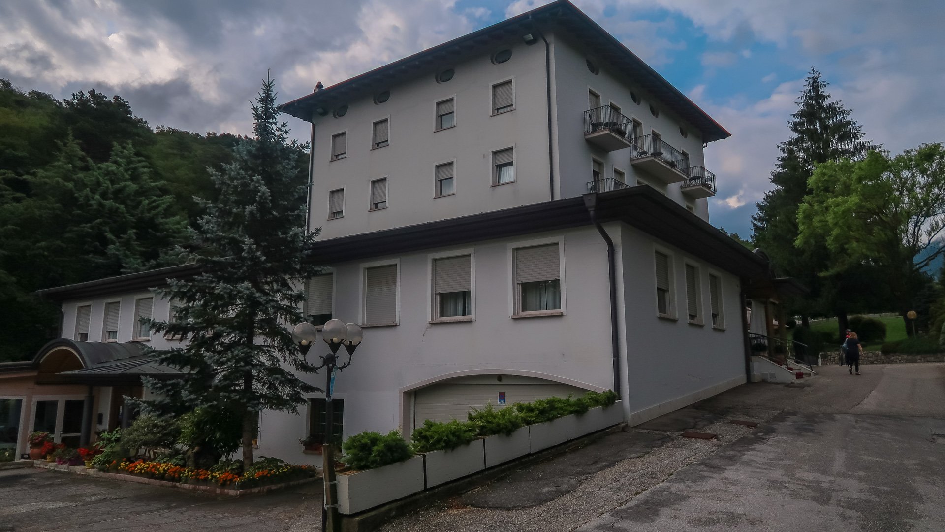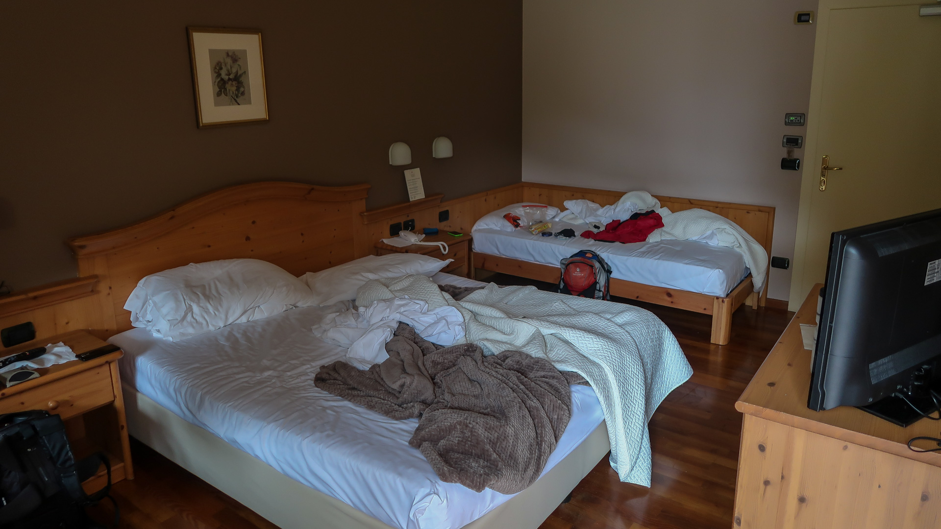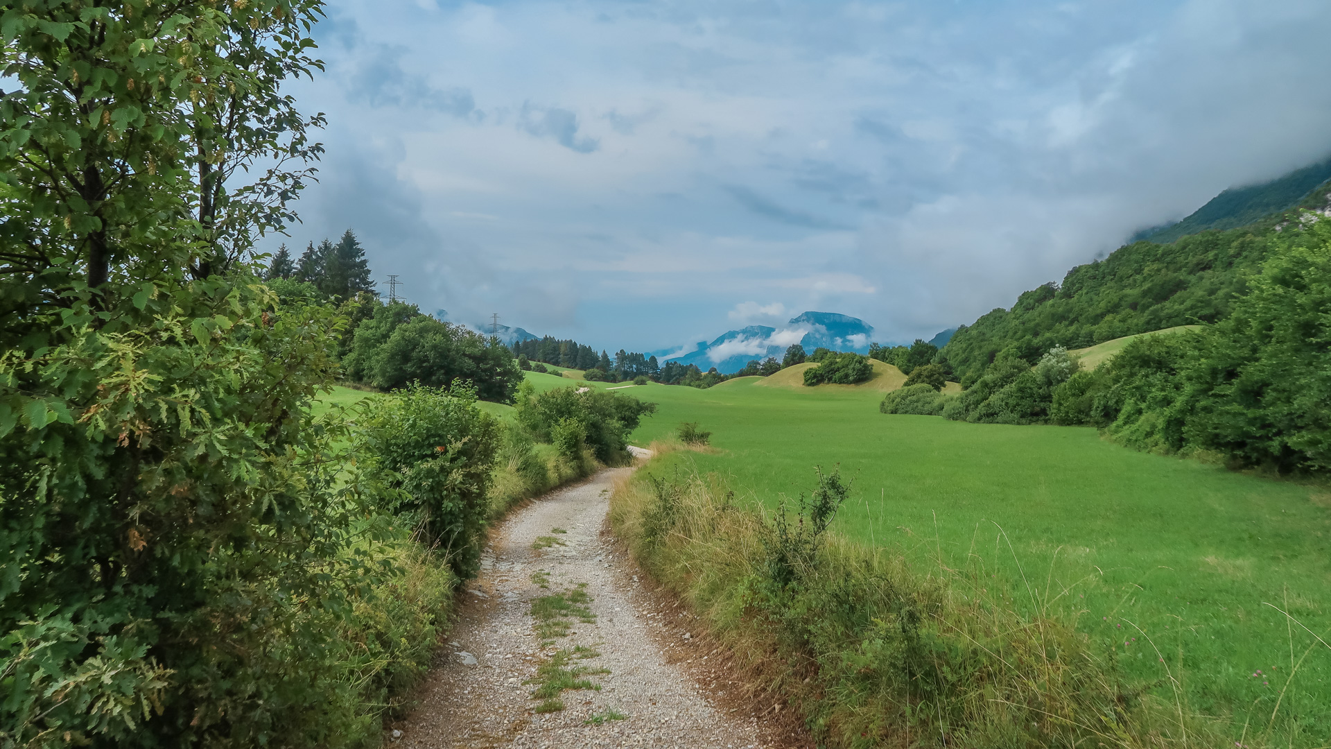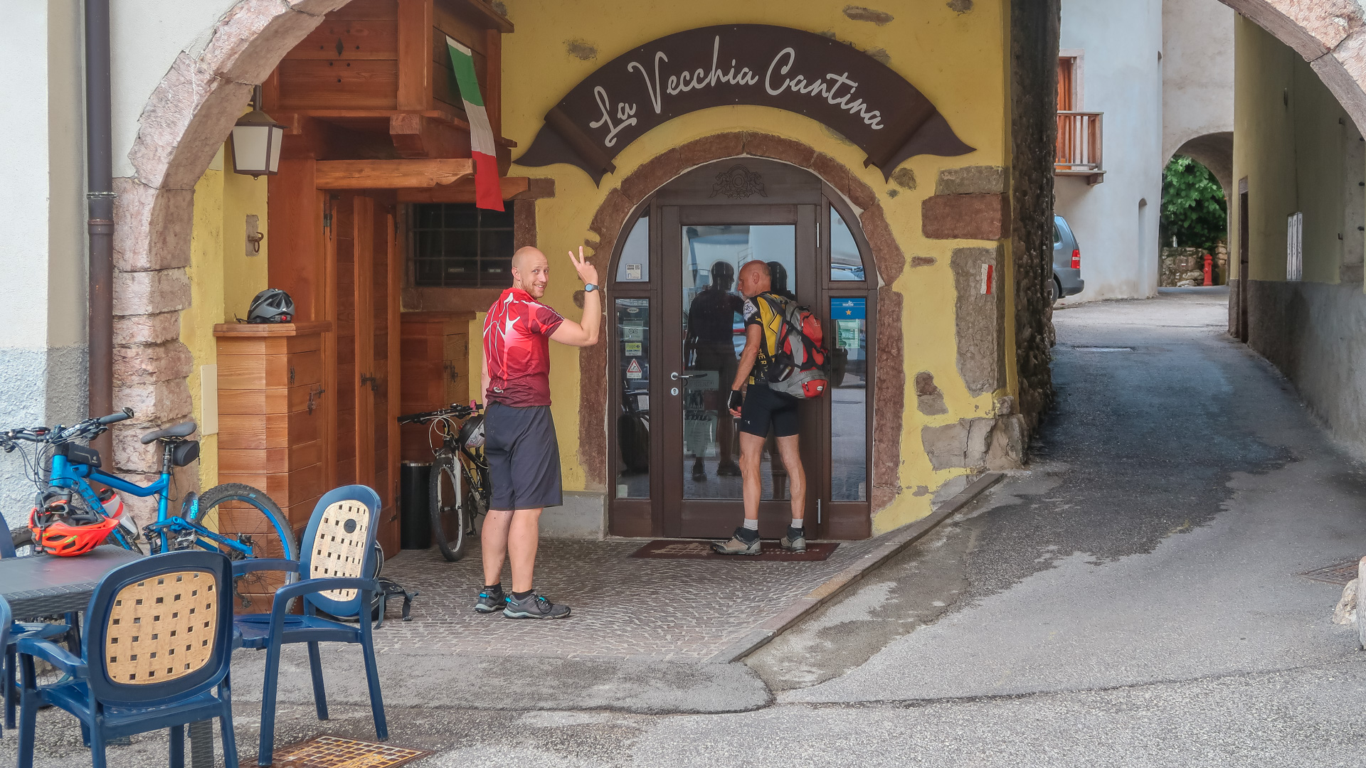 Oh weh – schon wieder der letze Tag des Alpencross. Es hat über Nacht ordentlich gewittert, die Berge sind aktuell noch unter einer dicken Wolkendecke versteckt. Jetzt geht es erst mal zum Frühstück. Lars hat durch die andauernde Belastung Probleme mit seiner Schulter – wir schätzen einfach eine Überanstrengung durch Rucksack und das durchschüttel der ruppigen Trails. Die OP ist ja gerade mal 10 Wochen her. Wir raten ihm, die letze Etappe auf dem Radweg nach Riva zu fahren und nichts zu riskieren, das sind grade mal 30 km. Er ist vernünftig genug und befolgt unserem Rat.