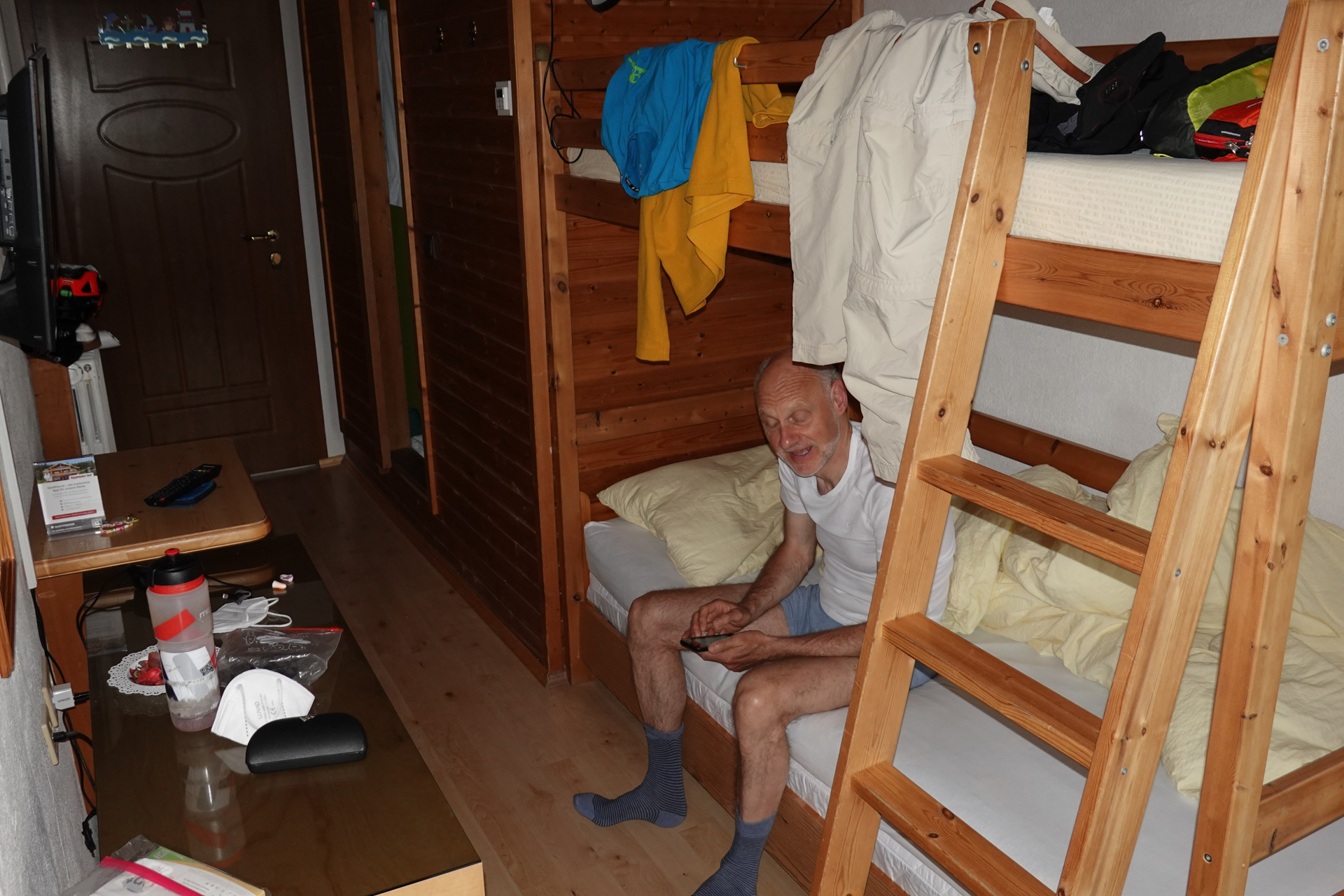 „Bevor Ihr euch setzt brauch ich erst mal eure Daten“ meinte die Wirten mit ernstem Blick! Aber Sie hat Recht – Sicherheit geht schließlich vor. Nachdem wir alle Daten von uns preisgegeben haben haben, werden wir an einen desinfizierten Tisch geführt – schon komische „Corona-Zeiten“. Die freundlicher gewordene Dame meint: „Jetzt ist aber Zeit führ was Kühles – gell“ und Sie zwinkert mit den Augen. Kalte Getränke, leckerer Kuchen und für jeden noch eine Suppe füllen unseren Mineralienhaushalt wieder auf. Leben – was willst du mehr. Die Zeit vergeht, aber wir haben kein Stress – Urlaub ist angesagt und somit genießen wie die Sonnenstrahlen auf unserer Haut, beobachten das Treibern auf der Alm und lassen die Gedanken fliegen. Nach 1,5 Stunde machen wir uns auf, den Rest der Strecke unter die Stollen zu nehmen.