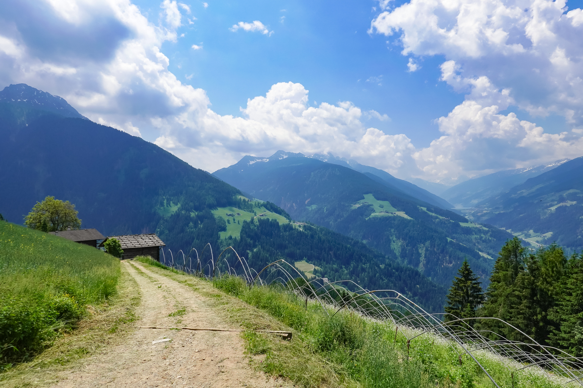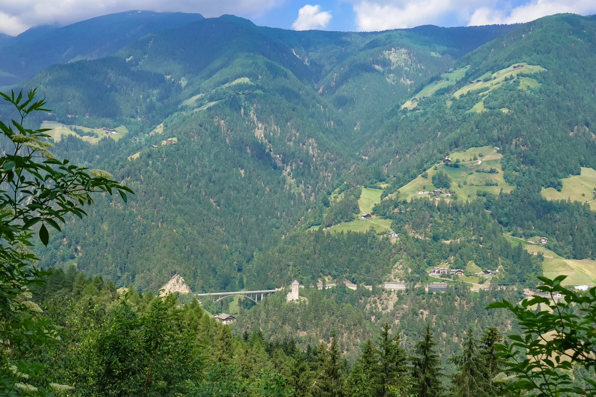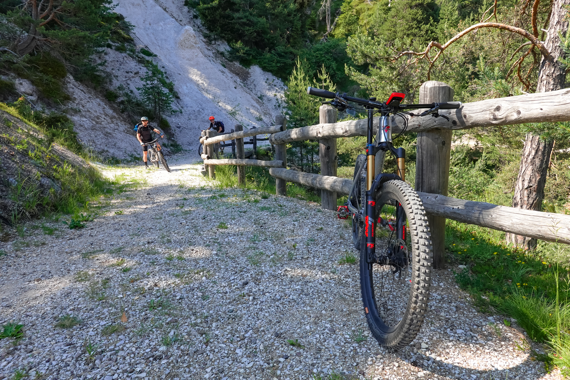 Heute steht wieder eine etwas längere Tour mit jede Menge Höhenmeter auf dem Programm. Um ins Nonstal, auf Italienisch „Vall de None“ zu gelangen, kann man entweder die Straße über den viel befahrenen Gampenpass nehmen oder man nimmt die Alternative über das „Platzer Jöchl“. Nur die letzten 2 km vor dem Pass muss man auf Straße bewältigen, ansonsten hat man seine Ruhe und Schatten im Wald.