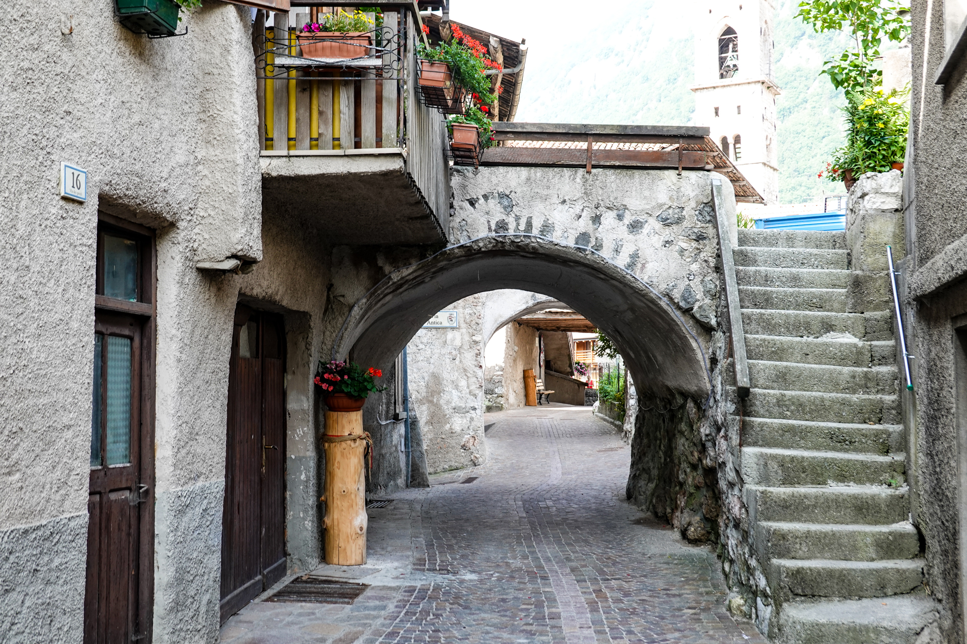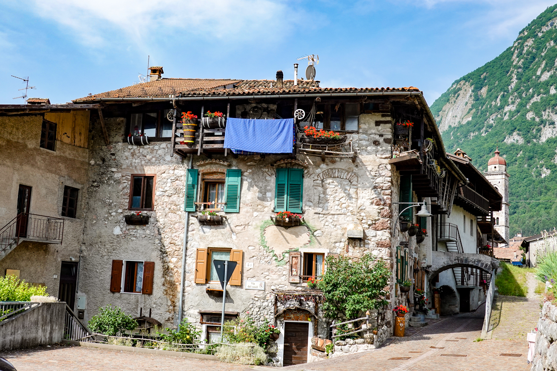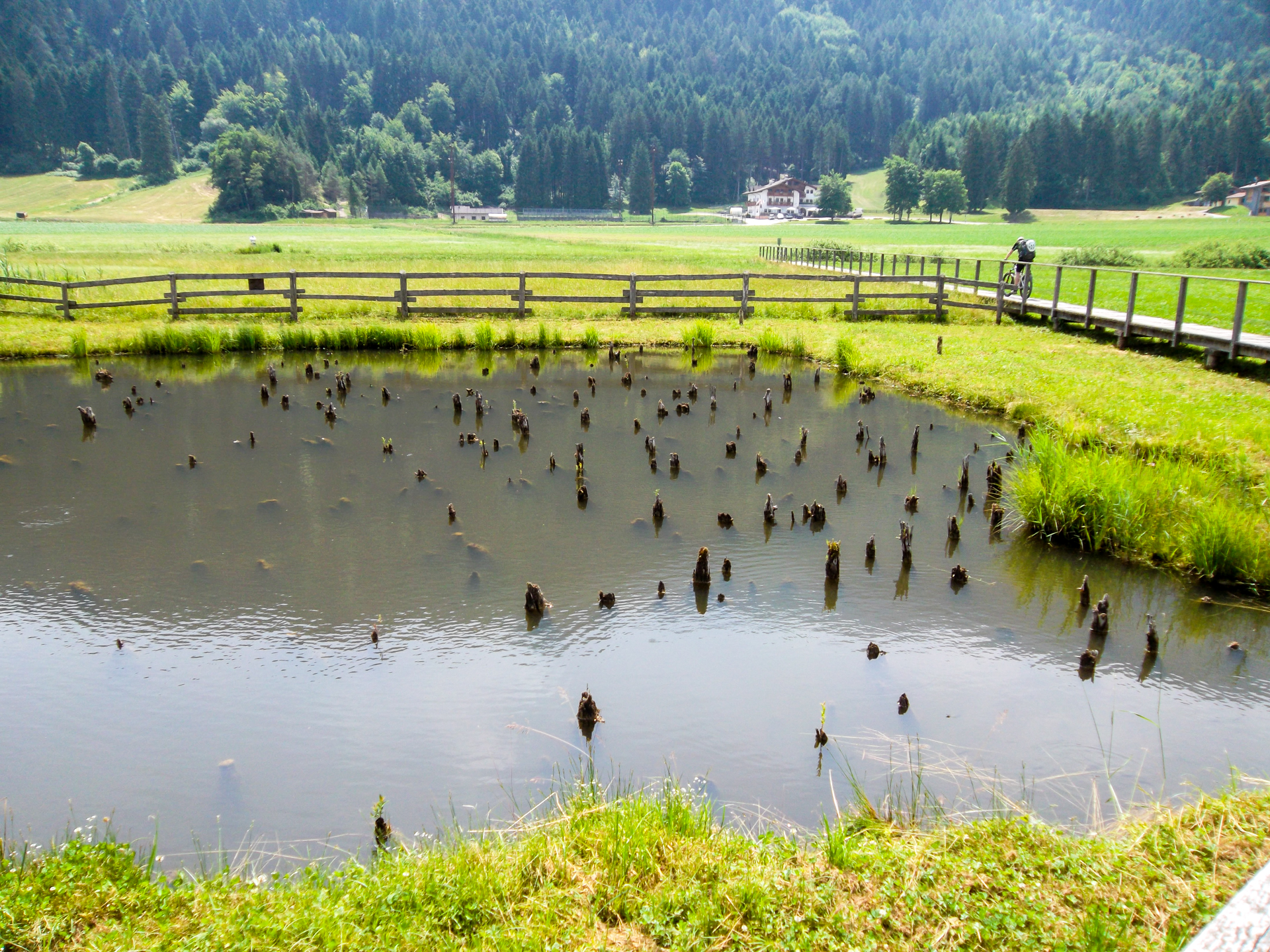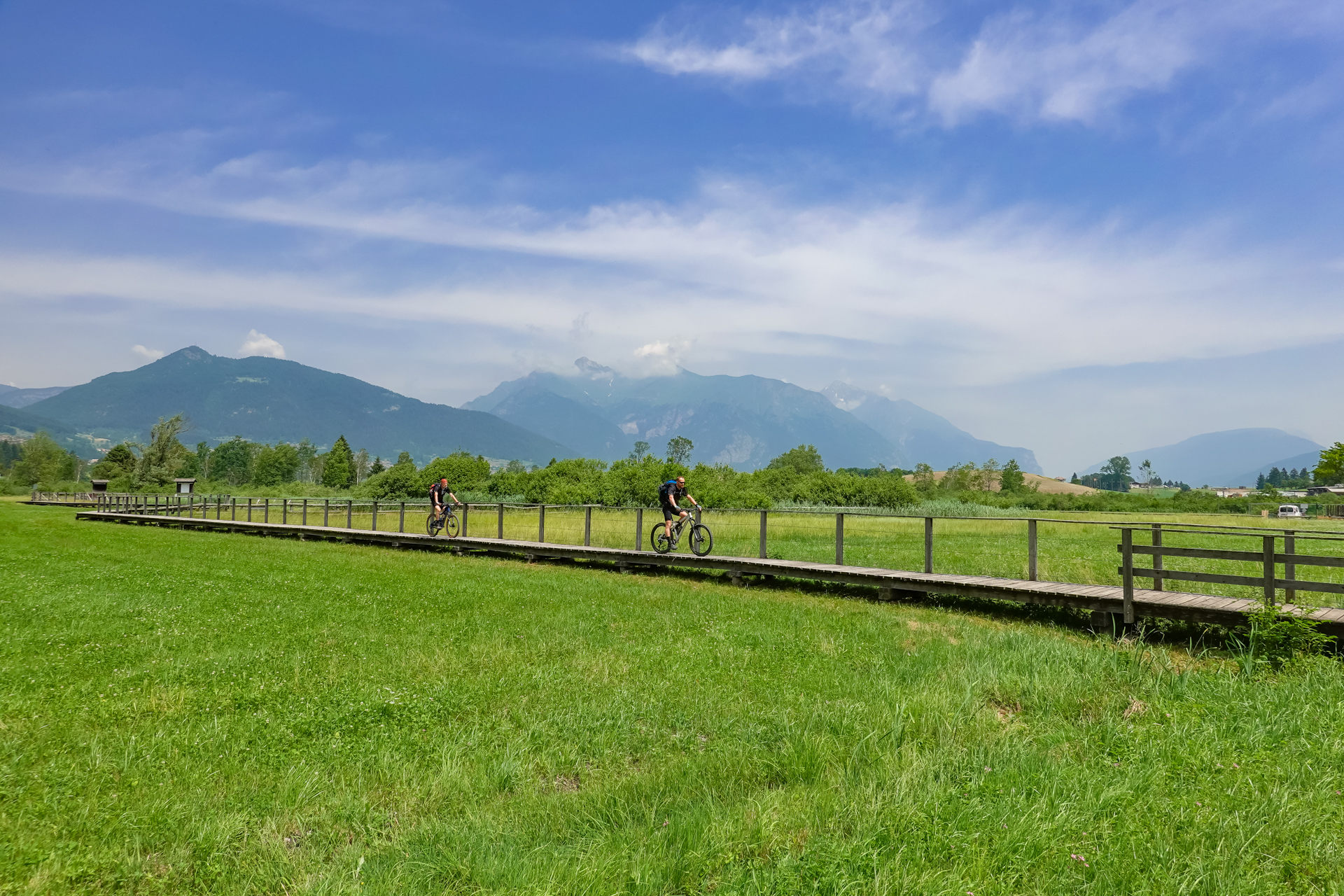 Wir durchfahren alte und sehr gut renovierte Dörfer, deren Straßen sich eng um die Häuser schlingen. Als wäre hier die Zeit stehen geblieben. Kleine Galerien an Berghängen mit Schotterwegen und Blick ins Tal sind schön anzusehen und es macht Spaß hier zu radeln. Torbiera di Fiavè, das Torfmoor von Fiavè ist eher bekannt wegen seines archäologischen Bestands als wegen seiner naturalistischen Aspekte. Es ist dennoch ein schöner ruhiger Ort.