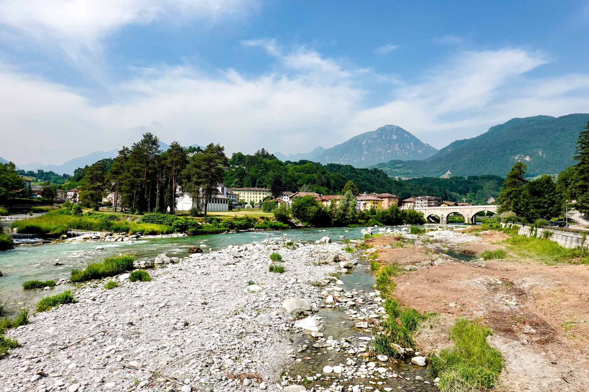 In Villa Banale suchte ich eine Apotheke auf und besorge mir ein akutes Mittel gegen Durchfall und Magenschmerzen. Die scheinen etwas zu wirken, es geht mir einigermaßen gut und kann weiterfahren. Es ist sehr heiß, wir knacken die 30 Grad Grenze. Über kleine Dörfer zieht sich die Seitenstraße im auf & ab hindurch, manchmal auch auf Schotterwegen, das meiste jedoch Asphalt, leider immer öfter ohne Schatten. Jeder Dorfbrunnen gehört uns und sorg für willkommene Abkühlung.