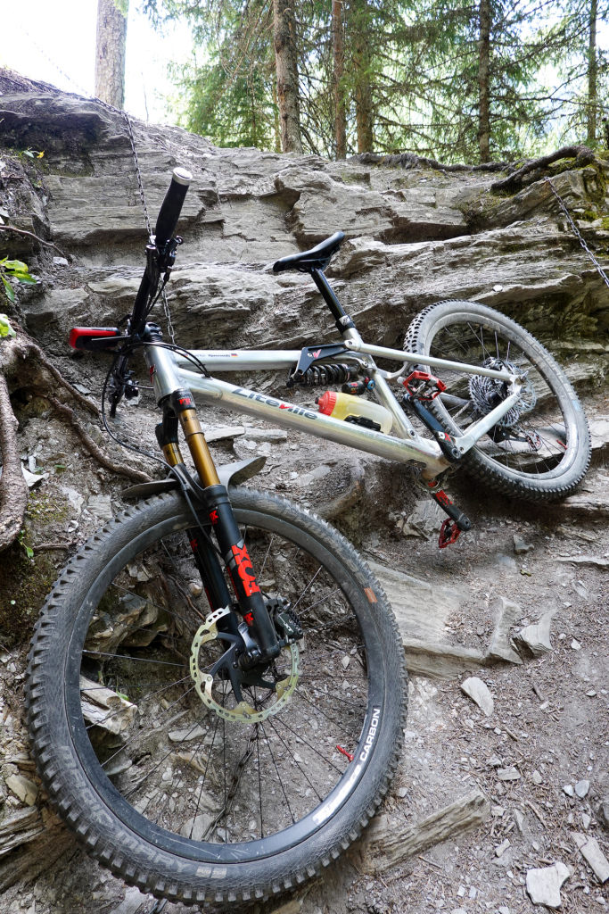 Jetzt folgen 320 hm auf 2,8 km Länge, zu 95% nur schieben. Es zieht sich ein wenig, aber durch das herrliche Panorama und das super Traumwetter vergeht die Zeit wie im Fluge. Auf 2.608 m ist es geschafft, der Fimberpass ist mir! Ich treffe Gleichgesinnte, auch Biker alter Schule (ohne Motor). Man tauscht sich aus, freut sich über das Erreichte. Was jetzt folgt, kenn ich schon: Ein toller langer Downhill! Ab & zu steige ich ab, denn ich will so alleine kein Risiko eingehen. Wenn man nach 1,5 km den kleinen Bach überquert, wird es flowig und noch spaßiger. Am Ende der Strecke wurde ein neuer Weg erschaffen, um nicht am Flussbett fahren zu müssen. Das war eine Abfahrt – wow. Aber es ist noch nicht fertig, jetzt auf etwas breiterem Weg geht es im Rausche der Geschwindigkeit stetig bergab, mein nächster Stopp ist an der Alm in Griosch. Getränk kaufen, in den Schatten setzten und die Ruhe und Umgebung genießen – ich habe ja schließlich Urlaub.