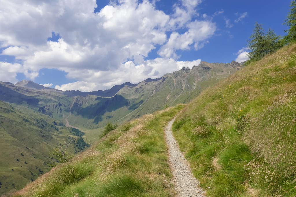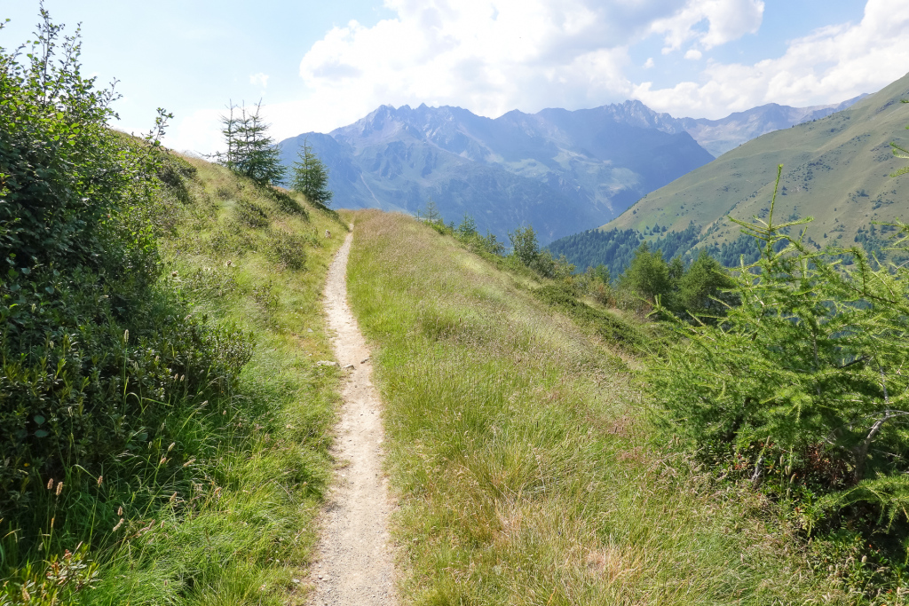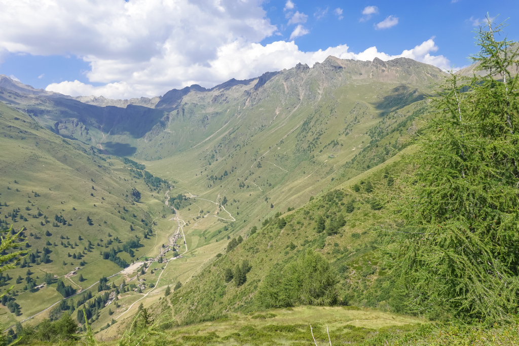 Ich überhole seltsamer Weise viele Rennradfahrer, einige Kilometer weiter unter biege ich von der Straße in einen Trail ein, der mich 2 km später in Pezzo auswirft. Wow, das waren jetzt 970 hm auf 12 km nur bergab!