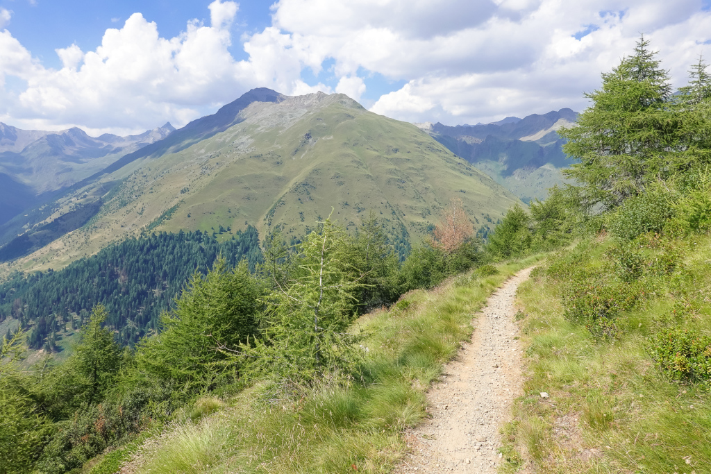 Was sollen wir sagen: Einer der schönten Trails, den wir bisher gefahren sind, nie zu verblockt, viel Flow, ab & zu mal Absteigen aber zu 95% fahrbar. Echt geil! Der Trail endet direkt an der Gavia Pass Straße, diese müssen wir jetzt noch mit ca. 5,5 km und 370 hm hinauf auf 2.652 m. Wir schwitzen, dadurch kommt es uns kühl vor, hat aber immer noch 20 Grad hier oben. Ein Kaltgetränk und ein Espresso später verabschiede ich mich von Stefan, er rollt nach Santa Caterina zurück, ich auf der anderen Seite des Passes runter Richtung Ponte de Legno.
