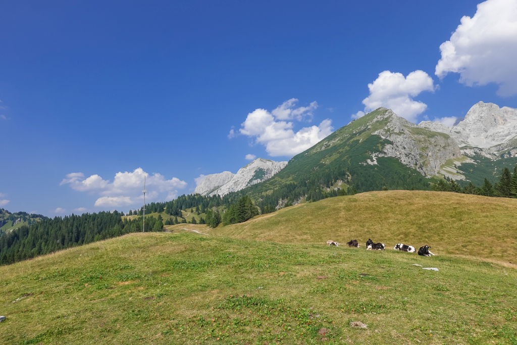 Das nächste Ziel und somit der letzte Gipfel des Tages ist der Passo Bregn de l’Ors, der Bärenpass. Auf 1,6 km muss man 240 hm überwinden, das erste Drittel auf steinigem Weg, das Zweite auf einer Wiese hoch, und das Letzte auf einem ausgesetzten Pfad. Das war noch mal anstrengend – aber ich habe es geschafft und die Aussicht hier oben ist genial.