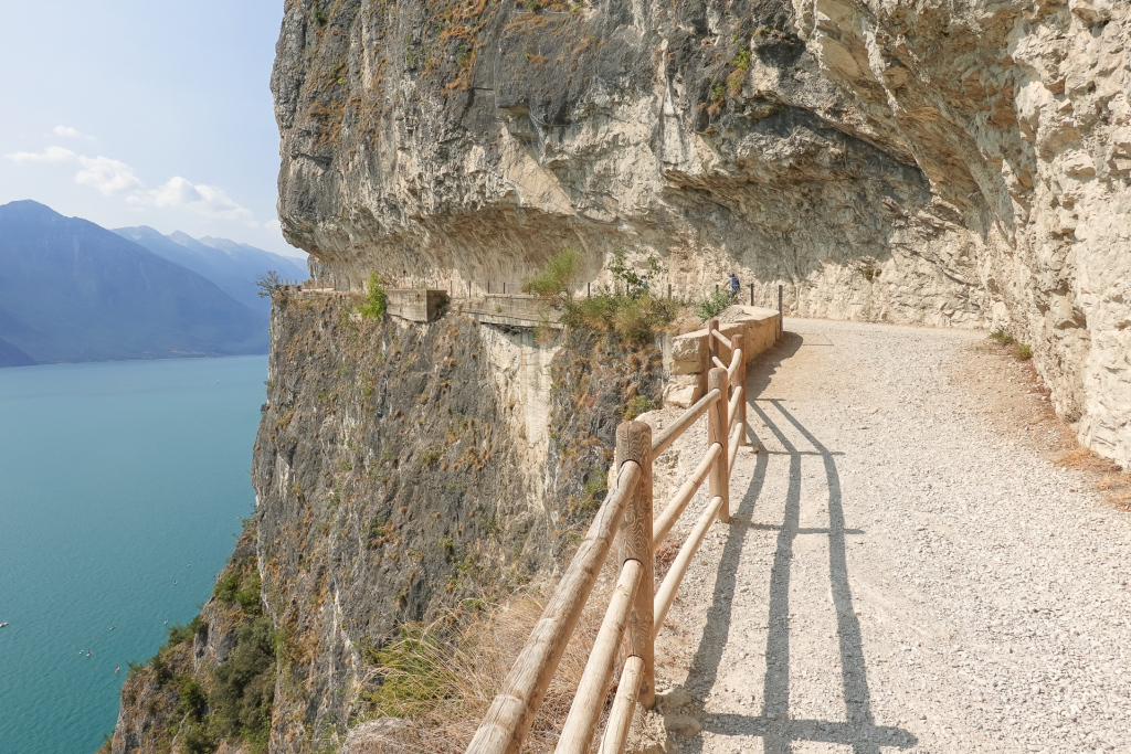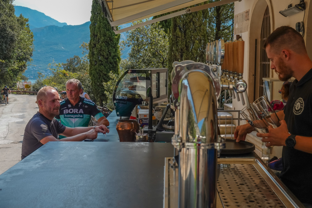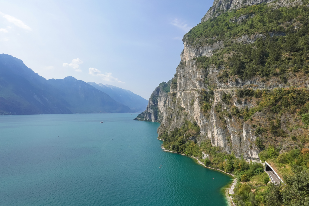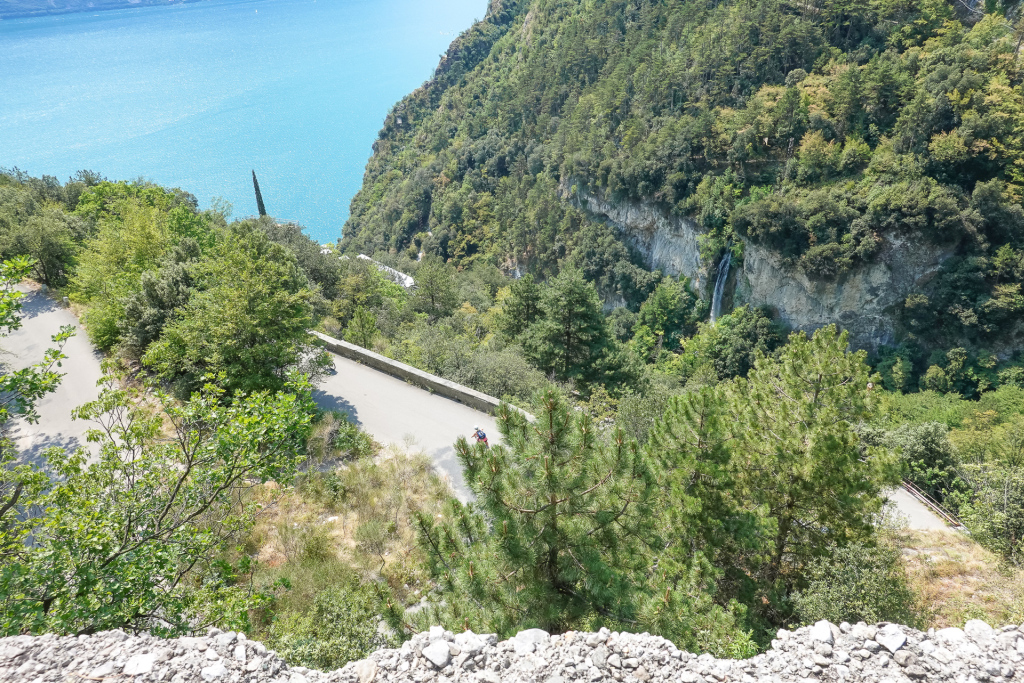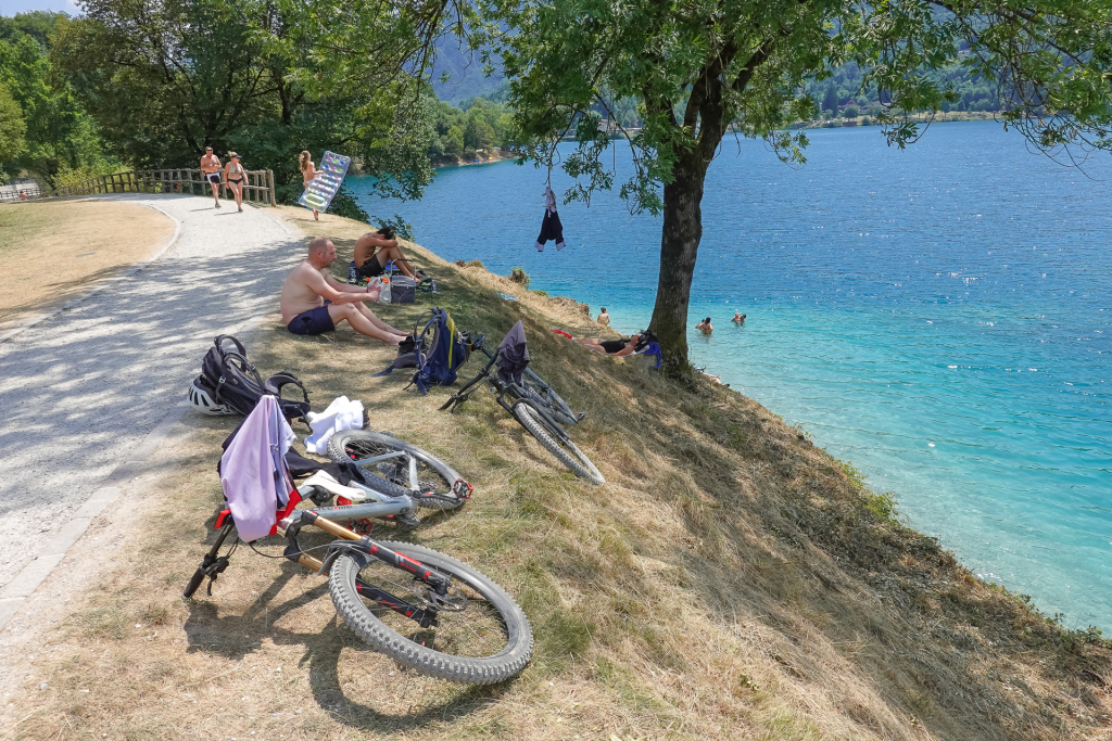 Riva ist heiß – vom Flair und auch von der Hitze! Heute wollen wir hinauf zum Lago di Ledro fahren, eine schöne Biketour, die auch Stefan gut bewältigen kann. Zur Belohnung ein toller Bergsee. Immerhin müssen wir auf 12 km 700 hm hoch kurbeln – und das an meinem freien Tag 😉