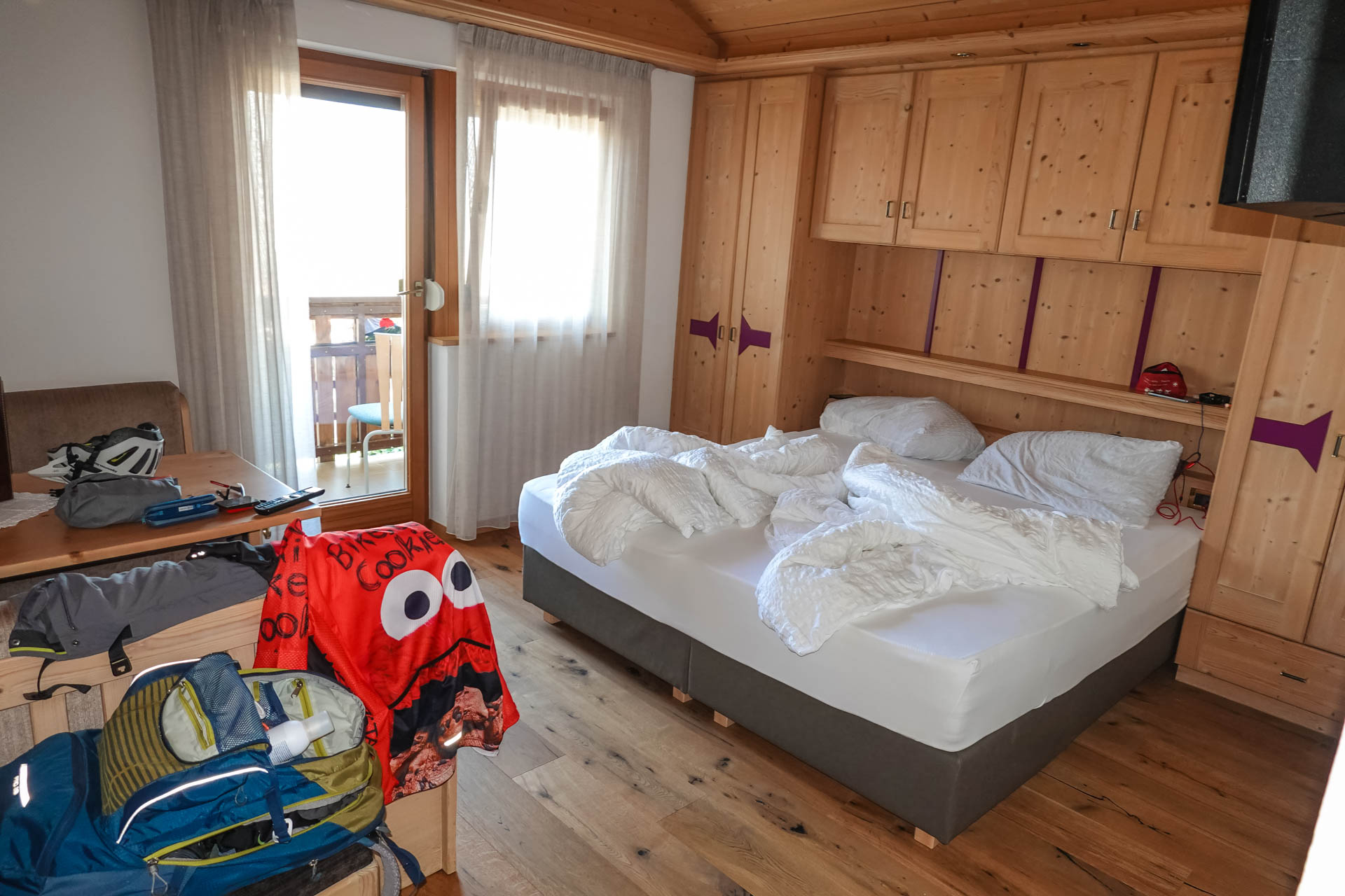 Die anfänglichen 150 Höhenmeter hinauf zum Mahlknechtsjoch sind eine kleine Herausforderung, aber dann erwartet uns eine grandiose Belohnung: eine 700 Höhenmeter lange Abfahrt durch das beeindruckende Val Duron. Der Schotterweg schlängelt sich durch die Natur, mal grober, mal feiner Untergrund, und wir genießen das Gefühl der Geschwindigkeit, während wir hinunter nach Campitello di Fassa gleiten. Das war eine super tolle Abfahrt in mitten einer grandiosen Gebirgslandschaft.