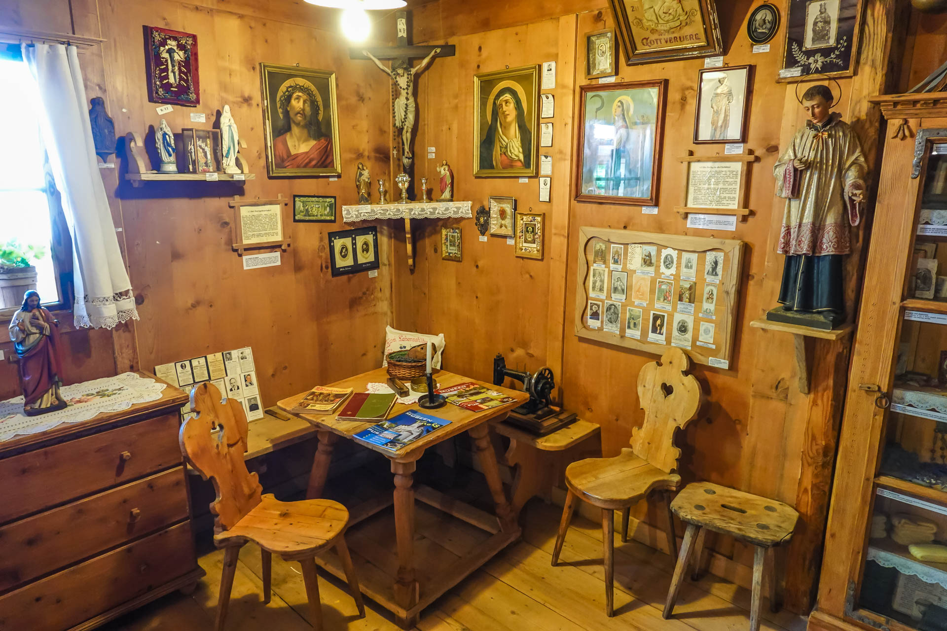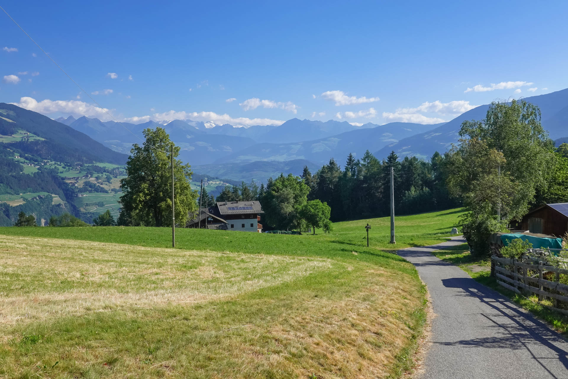 Die Hauptstraße ist viel befahren und führt uns zunächst in Richtung Kastelruth. Dieses Dorf ist durch die Kastelruther Spatzen sehr berühm geworden, ist aber nicht ganz unsere Musikrichtung. Doch dann biegen wir rechts ab und nehmen die asphaltierten Nebenstraßen, die uns viel ruhiger und ohne großen Verkehr immer weiter nach oben nach Seis am Schlern führt. Die Hitze von 35 Grad und die Rampen von 15-18% stellen eine Herausforderung dar, aber wir lassen uns Zeit und gönnen uns eine Rast an einem Biergarten in Sankt Oswald. Dort genießen wir ein alkoholfreies Weizen und entdecken nebenan ein kleines Bauernmuseum, das uns einen interessanten Einblick in die Vergangenheit bietet. Es ist erstaunlich zu bedenken, wie die Menschen früher gelebt haben und wir fragen uns, was wohl die Zukunft für die kommenden Generationen bereithält.