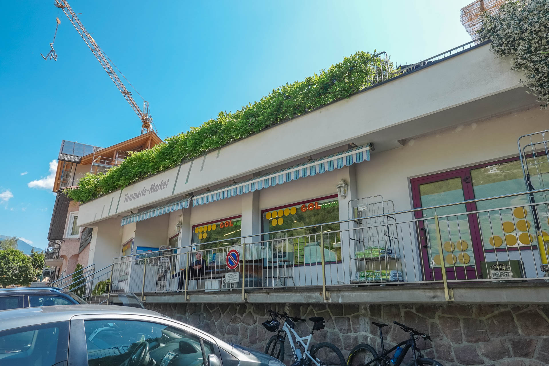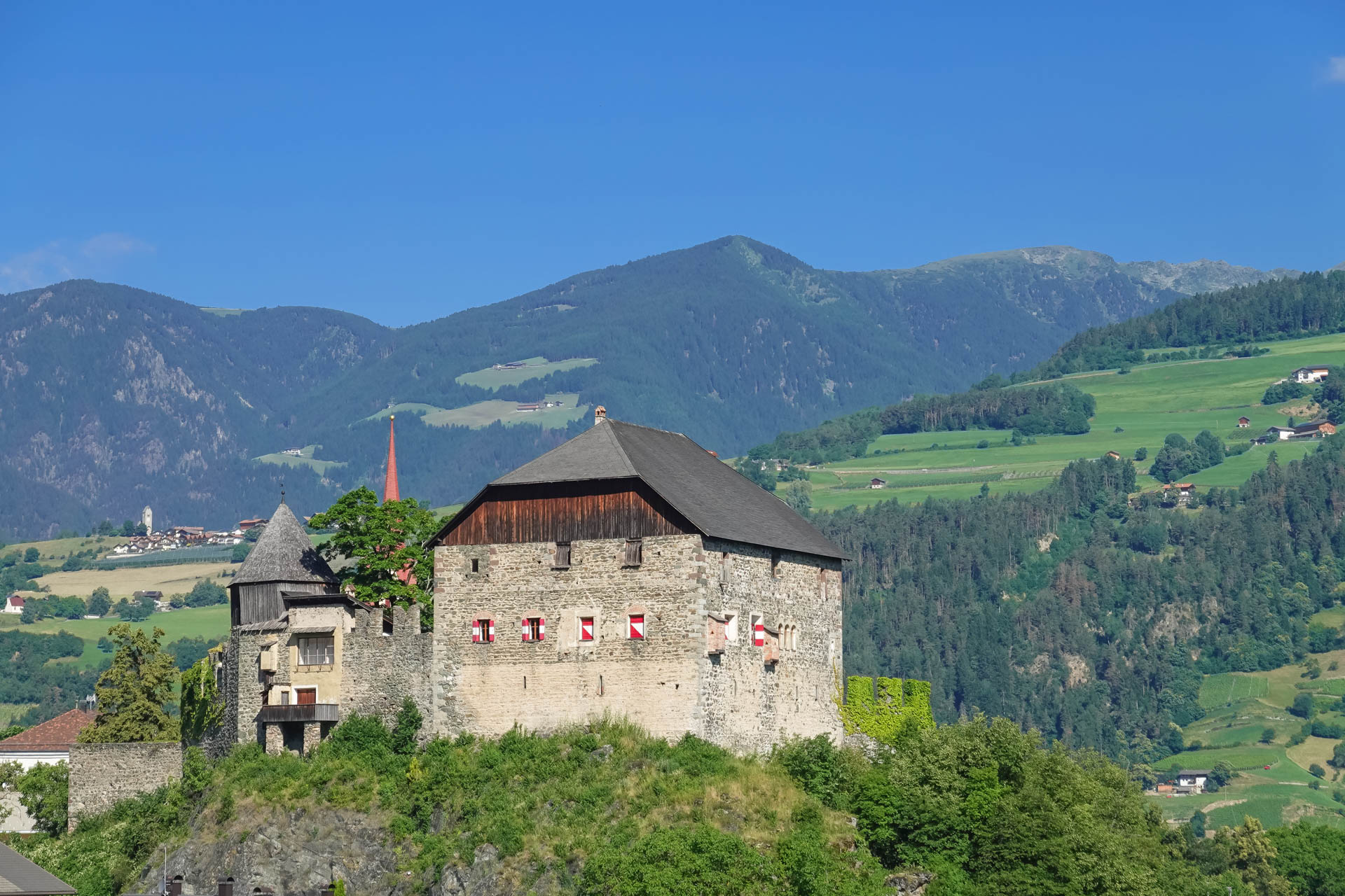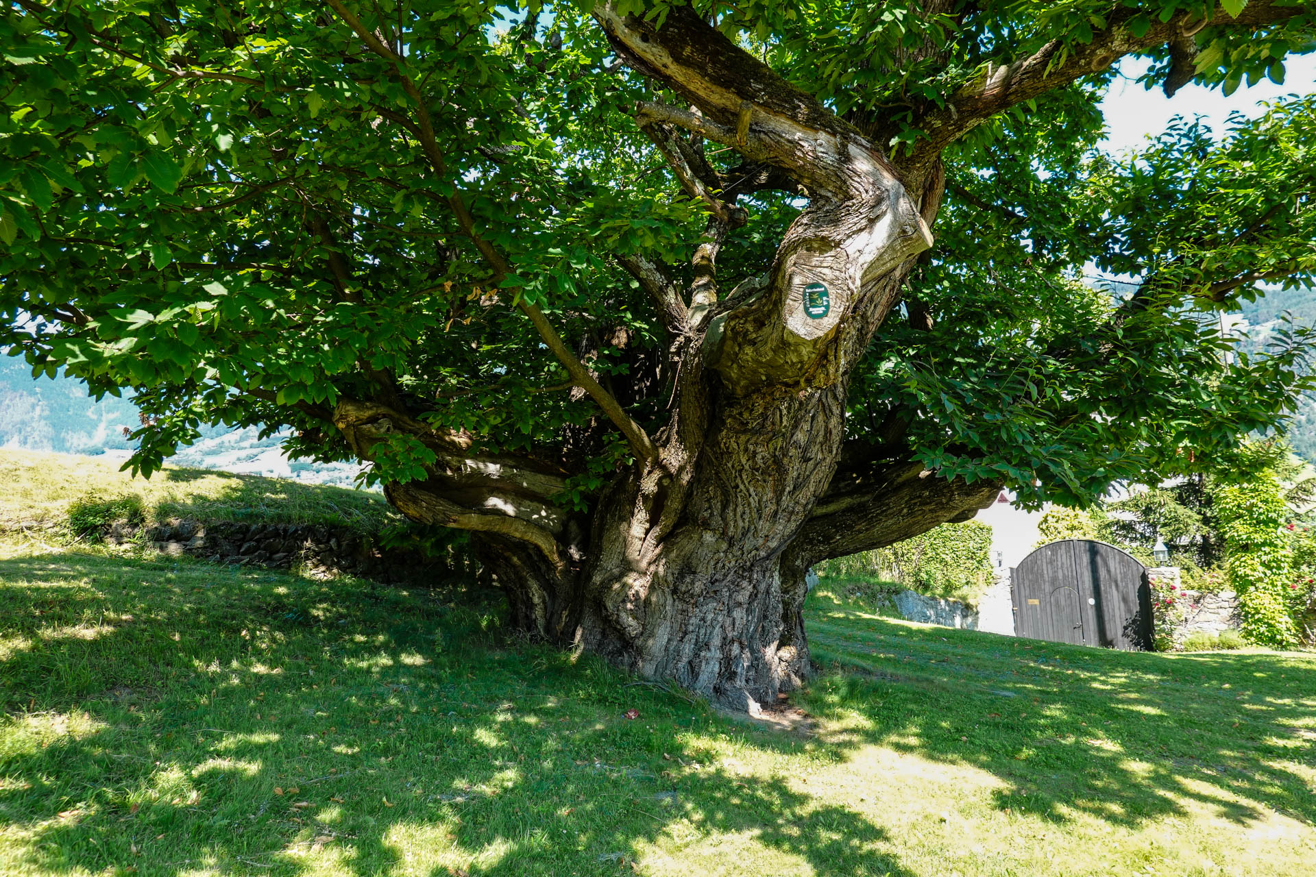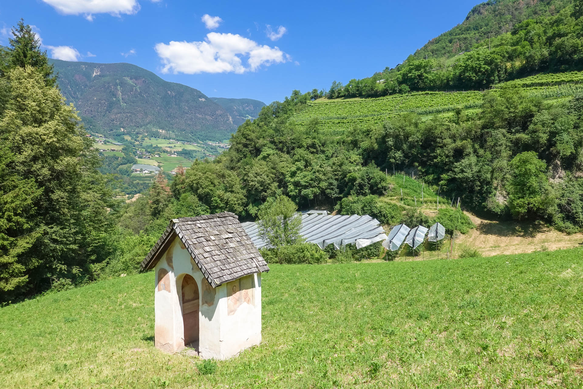 Beim Ansitz Lusenegg in Lajen treffen wir auf Europas größten Kastanienbaum. Mit einem Umfang von 13,30 Meter und einem Alter von 600-800 Jahren steht der Baum sehr stattlich vor uns. Beeindruckt von seiner Größe und majestätischen Erscheinung machen wir einige Fotos und genießen die Ruhe inmitten der Natur, bevor wir auf kleinen Wegen und Straßen nach Waidbruck weiterfahren. Dort legen wir an einem Supermarkt eine Rast ein, kaufen uns kalte Getränke und Snacks, um uns für die bevorstehenden 650 Höhenmeter am Stück zu stärken.