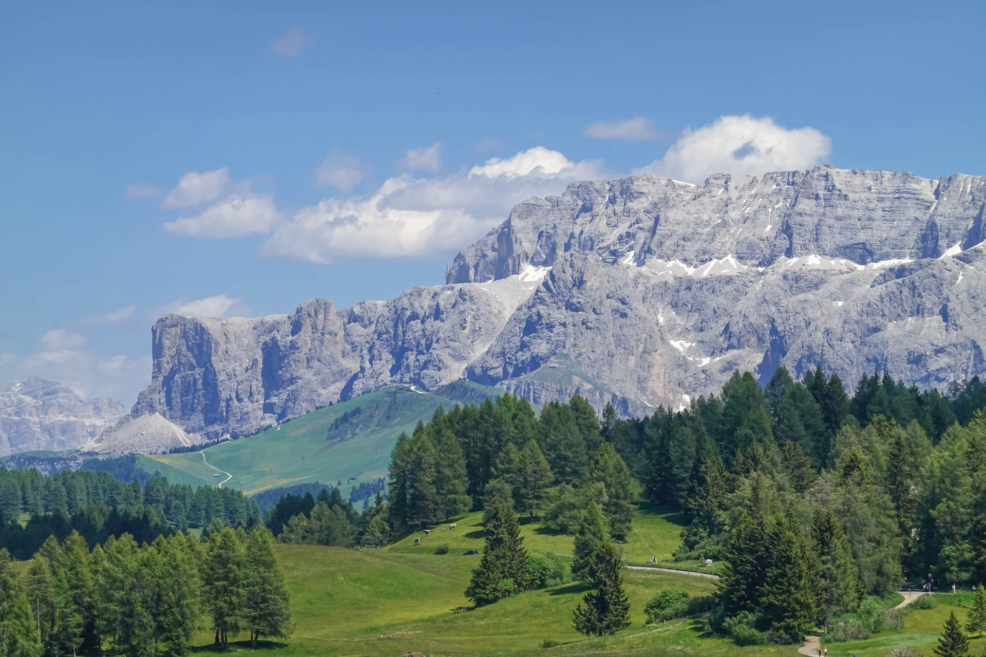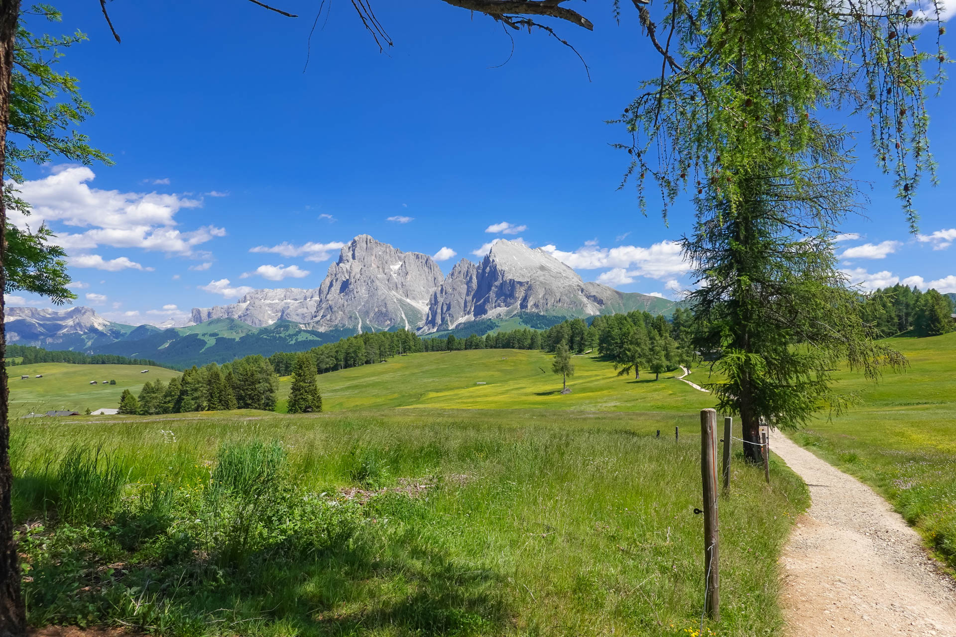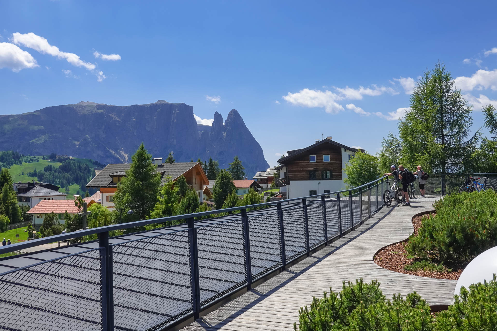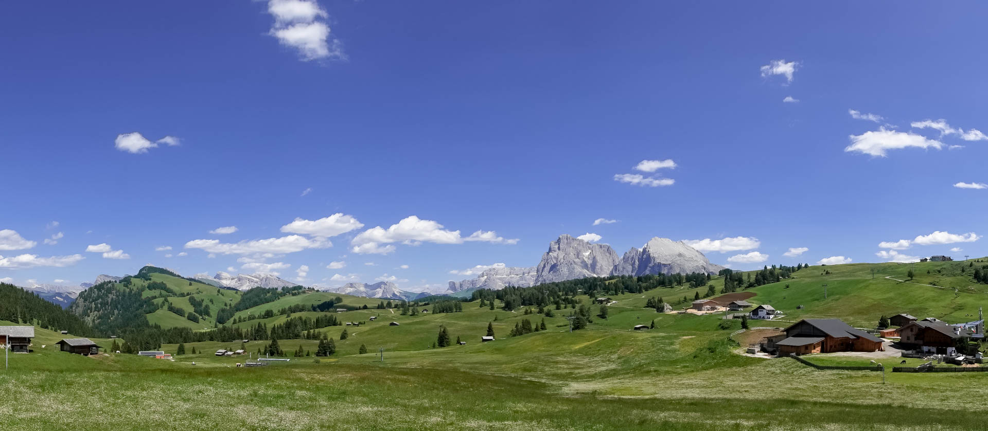Die Talstation der Seiseralmbahn ist unser nächstes Etappenziel, die wir 5 Kilometer und 350 Höhenmeter später auch erreichen. Eine 4,4 Kilometer lange Gondelfahrt bietet uns einen fantastischen Blick auf die umliegende Bergwelt. Oben angekommen, erwartet uns ein beeindruckender Rundumblick über die größte Hochalm Europas, die Seiser Alm , doch wegen des Trubels entscheiden wir uns, bald weiterzufahren. Der Weg führt natürlich wieder bergauf, aber wir nehmen uns Zeit, um die atemberaubende Natur und die traumhafte Landschaft zu genießen. Je höher wir steigen, desto weniger Wanderer treffen wir an und wir spüren die Freiheit und Unbeschwertheit dieser einmaligen Erfahrung.