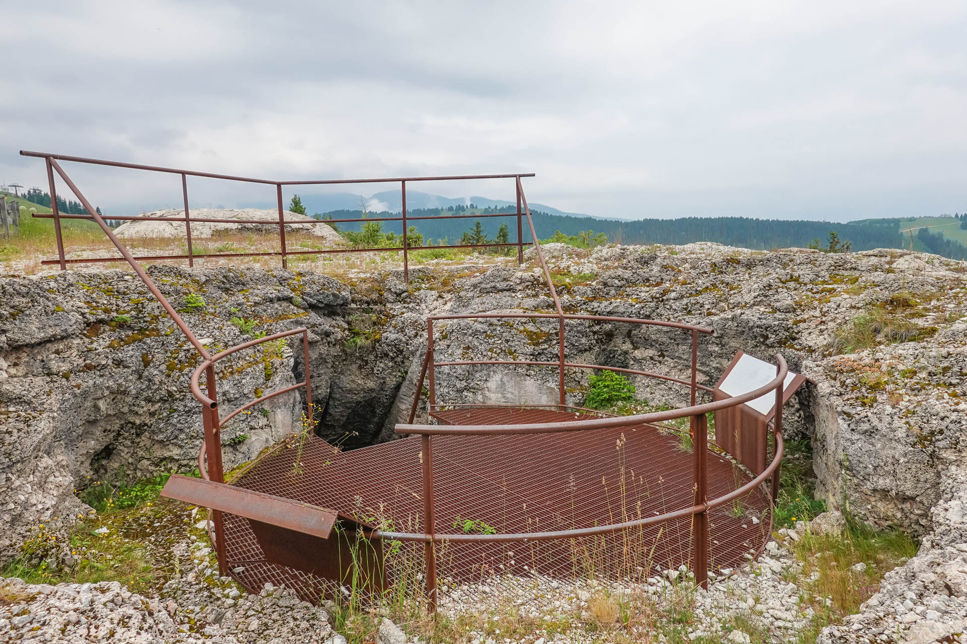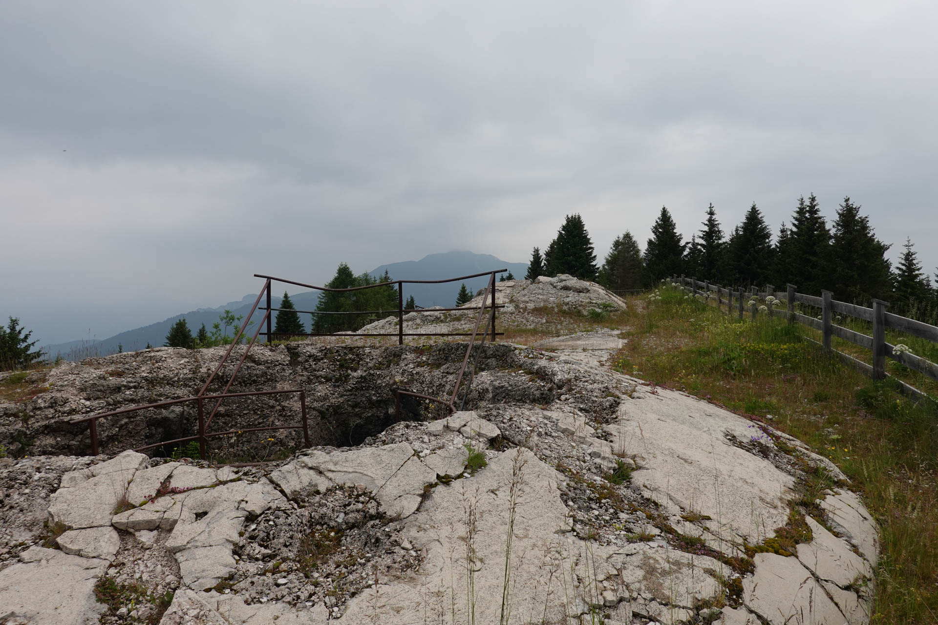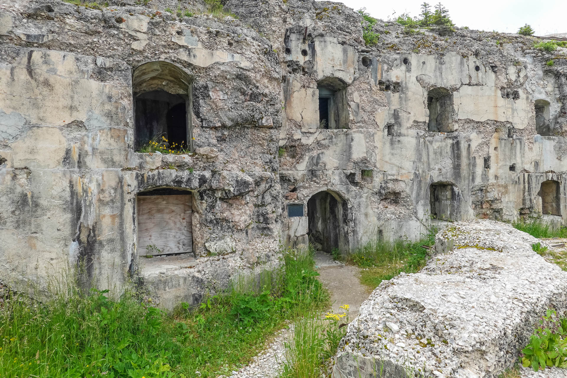 Zitat: „Zwischenwerk Sommo“ genannt, wurde diese Festung zwischen 1911 und 1914 auf dem gleichnamigen Hügel auf 1613 m Höhe erbaut. Auf drei Etagen angeordnet, war sie mit zwei 10 cm Haubitzen in einer gepanzerten Kuppel und einem Aussichtsturm ausgestattet. Die Nahverteidigung wurde stattdessen 18 Maschinengewehrpositionen anvertraut. Als befestigte Kaserne konzipiert, wurde sie später in eine echte Festung verwandelt. Ohne Graben, aber durch einen Erdwall geschützt, kontrollierte er die Furche unterhalb des Orsara-Tals und in Absprache mit dem nahegelegenen Forte Dosso delle Somme den Passo Coe. Es war mit vier fortschrittlichen gepanzerten Stationen ausgestattet, die durch zwei lange unterirdische Tunnel mit der zentralen Instanz verbunden waren, die noch genutzt werden können.