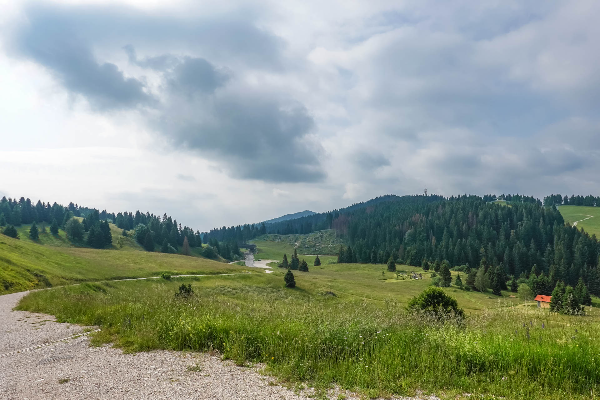 Doch dann ist der Spaß vorbei, wie könnte es anders sein, es geht wieder bergauf. Unser erstes Teilziel ist der Passo Xomo. Auf 5 Kilometern folgen 440 Höhenmeter, ab und zu kleine Rampen, aber alles gut fahrbar. Es ist schwül, die Wolken ziehen sich zusammen und in der Ferne sieht es nach Regen aus. Also fackeln wir nicht lange und fahren weiter. Auf einer Zwischenebene ist es nur etwas hügelig mit kleinen auf und ab Passagen, eine nette Abwechslung bevor wir den zweiten Teil des Gipfelsturms in Angriff nehmen. Auf den nächsten 9 Kilometern warten nochmals 550 Höhenmeter auf uns. Es ist zäh. Zum Glück ist es eine kleine Straße, kein Schotter. Auf Asphalt lässt es sich einfach besser hochkurbeln. Hier gilt wieder unsere 100-Höhenmeter-Regel. Das Wetter wird merklich schlechter. Die Temperatur-Höchstwerte erreichen kaum 15 Grad. Wir geben alles für den Endspurt, jeder fährt in seinem Rhythmus. Nur noch wenige Kurven, dann steht sie vor uns, die Campogrosso-Hütte. Wir haben jetzt insgesamt 1010 Höhenmeter „am Stück“ bergauf geschafft.