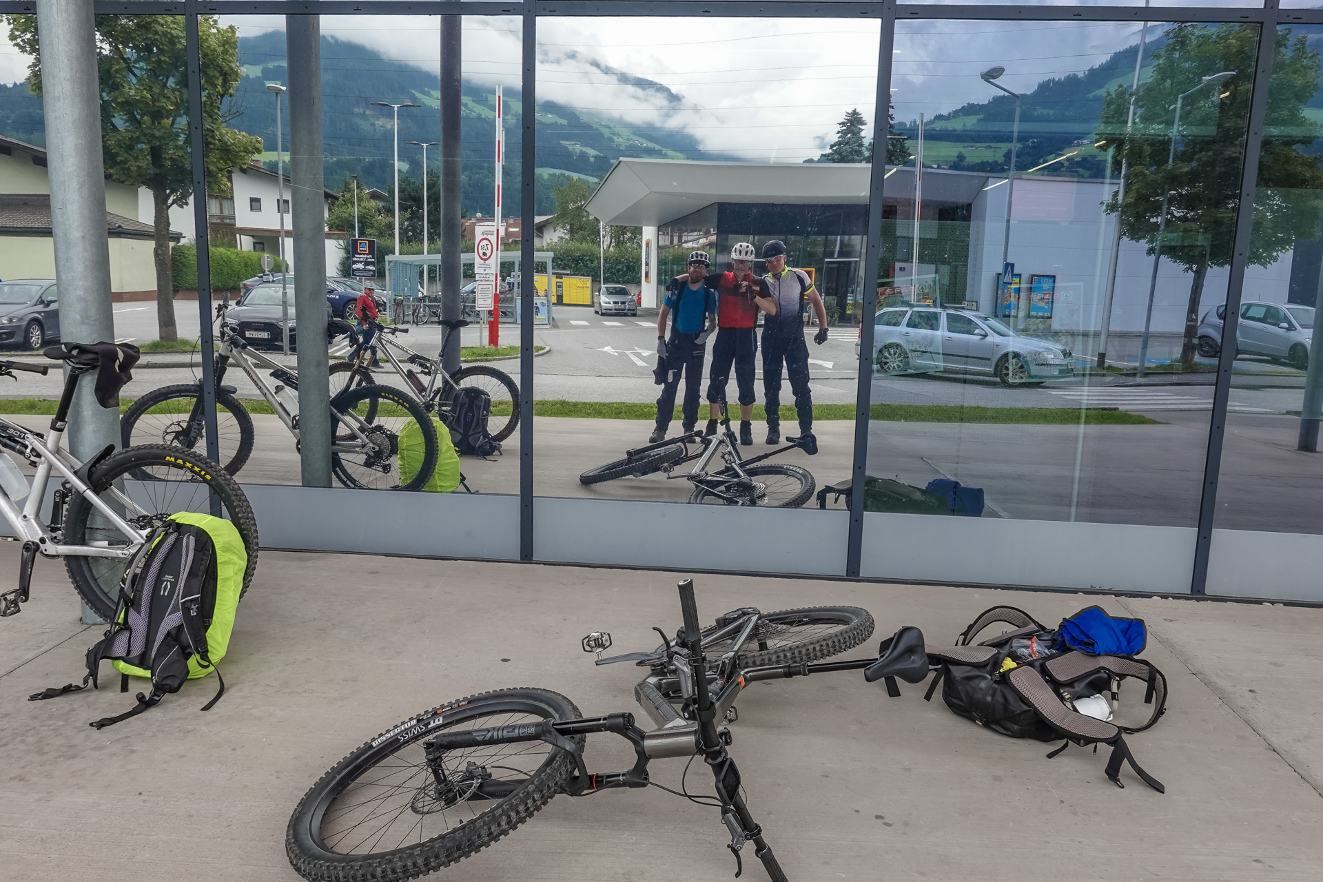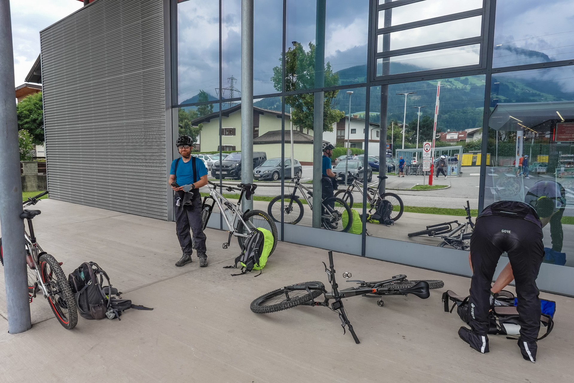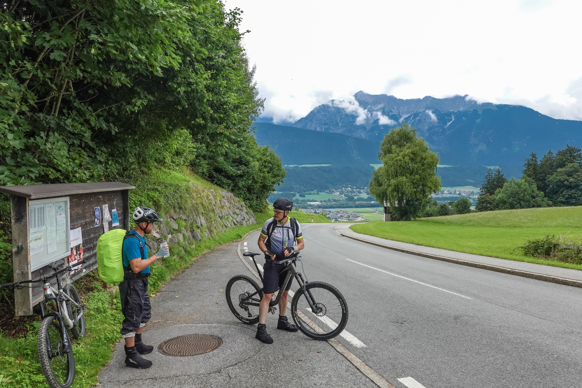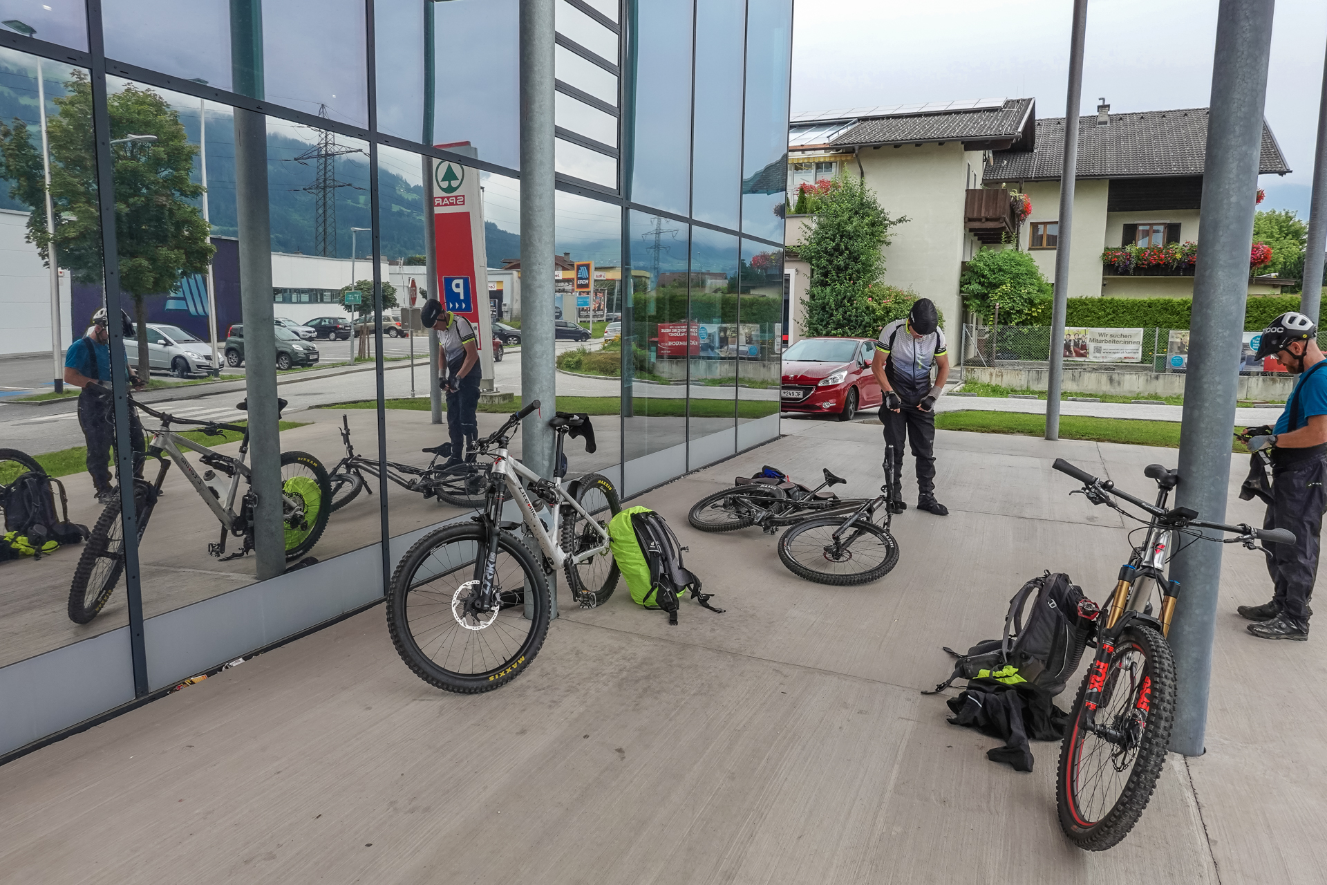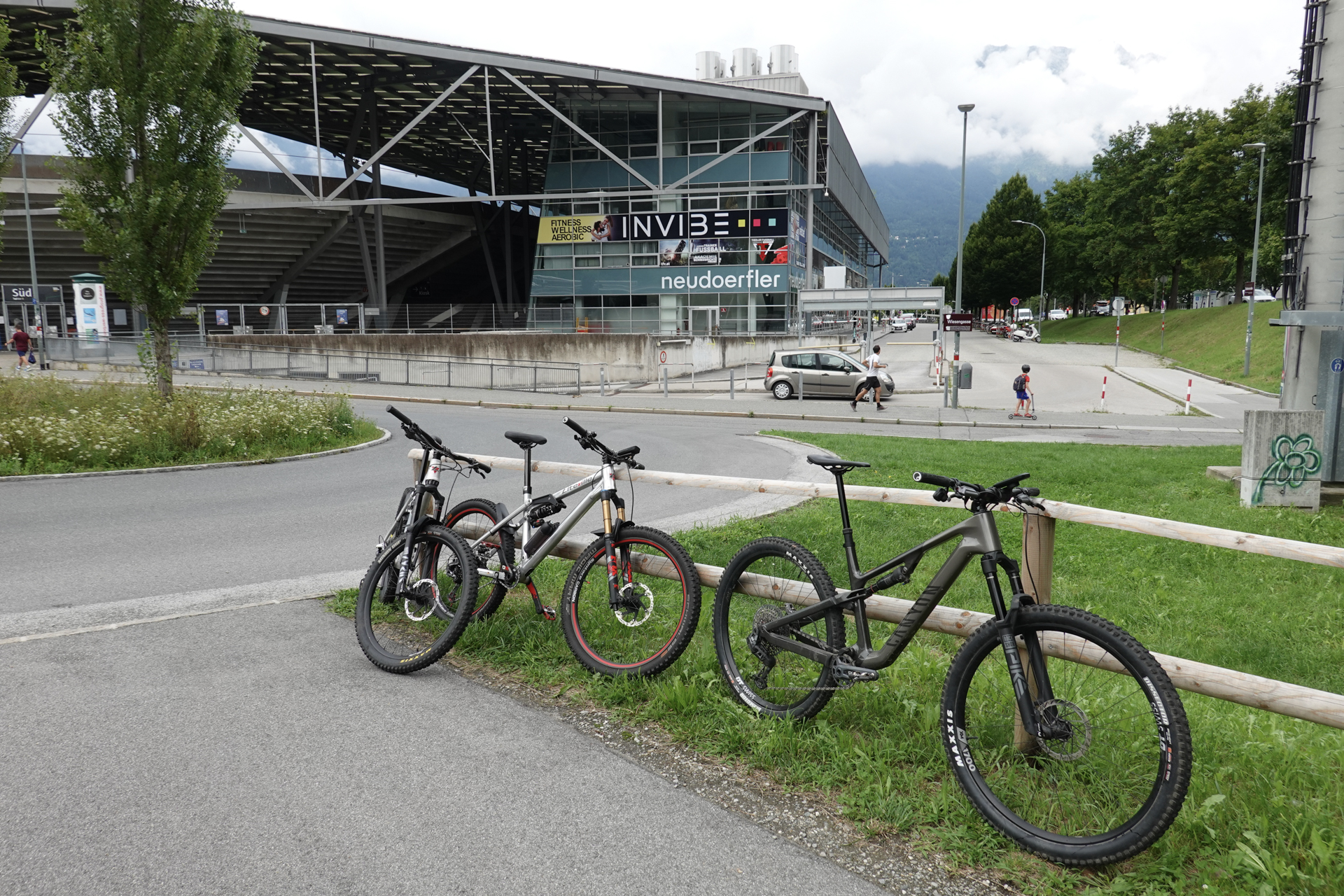 Mit dem Auto fahren wir nach Innsbruck, wo wir das Fahrzeug sicher in der TIVOLI-Tiefgarage abstellen. Im nahegelegenen Olympiazentrum haben wir ein Parkticket organisiert, sodass das Auto für die Dauer unserer Tour überwacht steht. Anschließend ziehen wir uns um, bereiten die Fahrräder vor, und gegen 14:00 Uhr beginnt unsere erste Etappe.