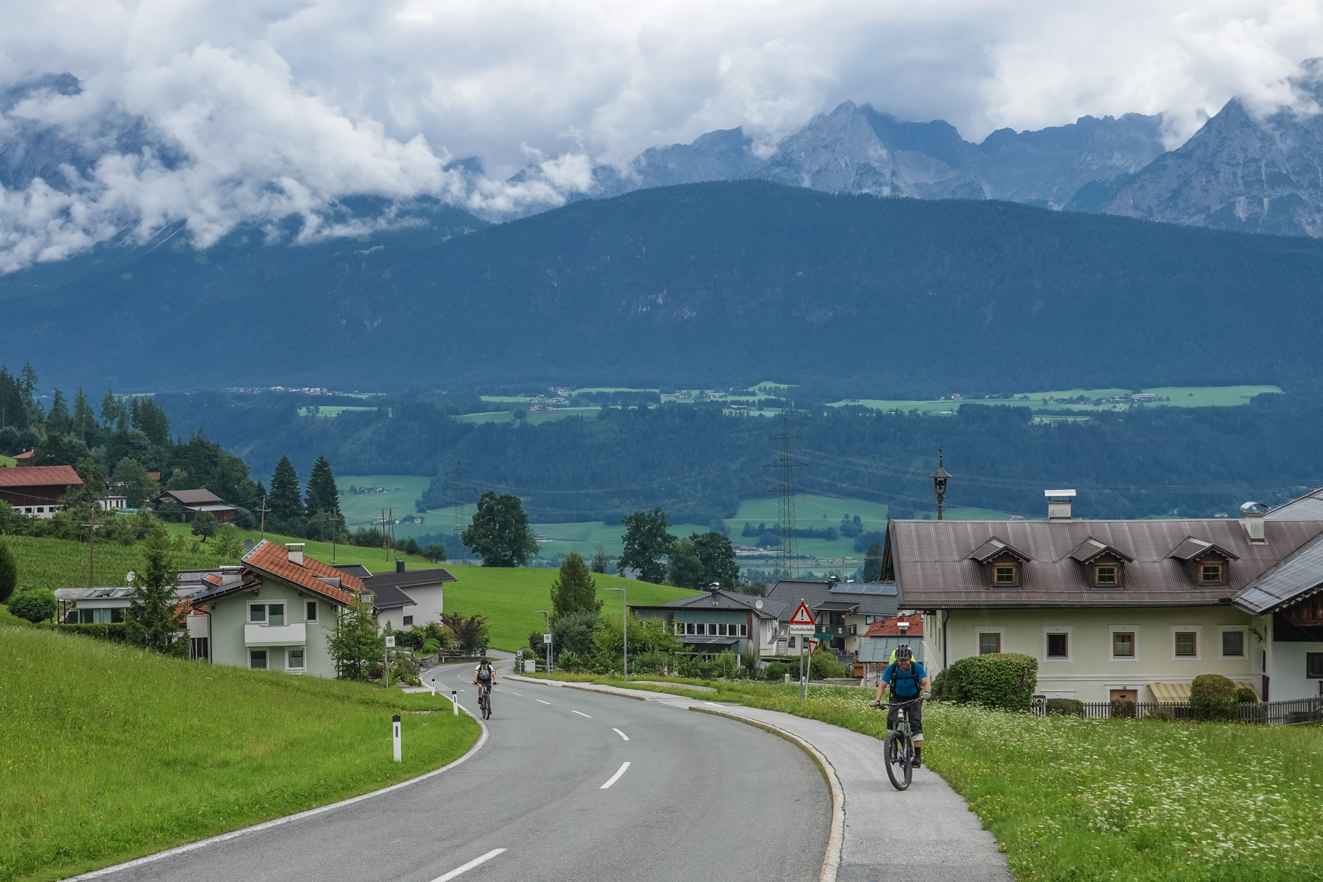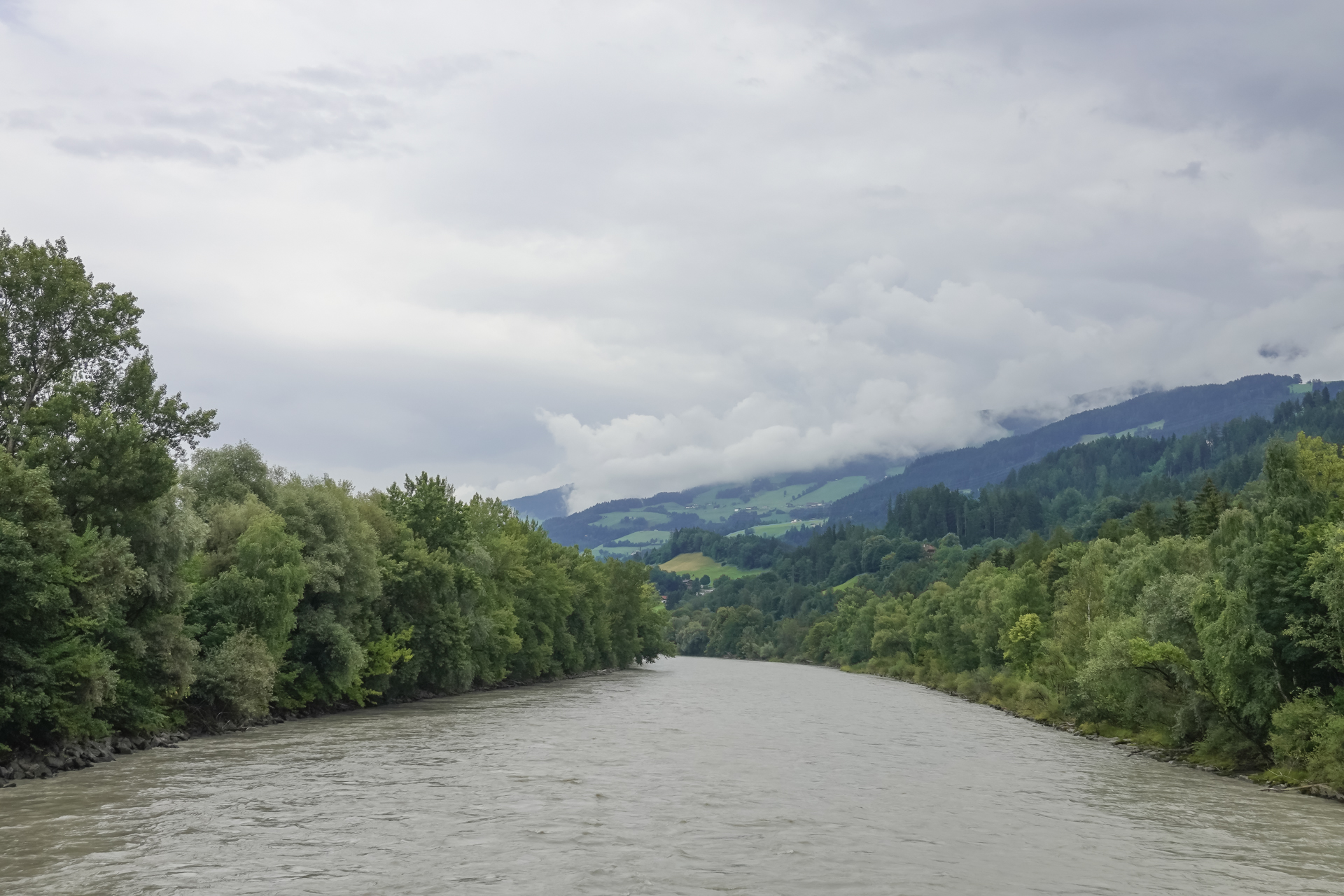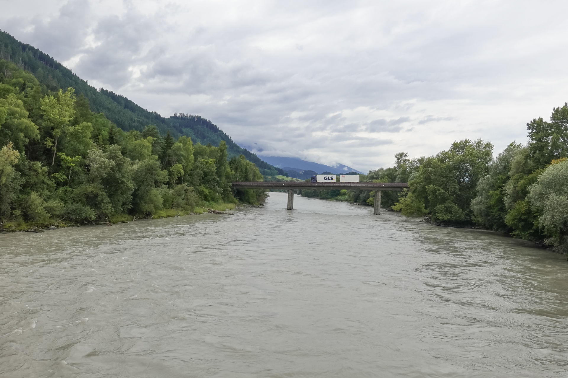 Wir starten auf dem gut ausgebauten Radweg entlang des Inns in Richtung Wattens. Das Wetter zeigt sich durchwachsen: Der Himmel ist stark bewölkt, die Temperatur liegt bei kühlen 14 Grad. Die ersten Kilometer verlaufen flach und ermöglichen ein angenehmes Einrollen. Gelegentliche Trailabschnitte lockern die Fahrt auf, doch zahlreiche Pfützen deuten auf vorangegangene, teils ergiebige Regenfälle hin. Trotz der durchwachsenen Wetterprognose – Regen und Gewitter sind angekündigt – bleibt unsere Stimmung positiv.