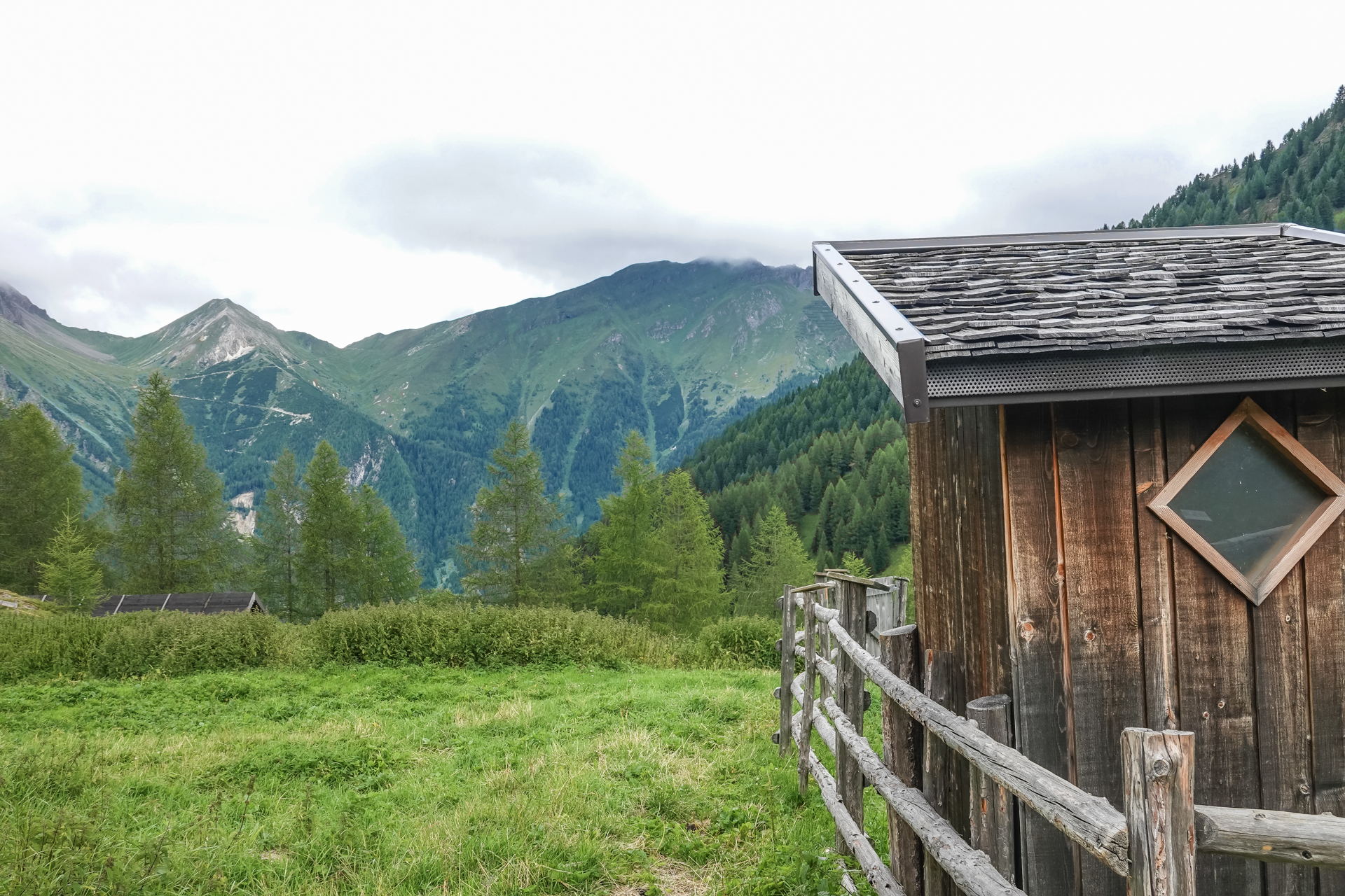 Auf der Weitenbergalm gönnen wir uns eine verdiente Pause – ausgiebig, mit bester Aussicht und endlich einmal freundlichem Wetter.